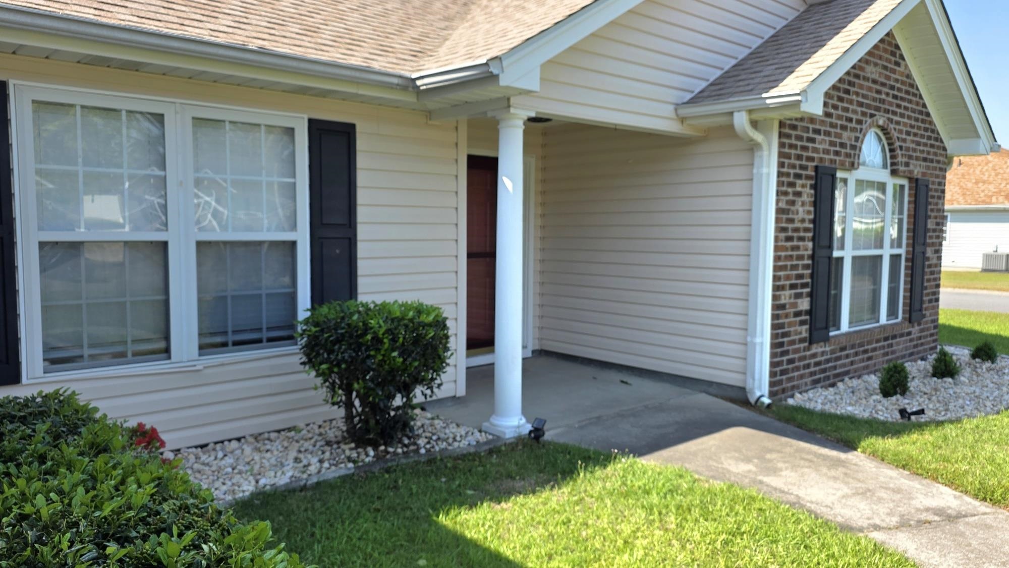 Welcome to 262 Tibton Circle, located in the highly sought-after Palmetto Glen community, just minutes from Market Common, the beach, dining, entertainment, and the international airport. Perfectly positioned on a beautifully landscaped corner lot, this well-maintained 3-bedroom, 2-bathroom single-story home offers both comfort and convenience in an ideal central location. Step inside to a bright, open floor plan filled with natural light and fresh interior paint throughout. The spacious living room features vaulted ceilings, rich hardwood flooring, and a cozy corner gas fireplace—creating the perfect setting for relaxing or entertaining. The hardwood flooring continues into the adjacent dining area, providing a seamless flow for gatherings and everyday living. A standout feature of the home is the expansive Carolina Room (sunroom), complete with wood like vinyl flooring, five large windows, and its own heating and cooling, making it a comfortable year-round retreat. From here, step out to the back patio and enjoy the views which are close to a large pond. The kitchen is both stylish and functional, offering granite countertops, accented tile backsplash, a stainless-steel farmhouse sink, stainless steel appliances, tile flooring, and a convenient eat-in breakfast area. Designed with privacy in mind, the split-bedroom floor plan places the spacious primary suite on one side of the home. This retreat includes a ceiling fan, walk-in closet, and a private en-suite bath with double vanities, cultured marble countertops, a soaking tub, and a separate shower. On the opposite side, two additional bedrooms feature ceiling fans and ample closet space and share a full bath with a granite vanity top, tub/shower combination, tile flooring, and a transom window for added natural light. Additional highlights include a dedicated laundry room with tile flooring, and an attached two-car garage complete with a utility sink, workbench, and pull-down attic access. The home is also equipped with a security system and irrigation system for added convenience and peace of mind. Major updates include a new roof in 2024 with a transferable "No Leak" guarantee, 50-year non-prorated material warranty, and the heat pump was replaced in 2022. Flooring throughout the home includes hardwood, tile, and luxury vinyl plank—no carpet. Residents of Palmetto Glen enjoy access to a community pool, recreation center, and a friendly neighborhood atmosphere. Whether you're a first-time homebuyer, downsizing, or looking for a primary or secondary home near the coast, this property offers exceptional value and livability. All measurements and square footage are approximate and not guaranteed. Buyer is responsible for verification of all information.