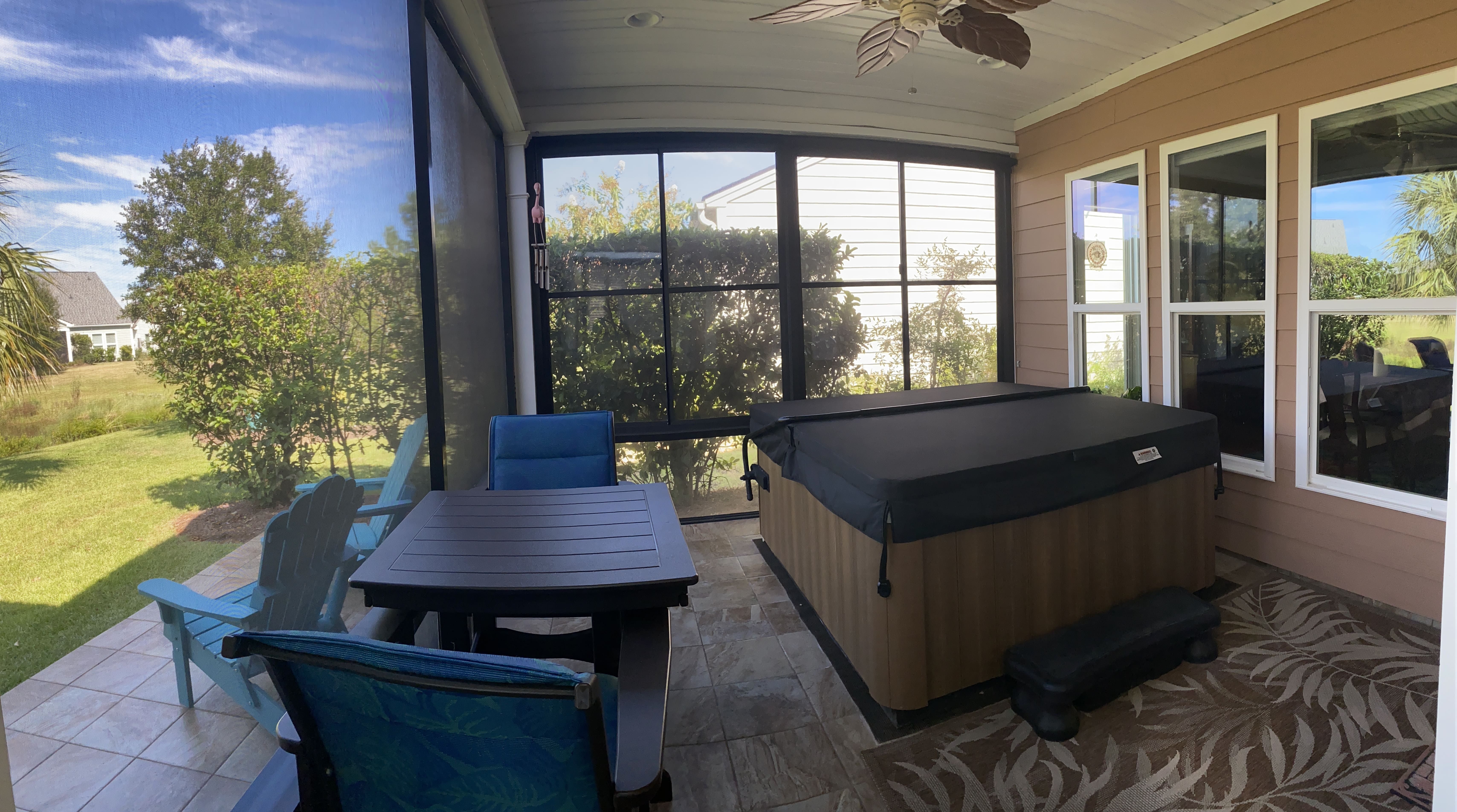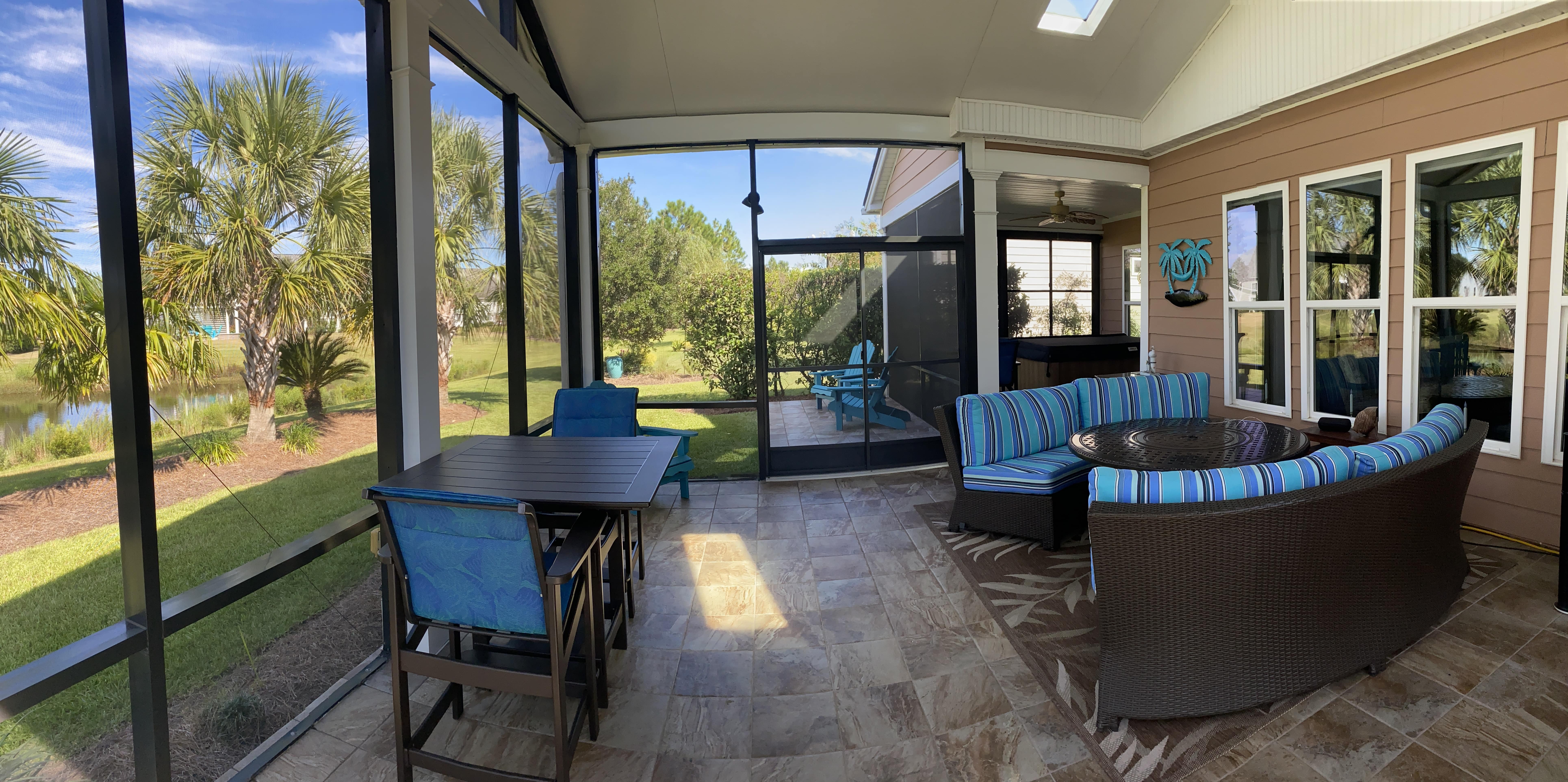 This beautiful Dunwoody Way floor plan home sits on a lagoon + 14th hole golf course view lot in Bluffton's highly sought after Del Webb Sun City Hilton Head 55+ community of SC. Houses on the "golf course side" with a pond home site lot as well do not come up for sale often so don't miss out. Known for it's resort like lifestyle Del Webb Sun City is a retirement dream as is this home. Listen to the quiet babble of the fountain while enjoying your morning coffee, or sit in your hot tub in the evenings in the screened in porch. Special notes: a new 17 seer - high efficiency HVAC heat pump (2021), expanded 18 x 20 covered lanai, gourmet kitchen upgrades, and electric wall fireplace in the living area. With beautiful Hilton Head only 20 mins drive from Bluffton you get to enjoy the good life, and when you want even more to do, Charleston SC is but an hour and half drive north. Sun City Hilton Head homes by Del Webb in SC (Pulte Homes) is a very large gated 55+ (active adult) community near Bluffton / Okatie, SC with extensive resort-style amenities across multiple amenity centers. It’s built around recreational, social, and fitness offerings — three golf courses, multiple pools (indoor + outdoor), fitness centers, tennis & pickleball, dozens of clubs, a performing arts theater, and on-site dining — plus trails, parks and specialty facilities (woodworking, billiards, dog parks, boat/RV storage).