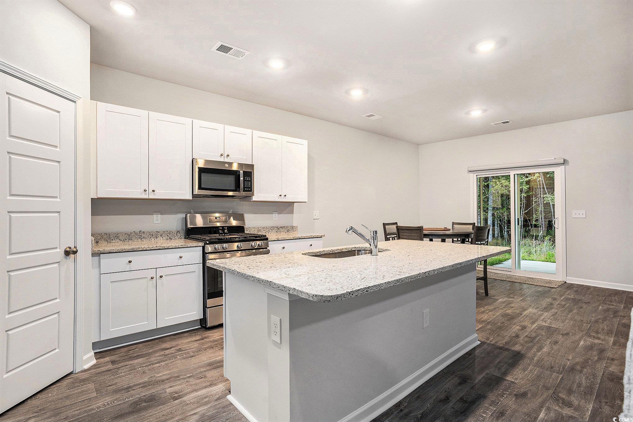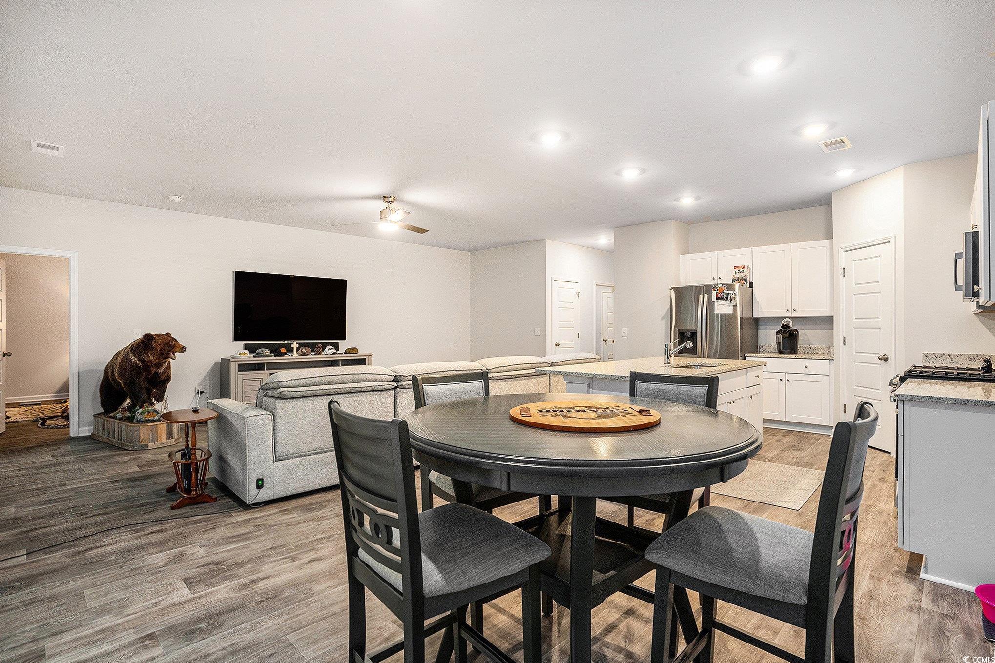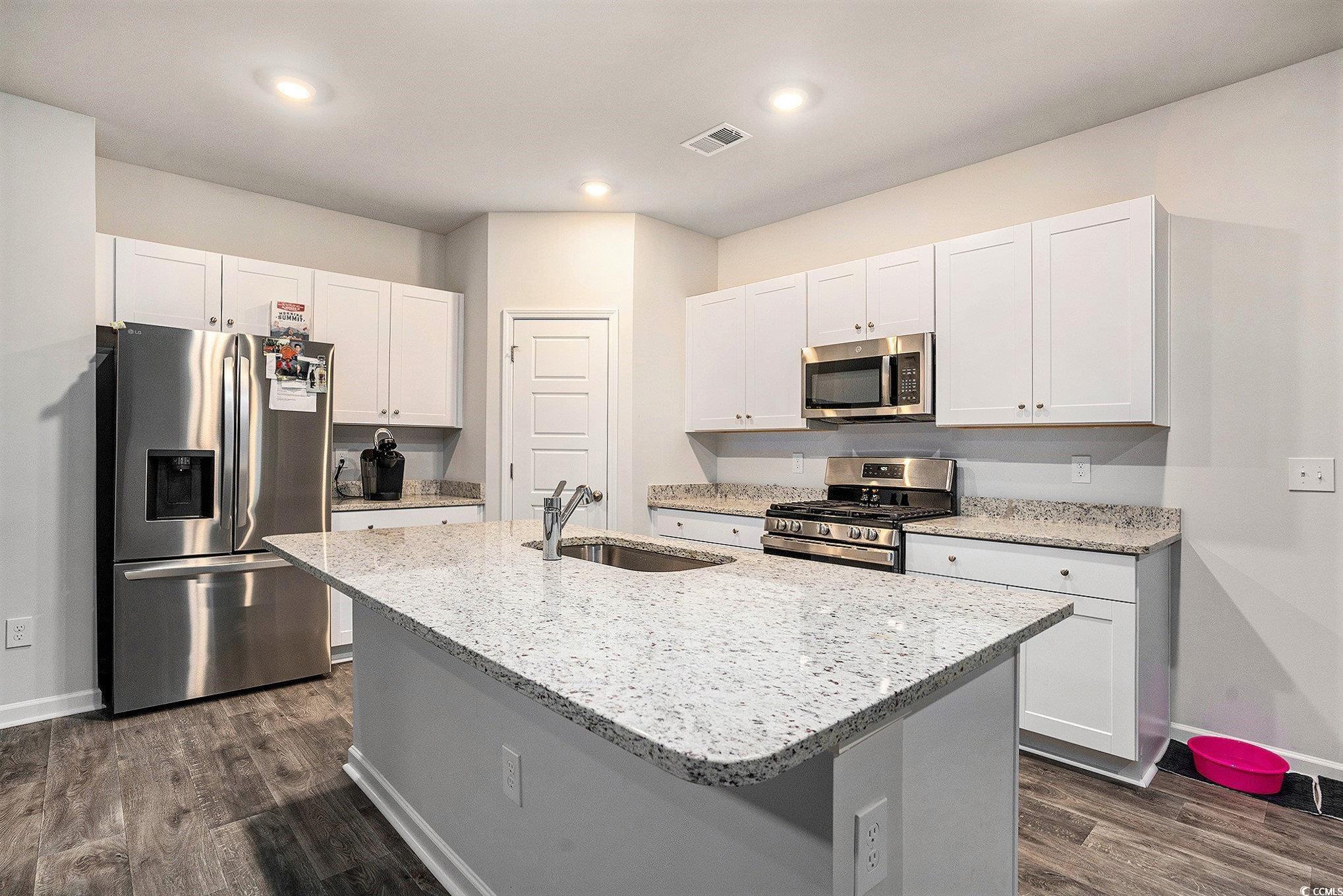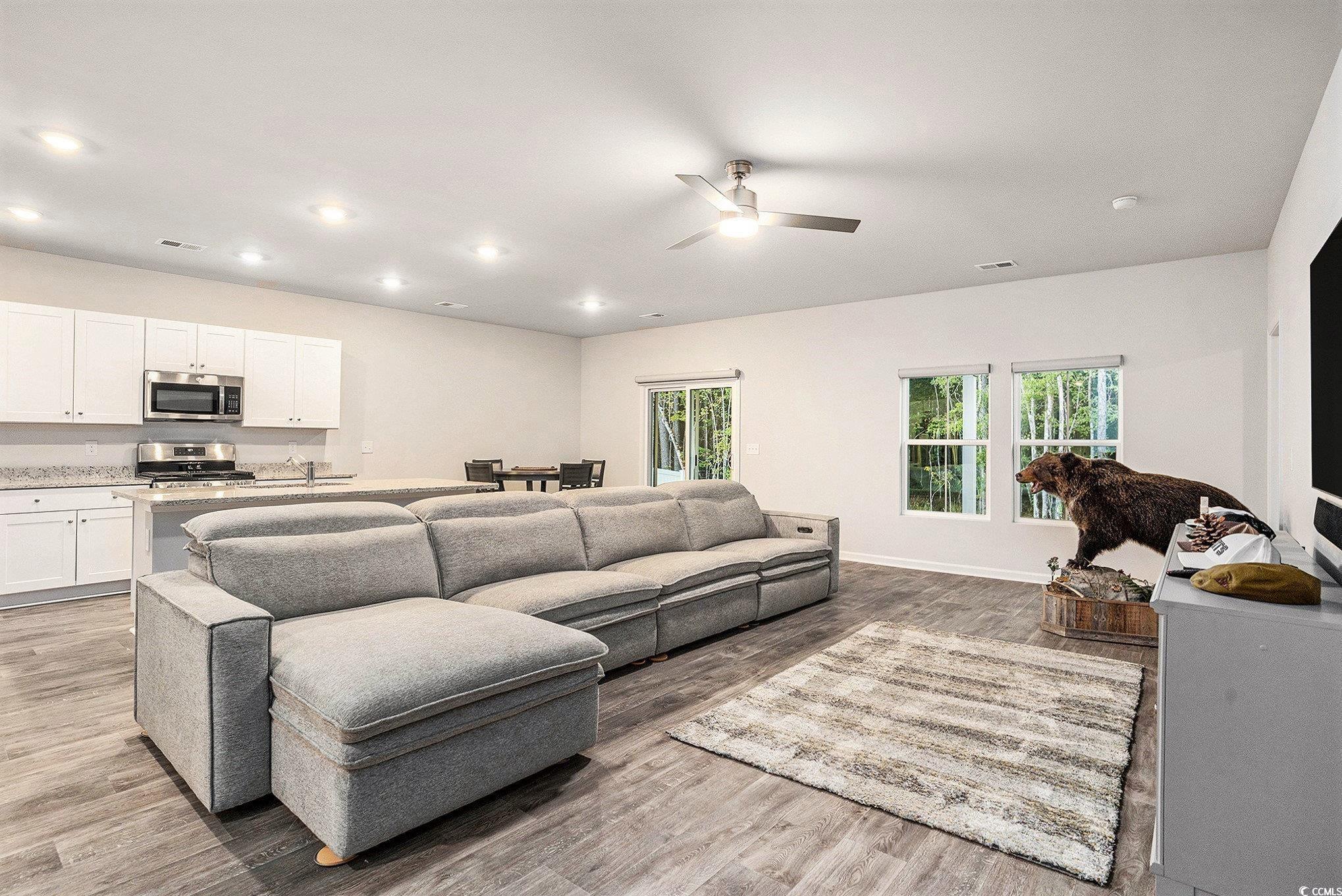 The Price has been reduced!! This is a well-kept, like new home with 4 bedrooms, 2 full baths, dining area, and very comfortable living room. The large utility room has plenty of space for laundry appliances and storage. The home has many improvements such as a high value remote screen to the garage door, premium landscaping with easy-to-grow Palmetto trees and treated pebbles for the flower beds and located at the end of the street with a spacious round turn-around feature for added parking and security. As part of the Saddle Ridge Community, you will enjoy a pool, picnic area, playground, and well maintained scenic lakes. This home offers country calm living with modern comfort. Tucked at the quiet end of the cul-de-sac in Saddle Ridge, this one-year-young, well-kept home pairs small town serenity with thoughtful, move in ready upgrades you don’t have to budget for later. Premium landscaping with easy to grow Palmetto trees and treated pebbles gives lasting curb appeal, and the end of street setting includes a spacious round turn around that adds a low traffic feel and convenient guest parking. Inside, an open, easy living design connects the living, dining, and kitchen areas for everyday flow and effortless entertaining. Durable LVP flooring runs throughout the home for a clean, cohesive look and low maintenance. The kitchen blends function and finish with stainless steel appliances, a gas range for responsive cooking, and sleek granite countertops that elevate the workspace. The split bedroom layout places the private primary suite apart from the three secondary bedrooms, offering comfortable separation for guests, a home office, crafts, or fitness. Two full baths serve the home with convenience, and a large utility room provides generous space for laundry and everyday storage, keeping life organized and out of sight. Outdoor living is a highlight. A covered back porch overlooks a secluded feeling backyard, perfect for morning coffee, quiet reading, evening wind downs, stargazing, or simply listening to the crickets after a long day. Comfort upgrades make daily life easier, including remote control window blinds for instant light and privacy control. The garage features a screen system that creates a breezy, bug free flex space for hobbies, workouts, or casual hangouts so you can enjoy fresh air without the pests. Saddle Ridge delivers the right community perks while preserving a rural vibe: a neighborhood pool, picnic area, playground, and well maintained scenic lakes. Everyday essentials, dining, and the charm of historic Downtown Conway are close by, giving you the best of both worlds, quiet when you want it, convenience when you need it.