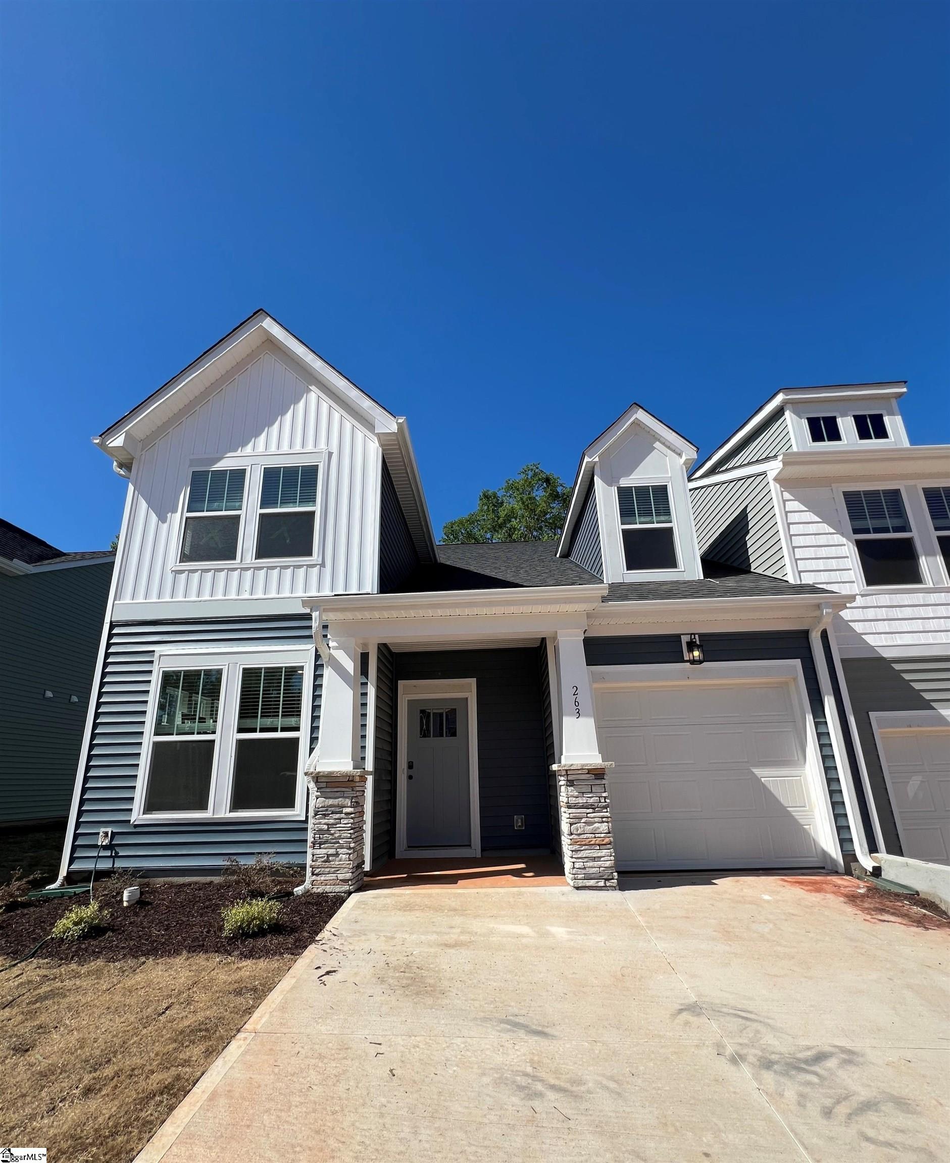 Welcome to Aspen Ridge! The most prestigious and conveniently located new homes just 6 miles from Downtown Greer, SC. Offering 2,185 square feet of functional living space, the Summit is a thoughtfully crafted home that is sure to meet all your needs. Enter the spacious foyer from your front porch and come into the open concept living area where you can entertain seamlessly between the living room, kitchen and breakfast area. The chef's kitchen is a must see with stunning white cabinetry, dark granite countertops, tiled backsplash, center island with sink, under cabinet lighting and stainless steel gas appliances including a refrigerator! The 12’ Cathedral Ceilings makes the living room open and airy and lead out to the covered porch and more private backyard which is perfect for those summer evenings. Retreat to the luxurious main floor Primary Suite, complete with a generous walk in closet and spa like bathroom featuring double vanities and a beautiful tiled shower with seat and glass door. There is also a study with french doors off the foyer, a full bath as well as your laundry room with washer/dryer included which completes the main level. Upstairs are two large bedrooms, a full bath, and a versatile room that would be a great entertaining space or even another bedroom. Blinds are also included throughout the home. The 1 car garage and double parking pad give a convenient and versatile combination for car storage and parking. Smart home technology, energy-efficient design, and a dedicated local warranty team ensure long-term comfort and convenience. Experience Aspen Ridge, a thriving community in a convenient, private setting with included lawn maintenance minutes from Greer, SC in the town of Lyman, SC! Live effortlessly in your new home with easy access to Greenville, SC, I-85, nearby schools, shops, parks and restaurants. Desirable open-concept floorplans with craftsman style exteriors. Main level or second level primary suites available with premier features floorplans including, 2-story ceiling, 9-foot kitchen island, spacious primary suites, LVP flooring, and plentiful large windows allowing an abundance of natural light. This home is almost complete so come by today and make Aspen Ridge your new home. See Sales Agent for additional pricing information.