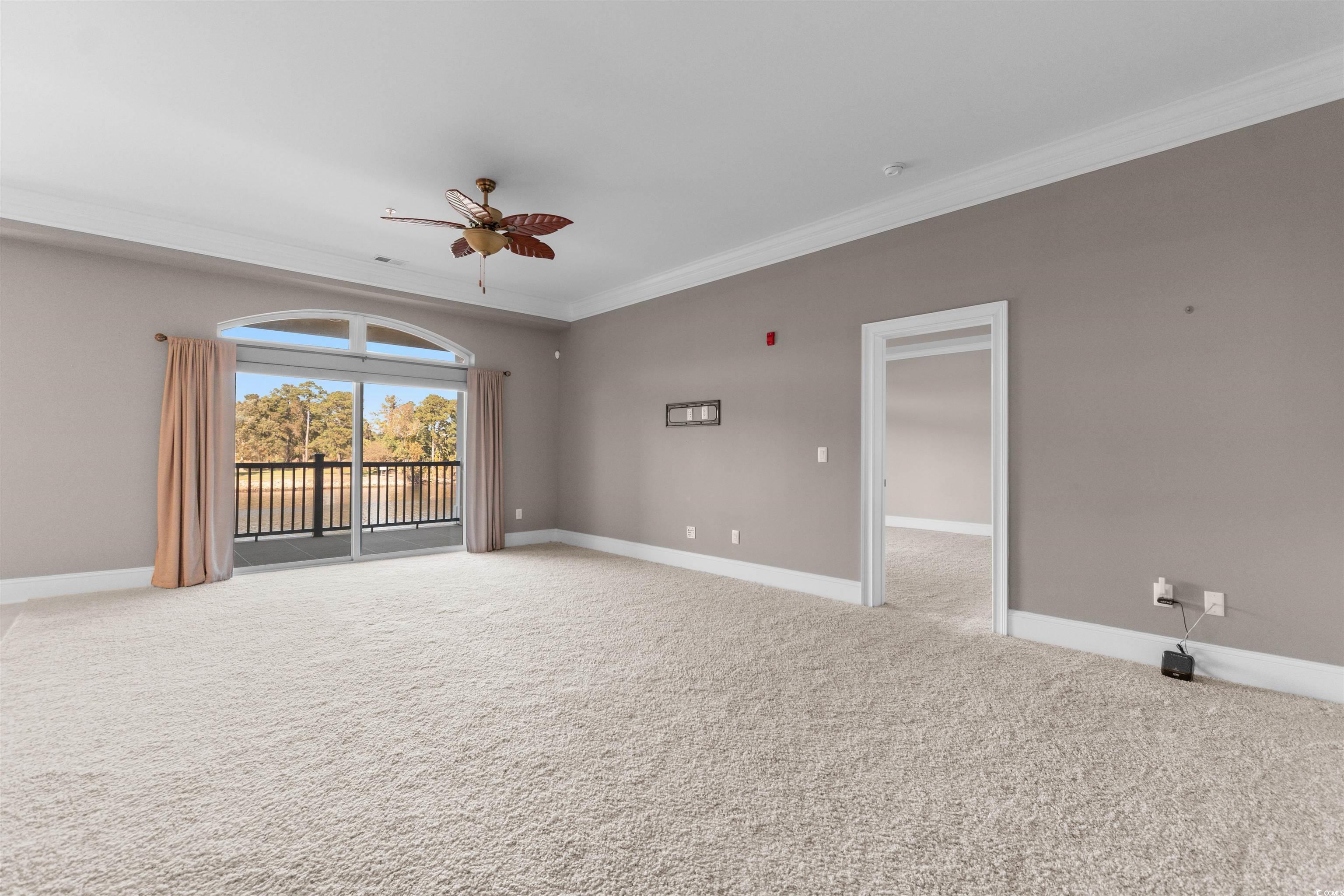 Boat slip and lift included! Experience the best of waterfront living in this stunning 4-bedroom, 3-bath end-unit condo perfectly situated along the Intracoastal Waterway in the exclusive Lauderdale Bay community. This first-floor residence combines upscale design with coastal comfort, offering breathtaking waterway and golf course views from nearly every room. Step inside to find an inviting open-concept layout enhanced by elegant tile flooring, crown molding, and abundant natural light. The spacious living room flows effortlessly to your private covered balcony—ideal for morning coffee, sunset cocktails, or simply relaxing as boats drift by. The gourmet kitchen is a showpiece with granite countertops, stainless steel appliances, tile backsplash, walk-in pantry, and a large breakfast bar that’s perfect for entertaining. The primary suite is a serene retreat featuring tray ceilings, dual walk-in closets, and direct balcony access. The ensuite bath exudes luxury with double vanities, a soaking tub, walk-in shower, and makeup vanity. A second ensuite bedroom provides comfort and privacy for guests, while two additional bedrooms share a beautifully appointed third bath. Additional highlights include a separate laundry room with cabinets and utility sink, a private storage unit, and assigned covered parking. Lauderdale Bay offers resort-style amenities such as a waterfront pool, grilling area, gazebo, and gated access. Ideally located just off Highway 17 Bypass, you’ll be minutes from Market Common, Myrtle Beach State Park, premier golf courses, shopping, fine dining, and all the attractions of the Grand Strand. Whether you’re seeking a luxurious primary home, a coastal retreat, or a smart investment, this exceptional condo delivers the perfect blend of style, comfort, and waterfront living.
