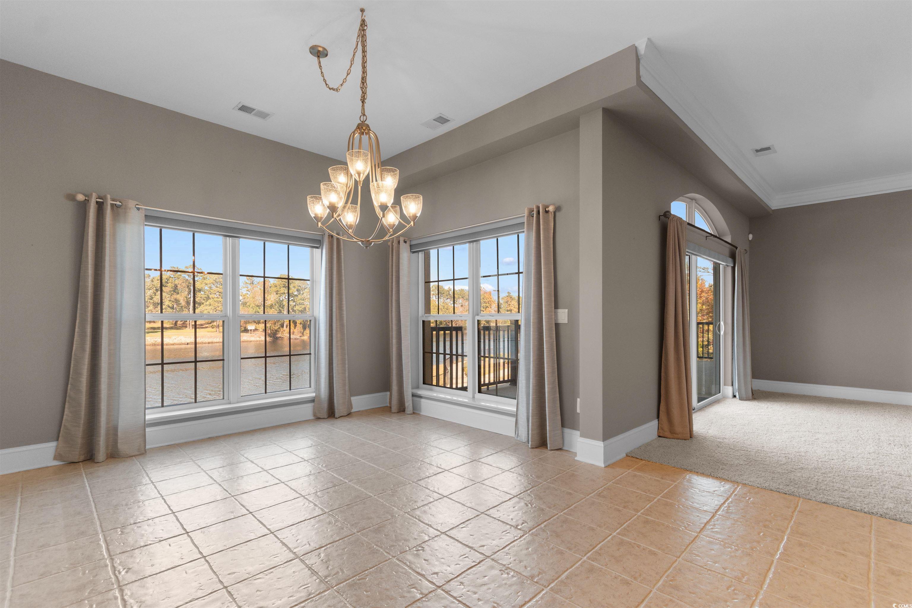 Experience the best of waterfront living in this stunning 4-bedroom, 3-bath end-unit condo perfectly situated along the Intracoastal Waterway in the exclusive Lauderdale Bay community. This first-floor residence combines upscale design with coastal comfort, offering breathtaking waterway and golf course views from nearly every room. Step inside to find an inviting open-concept layout enhanced by elegant tile flooring, crown molding, and abundant natural light. The spacious living room flows effortlessly to your private covered balcony—ideal for morning coffee, sunset cocktails, or simply relaxing as boats drift by. The gourmet kitchen is a showpiece with granite countertops, stainless steel appliances, tile backsplash, walk-in pantry, and a large breakfast bar that’s perfect for entertaining. The primary suite is a serene retreat featuring tray ceilings, dual walk-in closets, and direct balcony access. The ensuite bath exudes luxury with double vanities, a soaking tub, walk-in shower, and makeup vanity. A second ensuite bedroom provides comfort and privacy for guests, while two additional bedrooms share a beautifully appointed third bath. Additional highlights include a separate laundry room with cabinets and utility sink, a private storage unit, and assigned covered parking. Lauderdale Bay offers resort-style amenities such as a waterfront pool, grilling area, gazebo, and gated access. Ideally located just off Highway 17 Bypass, you’ll be minutes from Market Common, Myrtle Beach State Park, premier golf courses, shopping, fine dining, and all the attractions of the Grand Strand. Whether you’re seeking a luxurious primary home, a coastal retreat, or a smart investment, this exceptional condo delivers the perfect blend of style, comfort, and waterfront living.