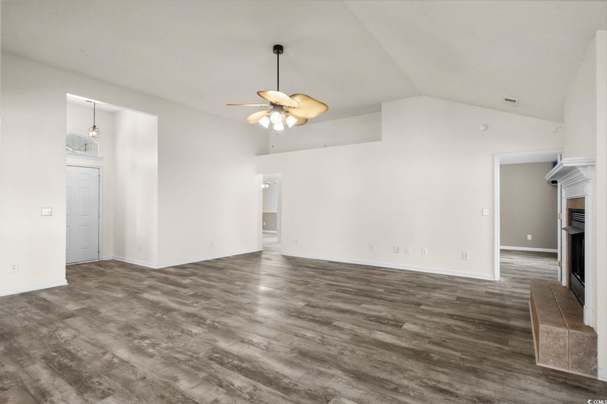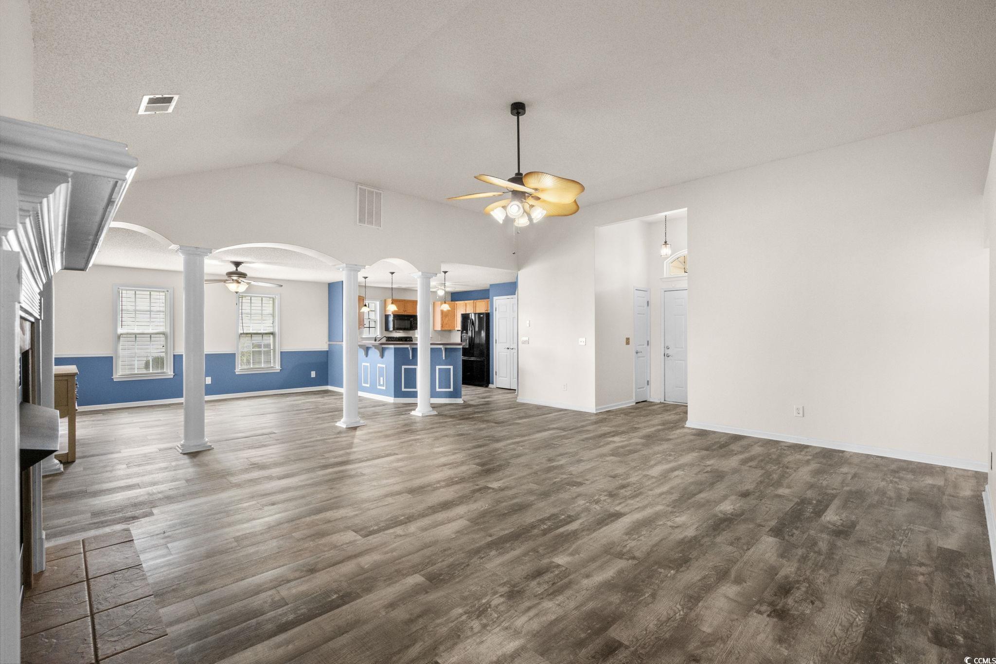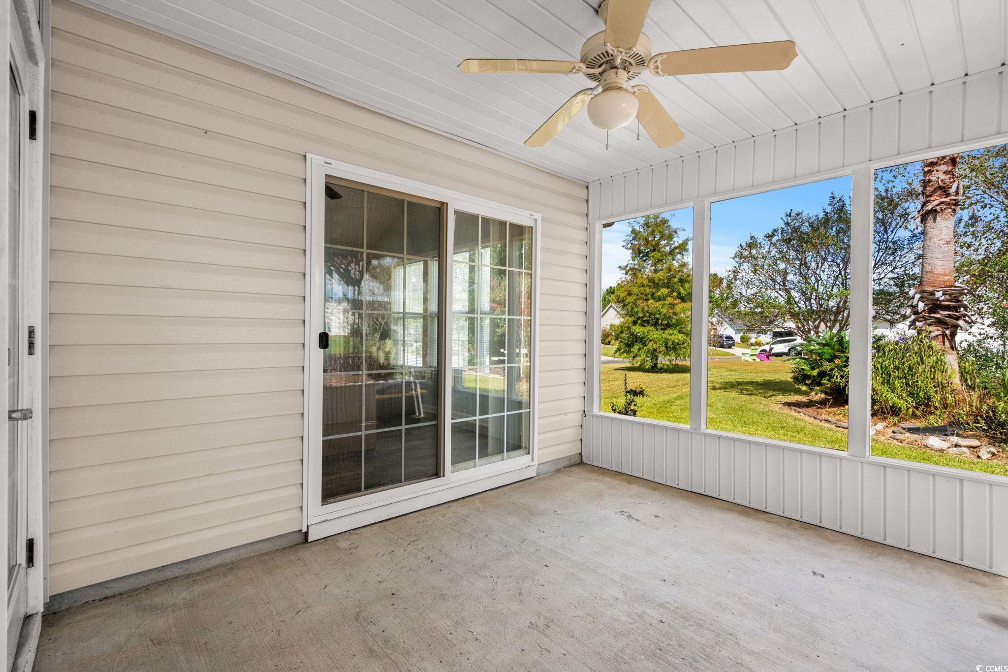 Welcome to this 3-bedroom, 2-bath upgraded floor plan home, perfectly situated on a spacious corner lot in the sought-after Highland Ridge neighborhood within the Forestbrook community of Myrtle Beach. Step inside to an inviting open-concept layout where the living and dining areas flow seamlessly into the kitchen, ideal for both entertaining and everyday living. Elegant architectural details, including stately columns and a two-way electric fireplace, add charm and warmth. Enjoy the fireplace from the comfort of the living room or the light-filled Carolina room, surrounded by windows on all sides. Outdoor living is a dream with a screened-in patio complete with ceiling fan, and an additional pergola-covered patio surrounded by mature landscaping and scenic pond views. The home features upgraded LVP flooring throughout living area. This home provides a newer roof, water heater, garage door opener, HVAC system, and a UV red light in the attic that is connected to the HVAC system that enhances air quality. Highland Ridge residents enjoy access to a beautifully maintained community pool. Don't miss your chance to own this unique property, schedule your showing today!