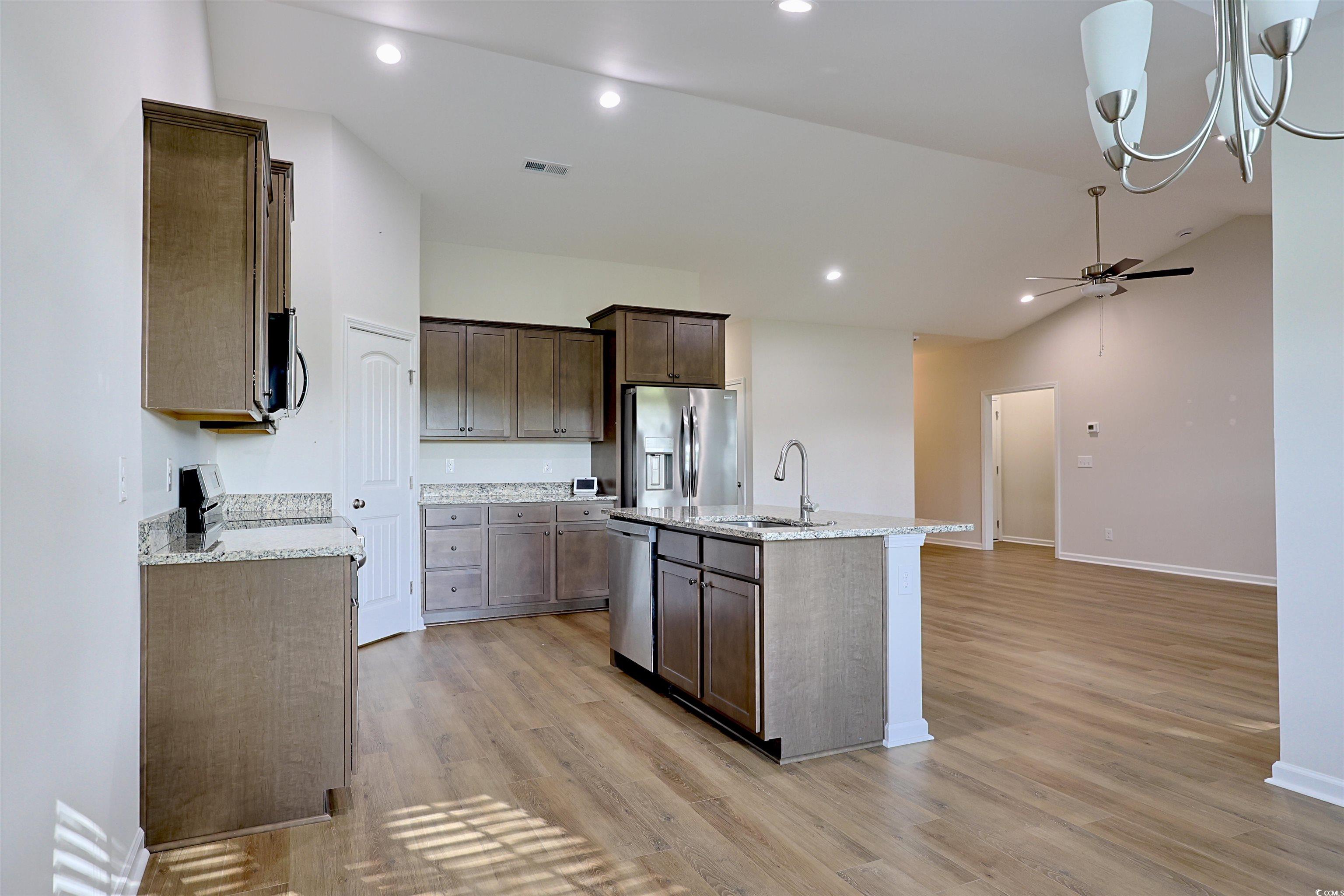 Welcome to 266 Ole Maple St – a charming 3-bedroom, 2-bathroom home located in a quiet, established neighborhood in Longs with no HOA! This well-maintained, single-level home offers a spacious open floor plan designed for both comfort and functionality. Step inside to find a bright living area with vaulted ceilings that flows seamlessly into the dining space and kitchen. The kitchen features granite countertops, appliances, a large island with bar seating, and ample cabinet space. The owner's suite offers a walk-in closet and an en-suite bath with dual sinks and a walk-in shower. Enjoy outdoor living on your covered back patio with a view of the spacious yard – perfect for entertaining, gardening, or simply relaxing. Additional features include detached storage outside, luxury vinyl plank flooring in the main living areas, a separate laundry room, and a two-car garage. With no HOA, you have the freedom to personalize your property without restrictions. Located just minutes from Highway 9, this home offers easy access to North Myrtle Beach, shopping, golf, and more. Don’t miss this opportunity to own a move-in-ready home in a growing area – schedule your showing today!