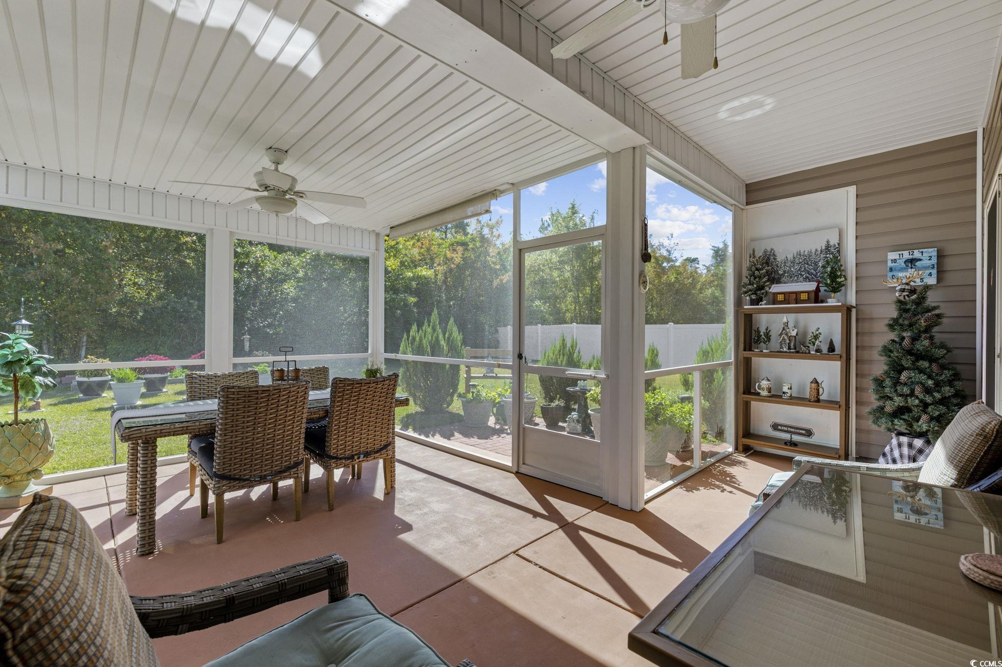 Nestled within the desired community of Heartwood, this 3 bedroom 2 bathroom home is in immaculate condition that offers an unbeatable combination of luxury and practicality. The home itself features an open floor plan and upgrades throughout; LVP flooring, crown molding, vaulted and tray ceilings, stainless steel appliances, granite countertops, an extended master suite with a garden tub and walk in shower, and tile floors in the bathrooms and laundry room! The exterior features a shaded front porch and a wooded view from the back that allows you the privacy to enjoy your large yard. A screened in patio addition was added to make your outdoor area even bigger to relax and entertain. That combined with a uncovered patio portion perfect for grilling and a herb garden. The residents benefit from a desirable neighborhood lifestyle complete with access to a community pool and low HOA fees. The location is incredibly convenient, being just minutes from the award winning Aynor District Schools, and just 1/2 mile from Highway 22, providing easy access to the renowned beaches of Myrtle Beach and North Myrtle Beach. You'll also be just minutes away from all that downtown Conway has to offer and the picturesque Historic River Walk. Don't miss this opportunity to own a beautiful home that perfectly blends community perks, affordability, and coastal accessibility!