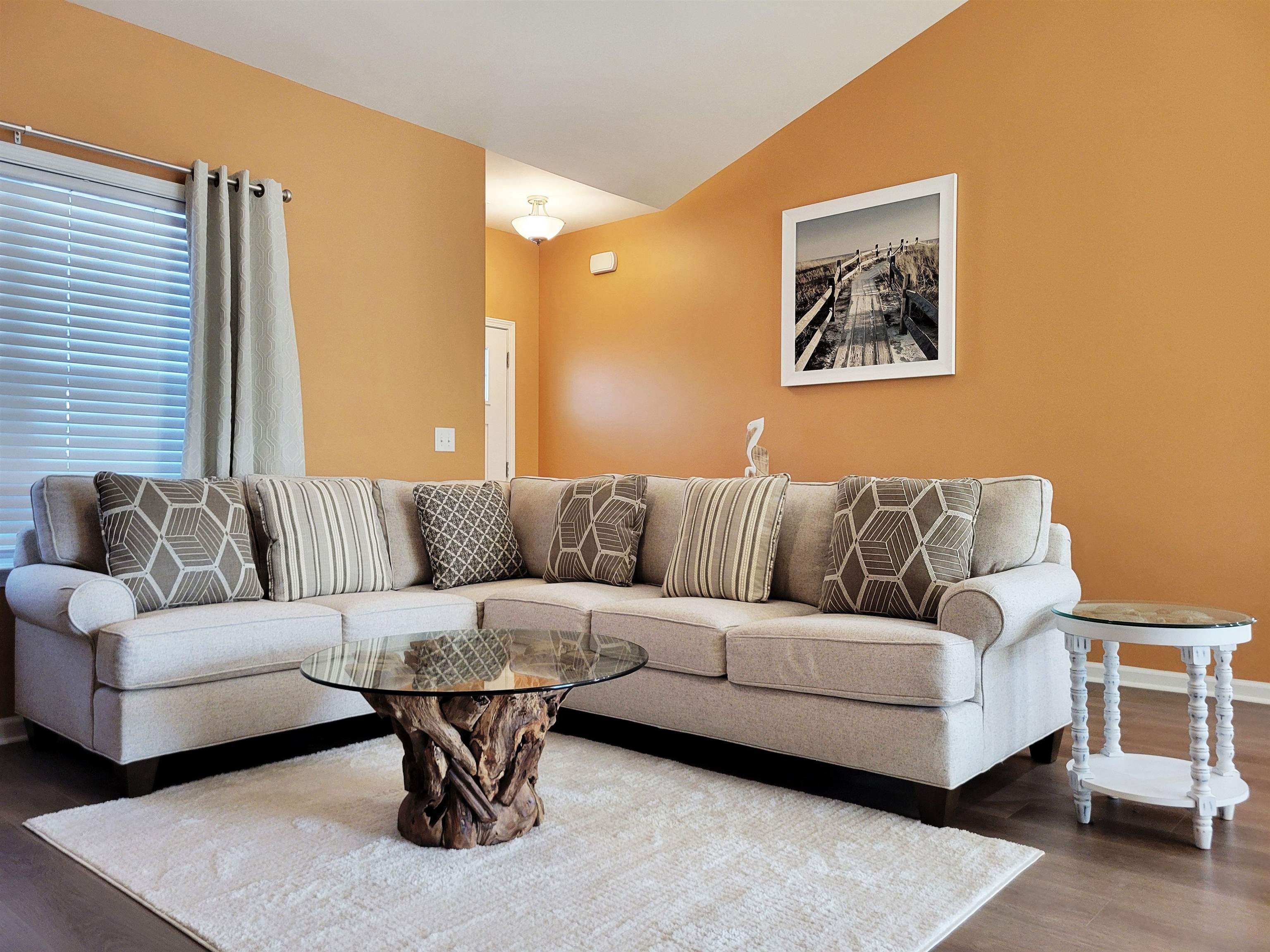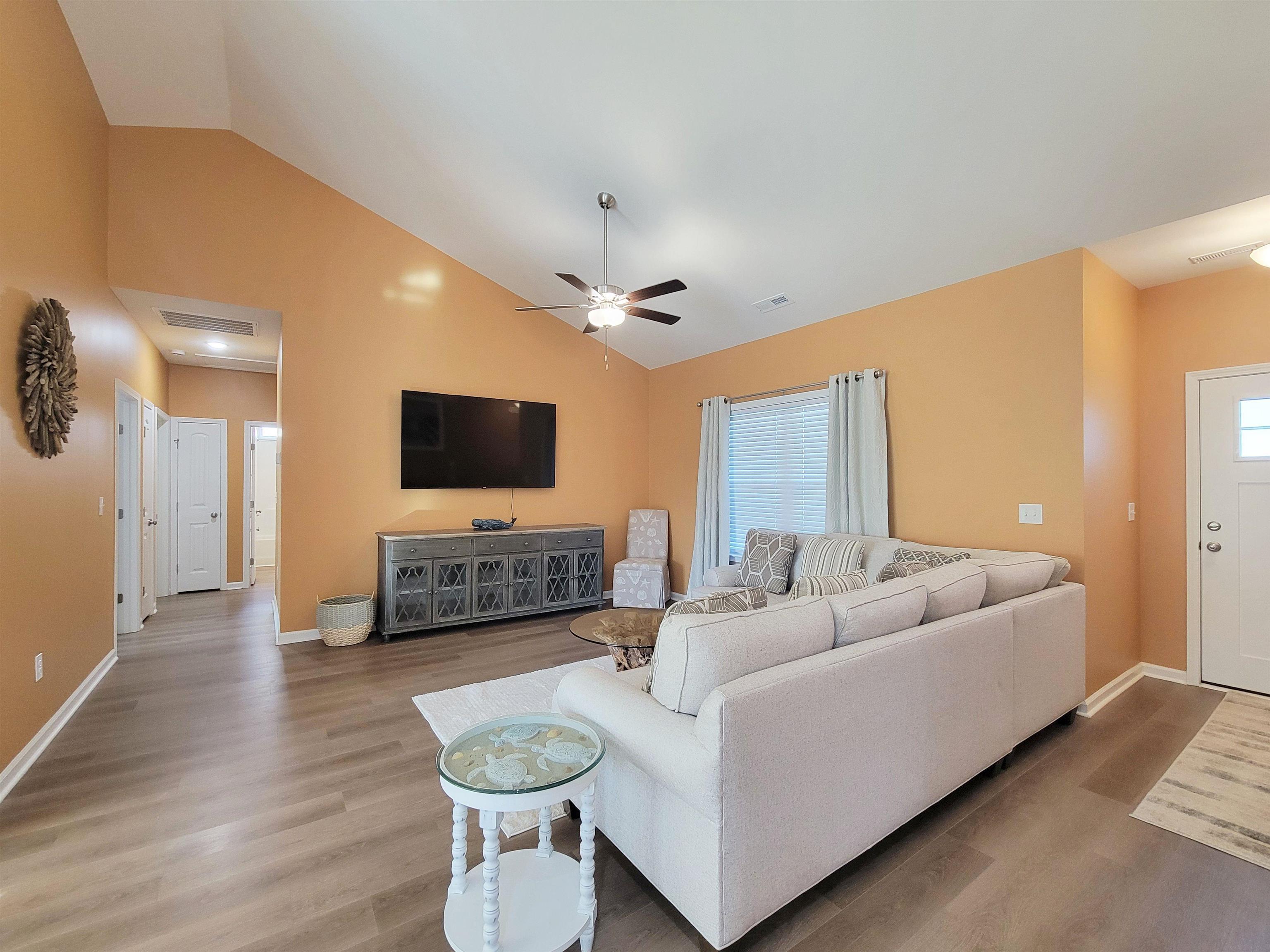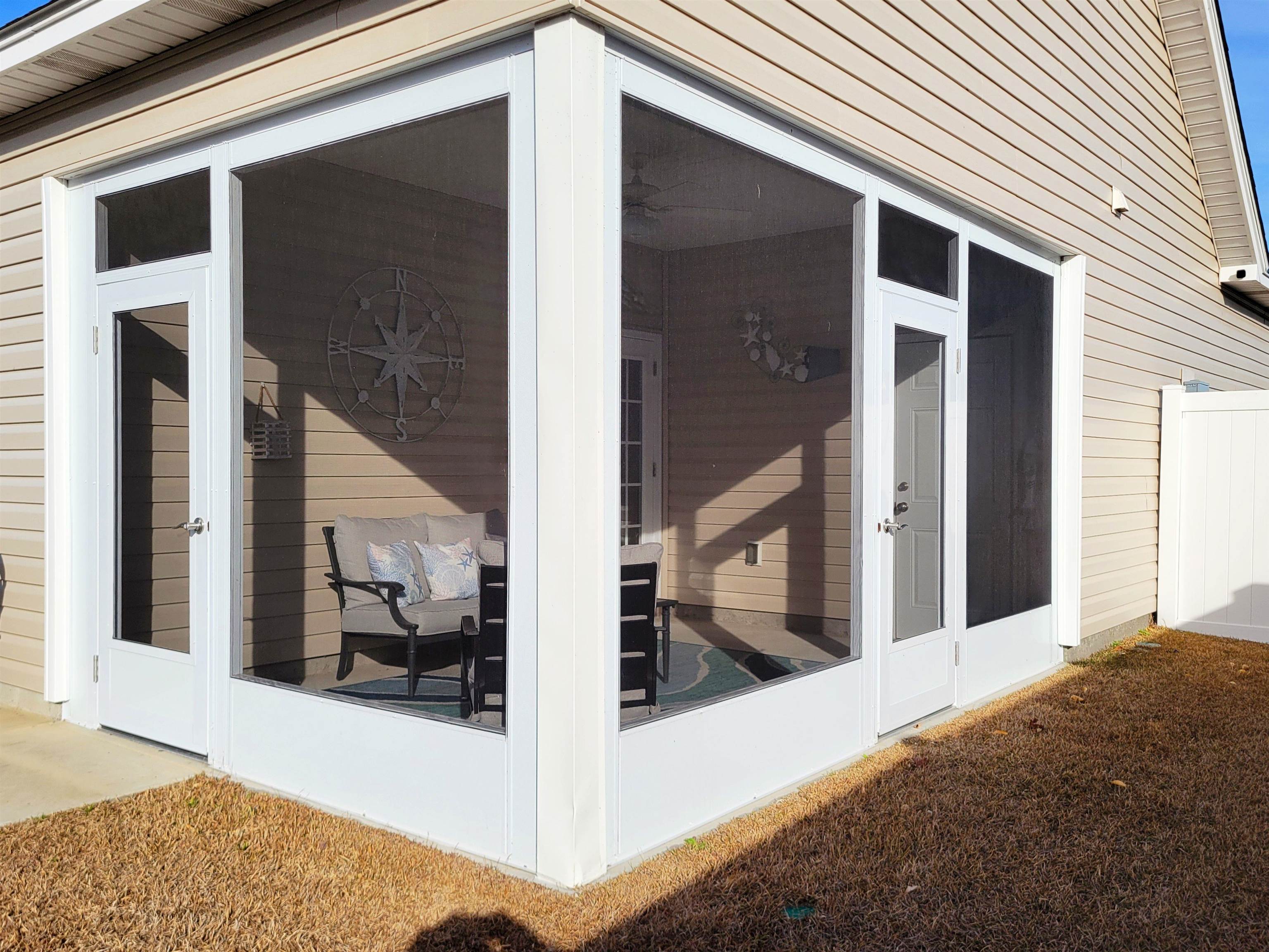 Welcome to 267 Lifestyle Court, an impeccably maintained, single-story coastal retreat nestled in the desirable Ocean Palms community. Thoughtfully designed with a custom floor plan, this 2024-built home has been used exclusively as a second residence by its original owners, offering a rare opportunity to enjoy a like-new home with refined finishes and meaningful upgrades already in place. Inside, luxury vinyl plank flooring runs throughout the home, complementing the light-filled, open layout. The kitchen is both stylish and functional, featuring quartz countertops, a white Kohler farmhouse sink, tile backsplash, and a full complement of stainless appliances, including a gas stove. Pendant lighting over the island and brushed nickel fixtures add a polished, contemporary touch, while the washer and dryer convey for added convenience. This home offers three bedrooms and two full baths, including a spacious primary suite with double vanities, quartz countertops, and a beautiful walk-in shower. Additional interior highlights include a wall safe, pull-down attic stairs with floored storage, and an efficient gas furnace system paired with electric A/C. Outdoor living is equally inviting with a front porch, rear patio, and new screened porch, perfect for relaxing after a day at the beach. Other recent upgrades include an irrigation system, privacy fence, added landscaping and custom interior paint throughout. Residents of Ocean Palms enjoy access to a community pool, enhancing the neighborhood’s relaxed lifestyle. And, of course, the beach is just a golf cart ride away! (Golf cart and furnishings may be purchased separately, if desired.) Combining modern construction, elegant finishes, and convenience, 267 Lifestyle Court is an exceptional opportunity to embrace effortless coastal living.