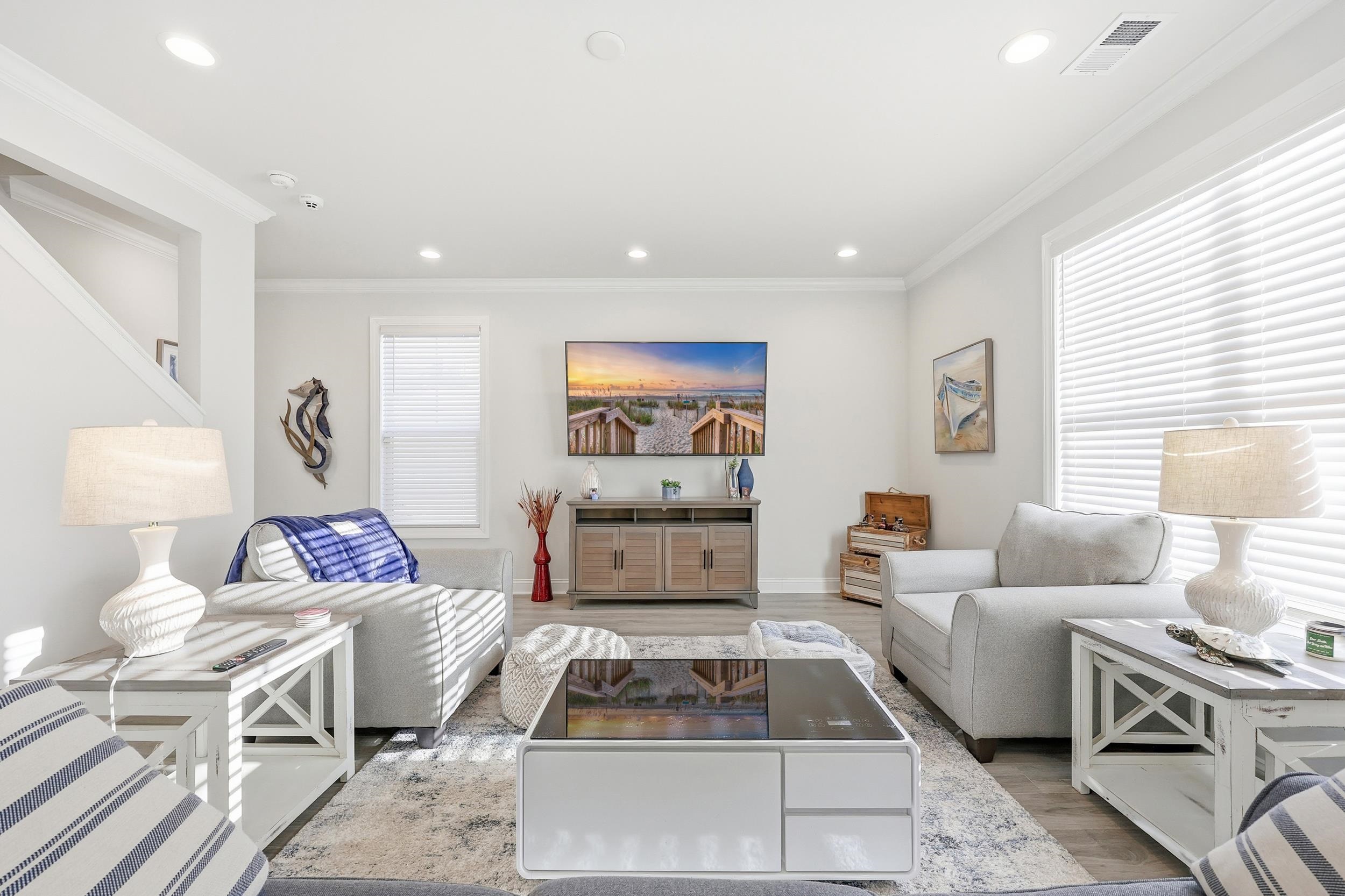 Imagine ending your day by the firepit overlooking the pond while the lights energy and dining of Market Common sit just a golf cart ride away. Welcome to 2688 Stellar Loop where open concept living modern finishes and the Myrtle Beach lifestyle come together in one of the most walkable and sought after communities in the area. The main level offers a bright open concept great room that flows seamlessly into a move in ready kitchen featuring modern gray cabinetry quartz countertops a large island with breakfast bar stainless Whirlpool appliances including a gas range and a spacious walk in pantry. Sliding glass doors lead to a screened porch and expansive patio creating exceptional outdoor living with peaceful pond views and a fully fenced backyard ideal for relaxing entertaining and everyday enjoyment. The backyard is fully equipped with an irrigation system to keep everything looking its best year round. A versatile flex space on the first floor provides the perfect home office formal dining room or den. Upstairs all four bedrooms are thoughtfully arranged together creating a private retreat separate from the main living areas. The primary suite features a huge custom walk in closet and spa inspired bath with double sinks a five foot shower and a linen closet. The second floor laundry adds everyday convenience. Throughout the home all smart switches are fully connected creating a modern smart home experience with comfort efficiency and control at your fingertips. From morning walks on scenic trails to boutique shopping dining parks and year round events Market Common delivers low maintenance coastal living in a vibrant family friendly community. This is not just where you live this is where your days slow down your weekends open up and everything starts to feel easier. Homes like this do not just get listed they get claimed.
