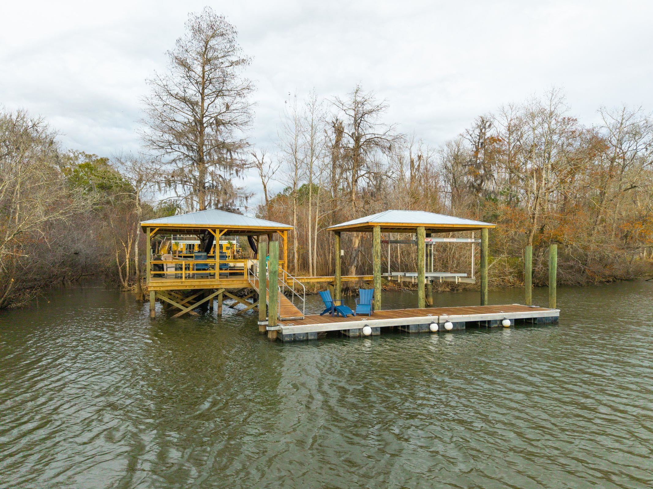 **UNDER CONTRACT ACCEPTING BACKUP OFFERS** Welcome to this TRUE DEEP WATER paradise on the North Santee River in South Georgetown. Tucked away in a private setting on 2.6 acres, this modern riverhouse has more to offer than meets the eye. Over the last year and a half, this unique retreat has undergone many renovations and upgrades including: EXTERIOR brand new saltwater pool & spa with river rock at entertaining area, new 12x44 pool deck with trex decking & cable railing complete with water/power, new 6ft walkway to pier head (wide enough for a golf cart) with water and power, new 21x21 covered pier head with sink, 3ft cat walk to new covered 13,000 lb. boat lift with auto stop up and down, 30x40 metal garage with two 12x12 roll up doors and 1 side entry door, new gas rinnai hot water heater, all new spray foam with all newduct work and painted sheetrock, new landscaping front & back yards, back yard fenced with automatic front entry gate,10x10 greenhouse, new gutters installed around perimeter, and exterior recently painted. INTERIOR refinished pine floors, new HVAC with new ductwork upstairs & downstairs with 10 year warranty, renovated half bath downstairs, new back glass French door and sidelights, new light fixtures, new gas stove. Large entertainer's kitchen features an expansive island, ample storage, and pantry with option to expand into adjacent room currently being used as an office. The expansive back screened porch overlooks the resort-like pool and river beyond. The bright and open great room features cathedral ceilings and a wood burning fireplace. The primary suite is on the main level with access to the back porch, with an additional four bedrooms upstairs, separated by an open catwalk. An entertainer's dream setup lies underneath with an outside bar, TV, and ample lounge seating around the pool and spa. Being offered FULLY FURNISHED and equipped with an elevator. Enjoy complete access to the Intracoastal waterway, offering great boat/beach days or fishing in the Atlantic right from your own dock. This waterfront oasis is private and secluded (with no HOA), yet only a short drive into Downtown Georgetown and Pawley's Island, and just 30 minutes from North Mount Pleasant.