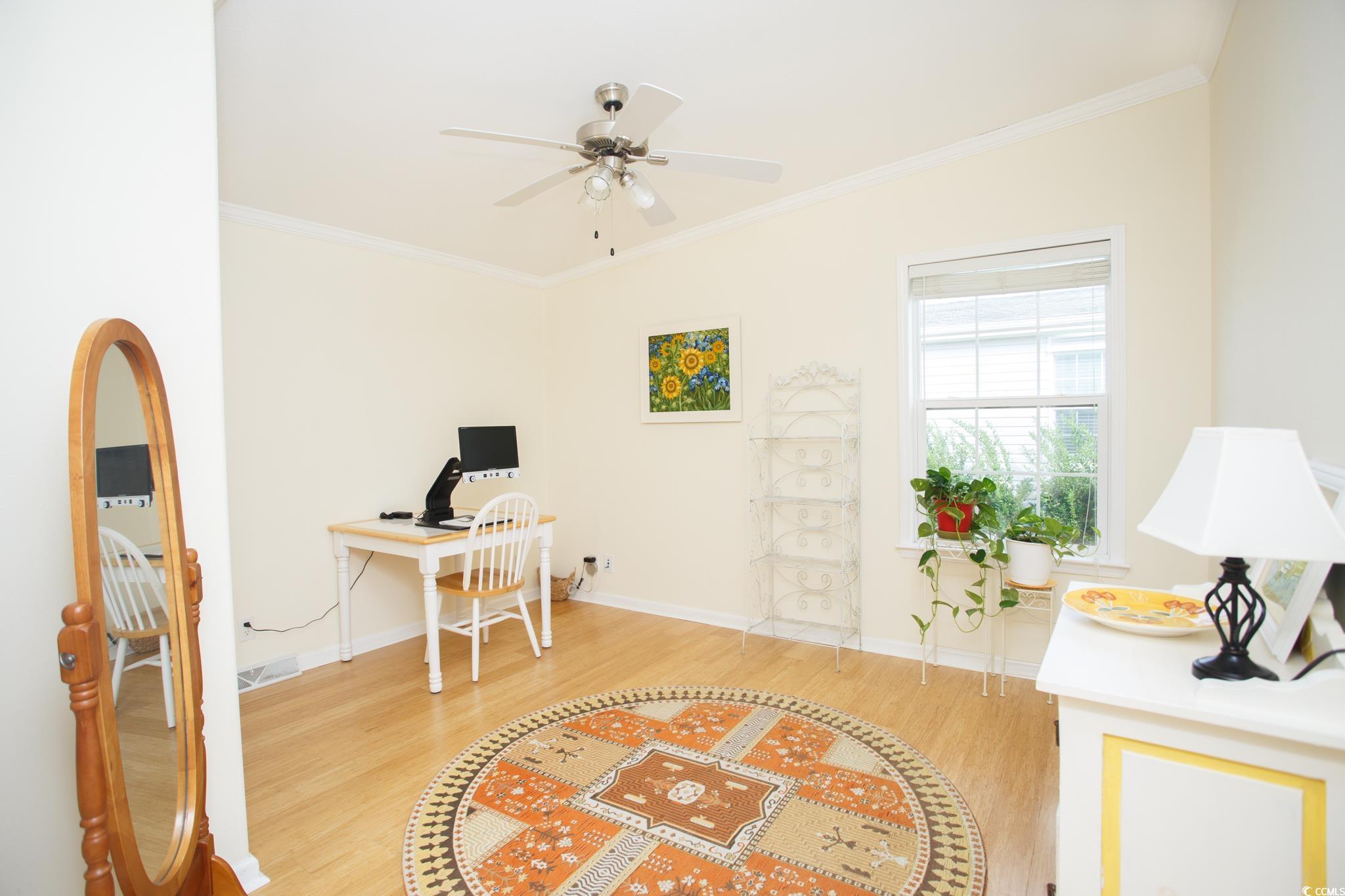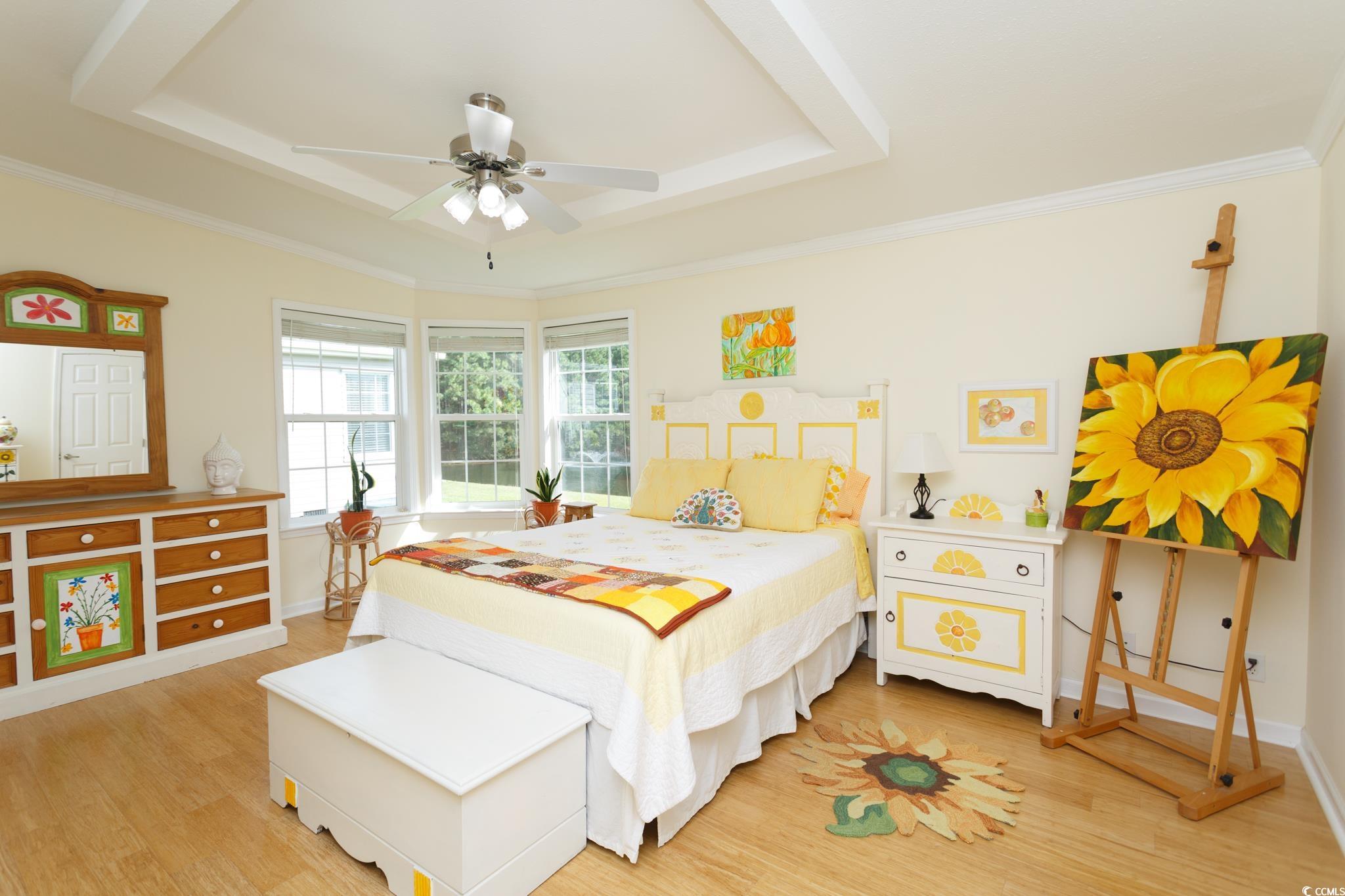 Colorful flowers welcome you home to this bright and impeccable 3-bedroom, 2-bath with gleaming hardwood floors, modern comforts, and tranquil views of the pond from a screened porch in the back. Spacious Master Suite with a tray ceiling, double vanity, separate shower, and garden tub for relaxed soaking. Fully equipped kitchen with stainless steel appliances, work island, backsplash, and desk area. New fridge, washing machine, and dryer. Freshly painted interior. Ceiling fans in porches and most rooms. A new roof was installed in 2024. This peaceful and active 55+ community covers lawn care, leaving you more time to enjoy the indoor and outdoor pools, hot tub, pickleball, shuffleboard, gym, lake with paddle boats, fishing lake, craft room, ballroom, exercise room, billiards, and library. Excellent location close to the beach, shopping, restaurants, golf courses, and medical centers, including Conway hospital. Just a short drive to downtown Conway and the Riverwalk. Lot fee covers mowing, edging, trash, lot taxes, and full amenity access. Move right in and call this your refuge! LEASED LAND