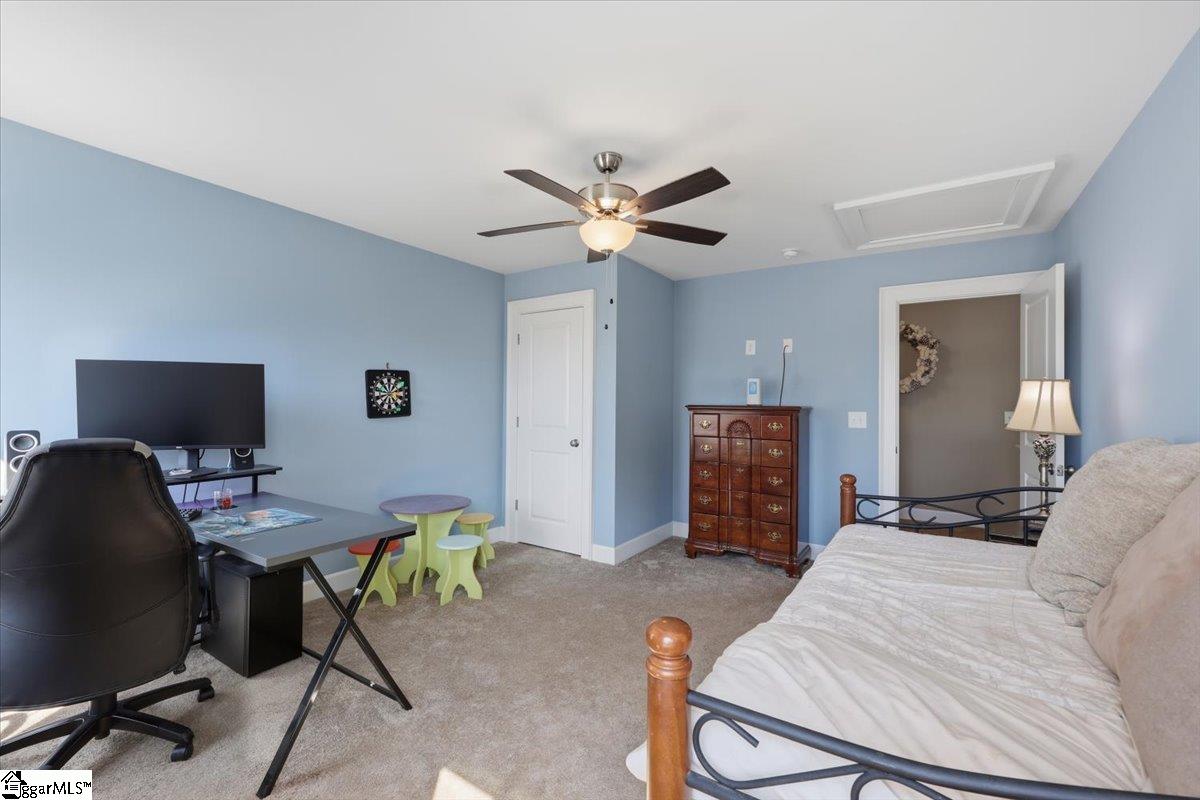 Presented by The Ann Morton Team, LLC powered by Keller Williams Drive....Welcome to 27 Camarillo Ct in the sought-after Saddlehorn community of Pelzer, SC. This beautifully upgraded 4-bedroom, 4.5-bath home offers a perfect blend of modern elegance and everyday comfort. Enjoy the rare luxury of three primary suites; one on the main level and two upstairs—each with a walk-in closet and private en-suite bath. The open-concept living space is bright and inviting, anchored by rich hardwood floors and a gourmet kitchen with a gas stove, ideal for gatherings. A versatile secondary living area can serve as a home office, gym, or playroom, while a tankless gas water heater ensures comfort. Step outside to the Trex deck, where you’ll enjoy stunning views of rolling horse pastures. Plus, a fenced backyard ready for a pool offers ample outdoor space. With a high-tech pet door, brand-new gutters with a transferable warranty, this home truly has it all. Schedule your private showing today and see why this is your dream home!
