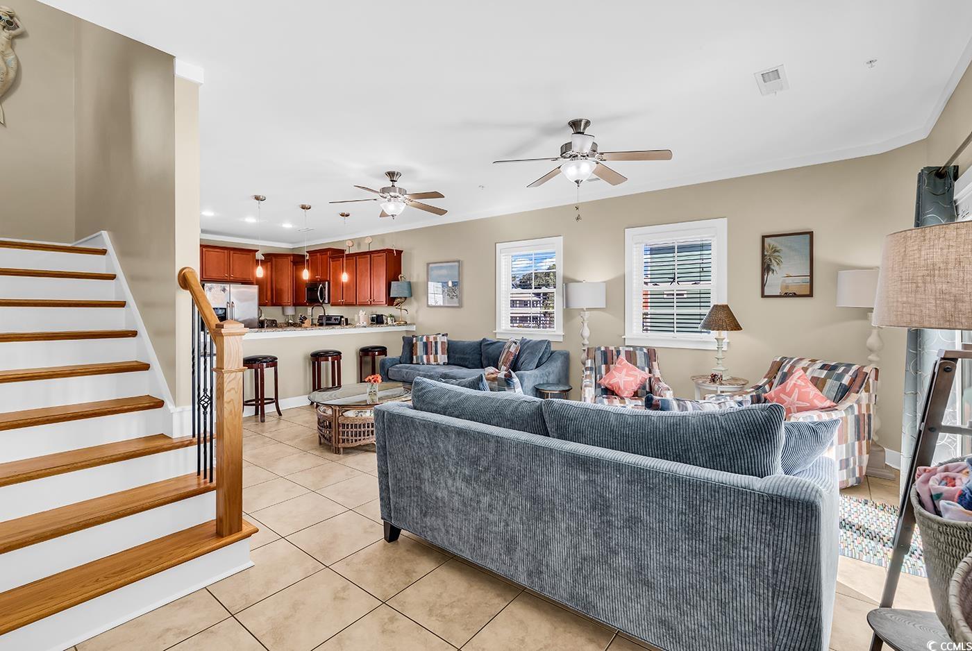 Have you ever imagined living at the beach with room for family and friends to visit? This is it!! Discover the perfect blend of coastal charm and modern comfort in this beautifully maintained third-row beach house in the heart of Myrtle Beach. Offering three spacious bedrooms and two and a half bathrooms, this bright and sunny retreat sleeps 8 and provides all the comforts of home. The large fully stocked kitchen—with its generous pantry and oversized closet—flows effortlessly into open living and dining areas, creating an ideal space for entertaining family and friends. Upstairs, the primary bedroom features a private ensuite bath, while the additional two bedrooms share a well-appointed bath. The second- floor laundry is a huge plus. With an outdoor shower for rinsing off sand, storage closet for beach essentials, and parking for three cars under the home, convenience comes easy. Relax on the balcony with a peek at the ocean, stroll across the street to the beach or spend time floating in the community pool, which is directly behind this home. The Myrtle Beach airport is less than 1.5 miles away, making this coastal getaway incredibly easy to reach for owners and guests alike. With 60 miles of beach and more than 90 golf courses along the Grand Strand, there is truly so much to do. Whether you're seeking an excellent short-term or long-term rental opportunity, a primary residence, or a dreamy second home, coastal living doesn’t get better than this.