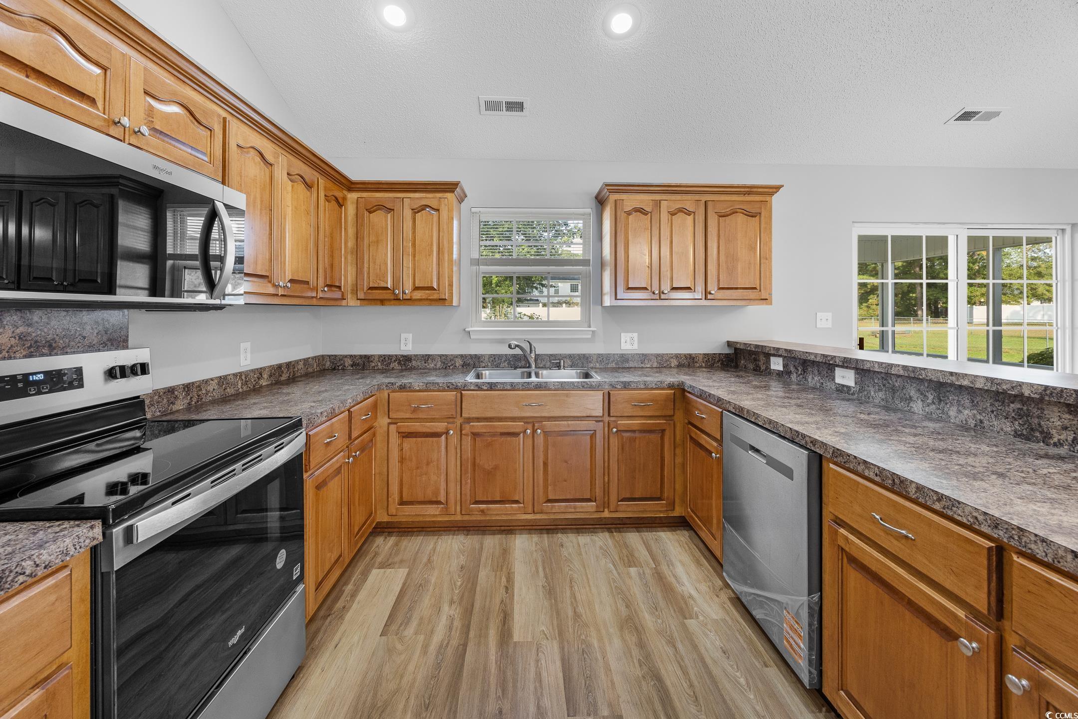 This charming three-bedroom, two-bath single-level home is move-in ready and conveniently located just a short drive from historic downtown Conway, offering the perfect blend of modern updates and relaxed living without any HOA fees. Freshly painted throughout with new luxury vinyl plank flooring in every room, the kitchen boasts brand-new stainless steel appliances, while the master bedroom features a stylish tray ceiling and spacious walk-in closet. All three bedrooms are equipped with new ceiling fans, and the home includes many updated fixtures for added convenience. Outside, enjoy a welcoming front porch, a screened porch for bug-free relaxation, a large backyard on a generous 0.29-acre lot, and a two-car garage for ample storage and parking. Do not pass up your chance to own this lovely home, call today to schedule your showing! *Some photos have been virtually staged. *Seller is licensed SC realtor*