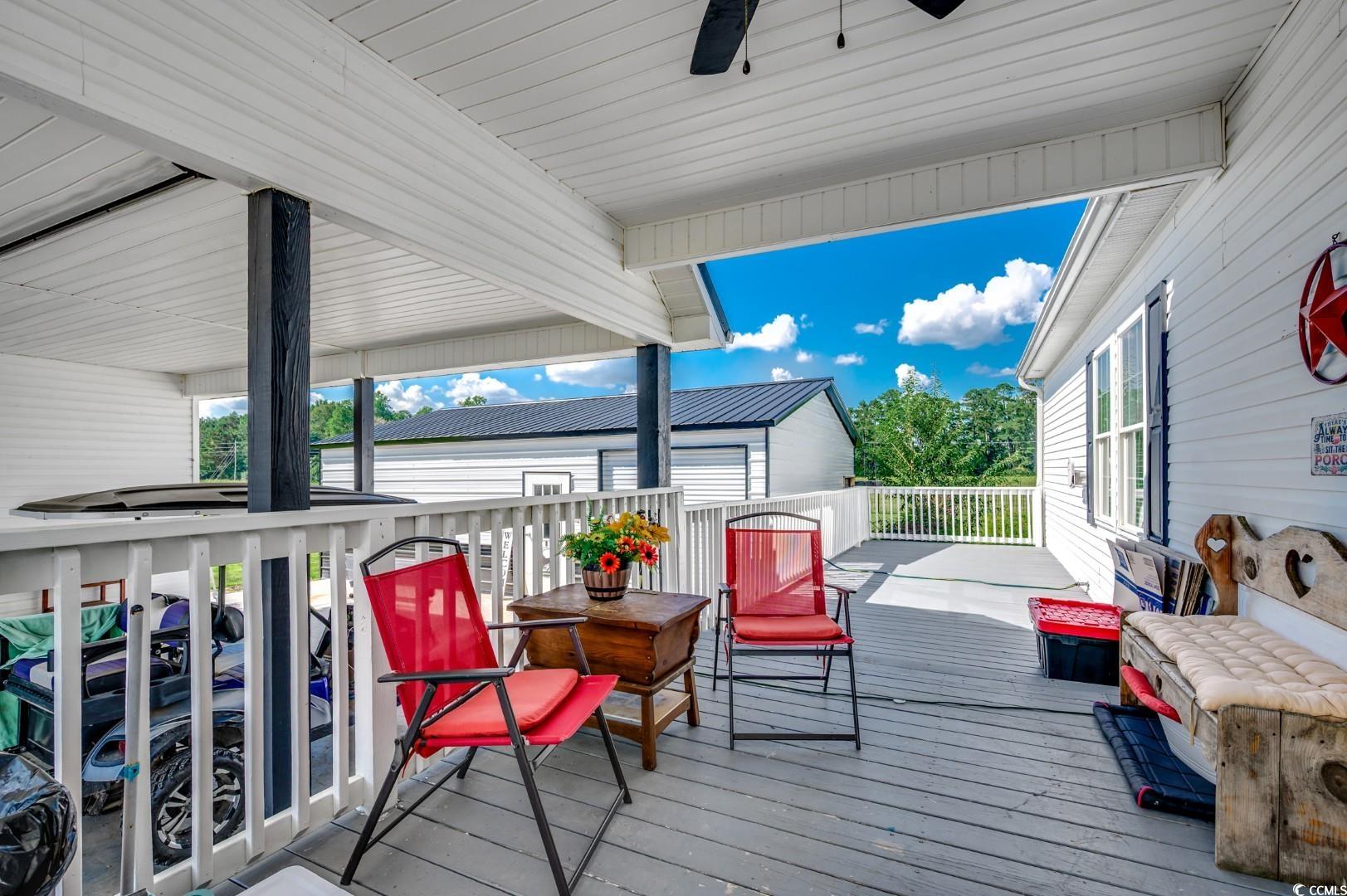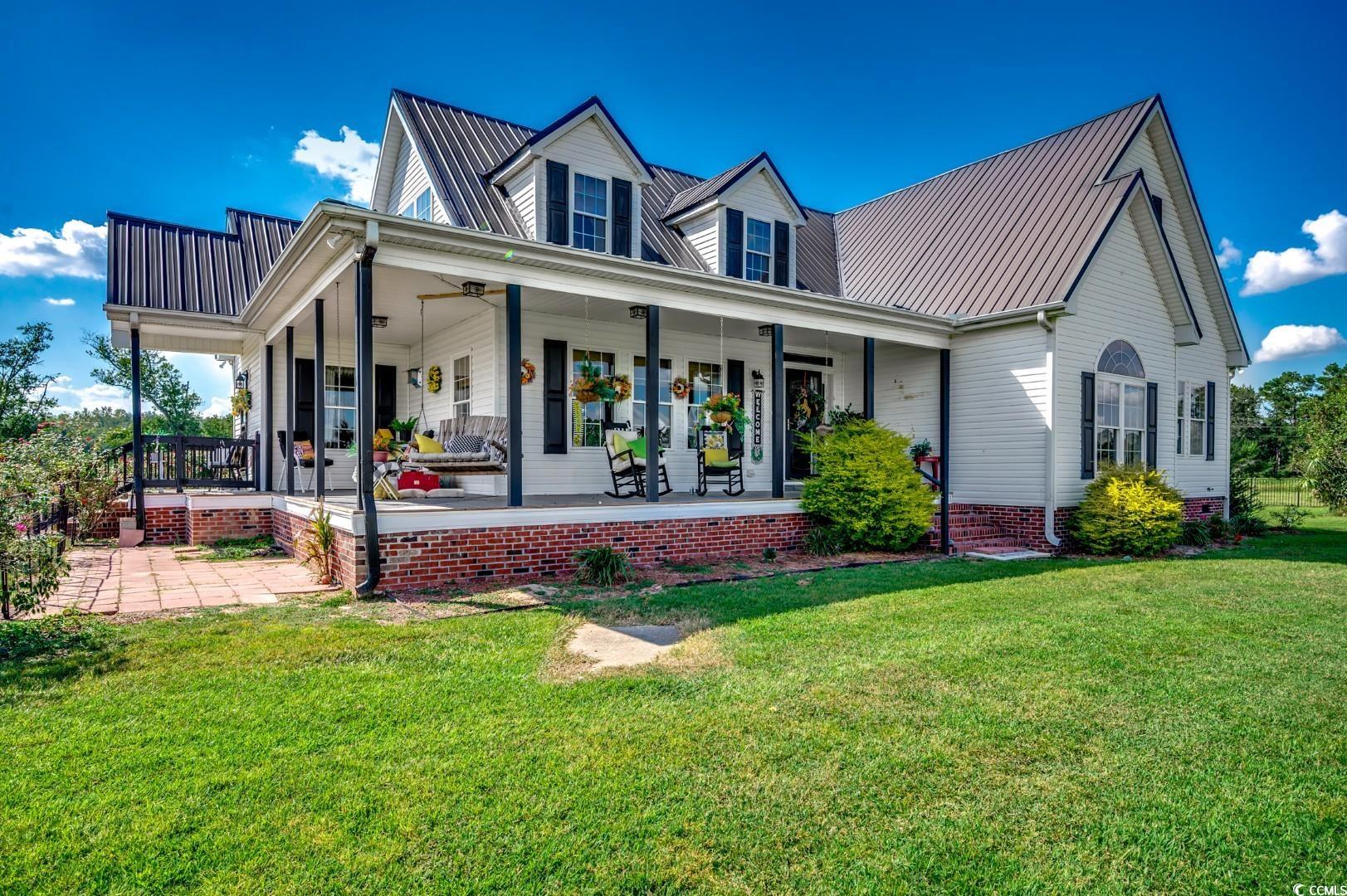 Welcome to your own slice of country paradise in Conway, South Carolina! This spacious 5 bedroom, 3.5 bath home sits on 4.77 fenced-in yard with a pond, offering the perfect blend of rustic charm, comfort, and endless possibilities. Step inside and be greeted by an abundance of natural light pouring through oversized windows, highlighting the generous living spaces. The main living room features a cozy fireplace, creating a warm and inviting atmosphere for gatherings. With a large bonus room and extra-spacious bedrooms, there's room for everyone to spread out and enjoy. Outside, the charm continues with a metal roof, wraparound porches, and a sprawling 10x40 rear deck, perfect for soaking in the peaceful country views. A large rear carport with storage area and multiple detached buildings provide plenty of space for hobbies, equipment, or even a workshop. Surrounded by wide-open spaces and mature trees, this property is ideal for those seeking tranquility without sacrificing convenience. With NO HOA and no deed restrictions, you have the freedom to make this property truly your own, bring your animals, create a garden, or simply enjoy the land. This home is where country living meets rustic charm, offering both comfort and opportunity. Don't miss your chance to experience