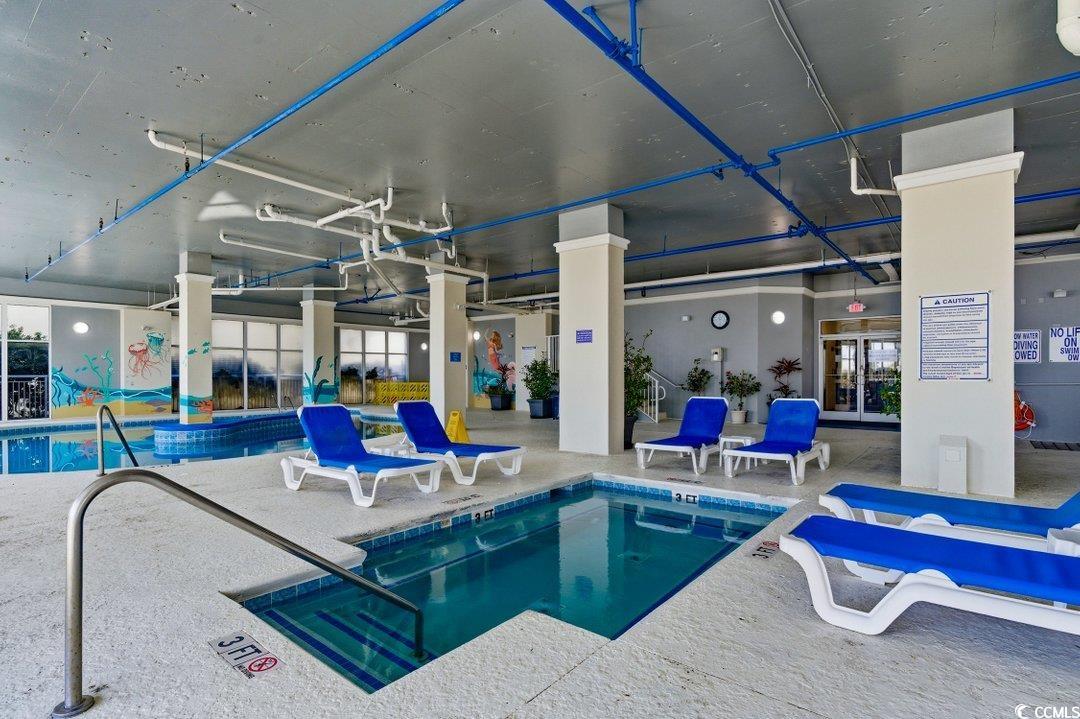 Huge direct oceanfront 5-bedroom, 4-bath condominium at Ocean Blue. This is a rare opportunity—the first 5BR to come on the market in over a year. Ocean Blue is a luxury building with only 36 total residences. Enjoy spectacular ocean views from the large oceanfront balcony. The living room and primary bedroom are direct oceanfront, with additional ocean-view side windows in the living room and two guest bedrooms and an extra balcony off the back bedroom. The condo is beautifully furnished and fully accessorized. The kitchen and all bathrooms feature granite countertops. The primary bathroom includes a double vanity, walk-in shower, and garden tub. Significant upgrades have been completed in recent years. The condo is so large that it requires two HVAC systems. In 2023, a new main HVAC system was installed, including resealed copper lines and ductwork, with electrical and plumbing reinstalled. Also in 2023, a new compressor was installed in the rear HVAC system. Additional recent improvements include luxury vinyl plank flooring throughout all living areas and bedrooms, new furniture in the living room and den/media room, new curtains, a new mattress in the primary bedroom, brand-new sofas and chairs in the living room, and a new washer and dryer and microwave. This property is well-suited as a primary residence, second home, or vacation rental. Ocean Blue amenities include climate-controlled enclosed corridors and an assigned parking space for each unit—an uncommon feature for oceanfront buildings. Owners and guests can also enjoy an outdoor pool and grilling area, along with year-round indoor amenities, including a lazy river, indoor pool, hot tubs, and an exercise room. The south-end location is close to Market Common restaurants and shops, Myrtle Beach International Airport, Coastal Grand Mall, Downwind Sails, and the Myrtle Beach Boardwalk, and is just a few miles from Broadway at the Beach. The HOA fee includes water and sewer, unit electricity, cable, internet, and building insurance. All information and square footages are deemed correct but should be verified by the buyer and the buyer’s agent.