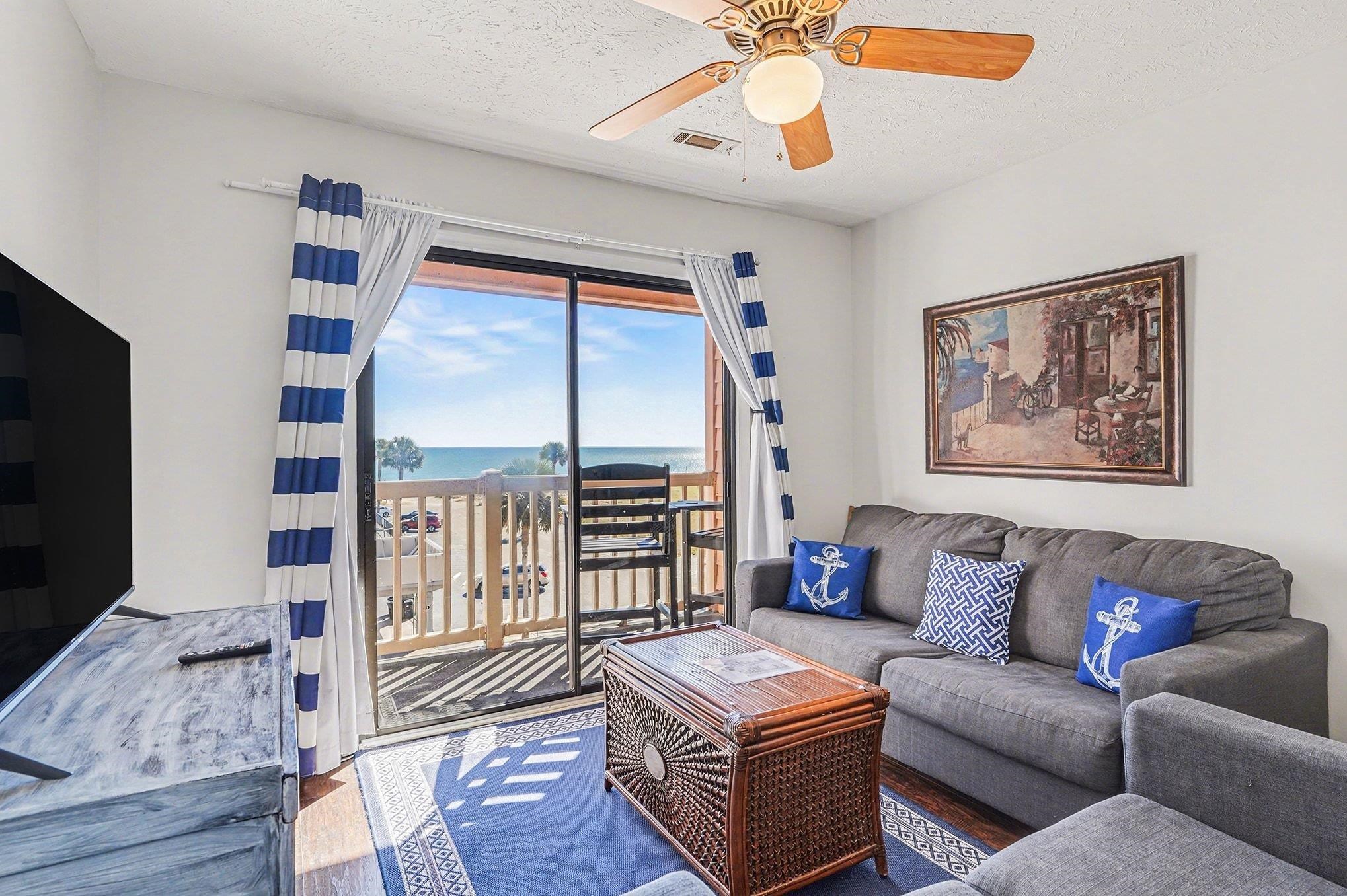 Charming 1-bedroom, 1.5-bathroom fully furnished condo in La Mirage. This turnkey unit is located in an ELEVATOR BUILDING featuring amazing direct ocean views from its large private balcony, updated flooring, newer dishwasher, updated vanity in the main bathroom, ceiling fans throughout, secondary bed for additional sleeping space, new roof (2024), new HVAC (2023) and washer/dryer. This is one of the best views you'll find from a second-row condo! La Mirage offers a wonderful private indoor pool, huge private raised veranda facing the ocean and Ocean Blvd., elevators and a private parking lot with a security system located behind the building. Convenient to Broadway at the Beach, Market Common, Airport, shopping, dining, championship golf, and the beautiful Atlantic Ocean. Perfect as a permanent residence, vacation getaway or investment opportunity!!!