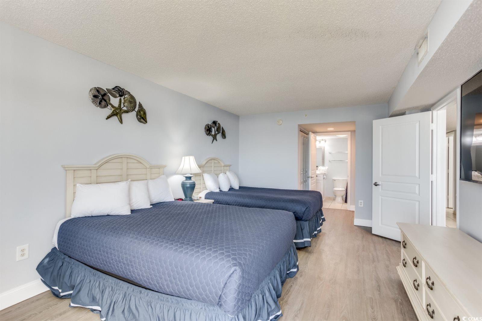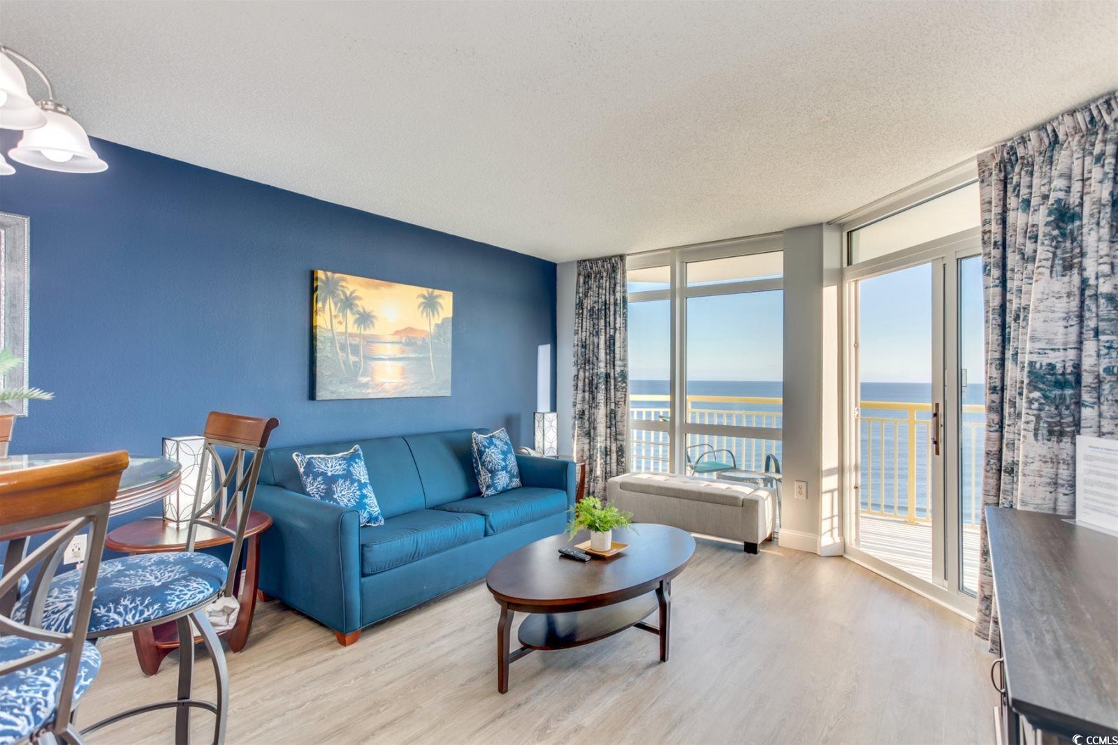 Experience the ultimate coastal lifestyle in this updated 14th-floor oceanfront condo, where you can witness breathtaking sunrises from the primary suite, living area, or private balcony, and spectacular sunsets from the common terrace. This well appointed 2 bedroom, 2 bathroom retreat features a spacious layout that sleeps 10, offering panoramic views of the stunning coastline. For prospective homebuyers, this unit is available for weekly summer rentals, providing an opportunity to experience oceanfront living firsthand before making a purchase commitment. The cost of your stay could even be credited back at closing, with a full offer to purchase. Located within the Baywatch Resort, owners enjoy premium amenities including lazy rivers, multiple pools, Jacuzzis, on-site dining, and a tiki bar. Monthly HOA fees conveniently cover all utilities, cable, and internet. Owner is a licensed SC Realtor.