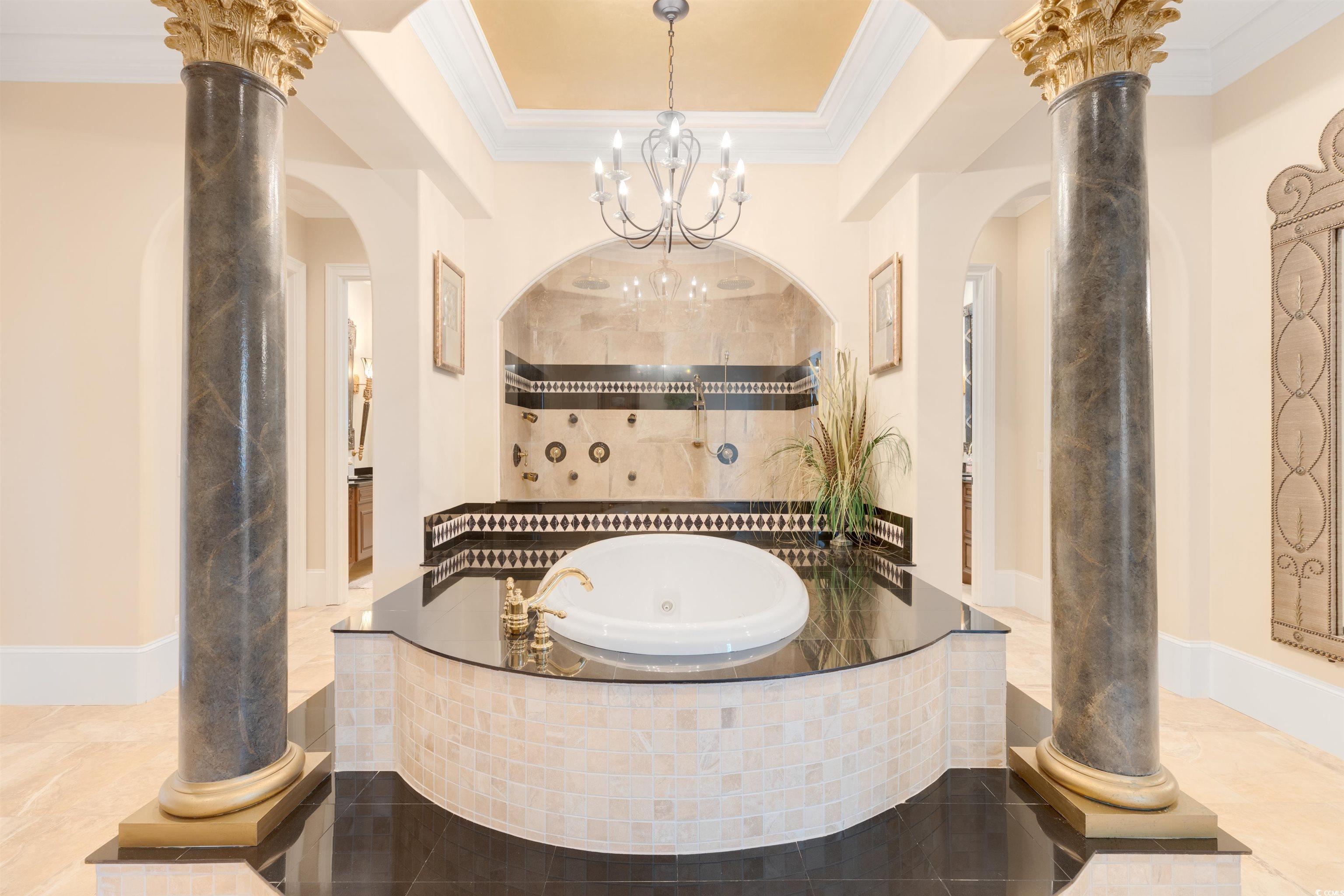Amazing "One of a Kind" Beautiful Waterway home with tons of unique features and spaces. As you walk into the home through massive iron and glass doors you are greeted by a spectacular custom spiral staircase, but have the option of a elevator to reach the second floor. The oversized family room has a panoramic view of the waterway that includes 30 foot ceilings and a fireplace. The chefs kitchen has commercial grade appliances, wine cellar, and butlers pantry. Not just one but two dining spaces with an oversized bar area. Very spacious Master bedroom has a view of the waterway, His and Her closets, marble Garden Jacuzzi Tub, double doored marble 10 x 8 shower and separate vanity areas. The home has 5 additional bedrooms, 5 full baths and 3 half baths. Seperate entrance to a Mother In Law Suite with a kitchen, full bath, and living area. Library has custom shelving and a fireplace with a coffered ceiling. Media room is 32 x 11 with a wet bar. Private 40" Trex Dock with a floating dock, a 20,000 lb boat lift and a 16,000 lb boat lift. Home sits on a lavished landscaped yard with custom paver driveway centered around a fountain. Oversized 2 car garage. On 130 ft of Waterway frontage. This home is a must see to really appreciate the luxury details and all the quality construction throughout.