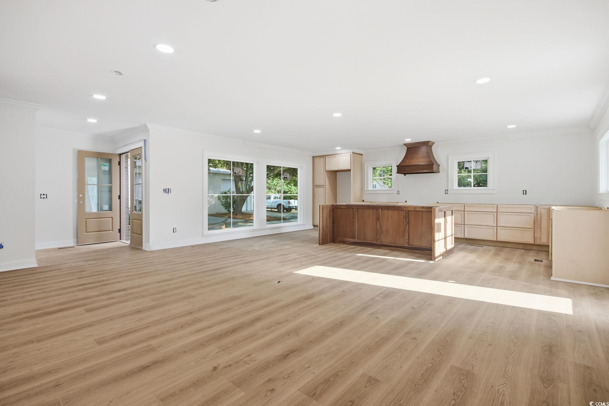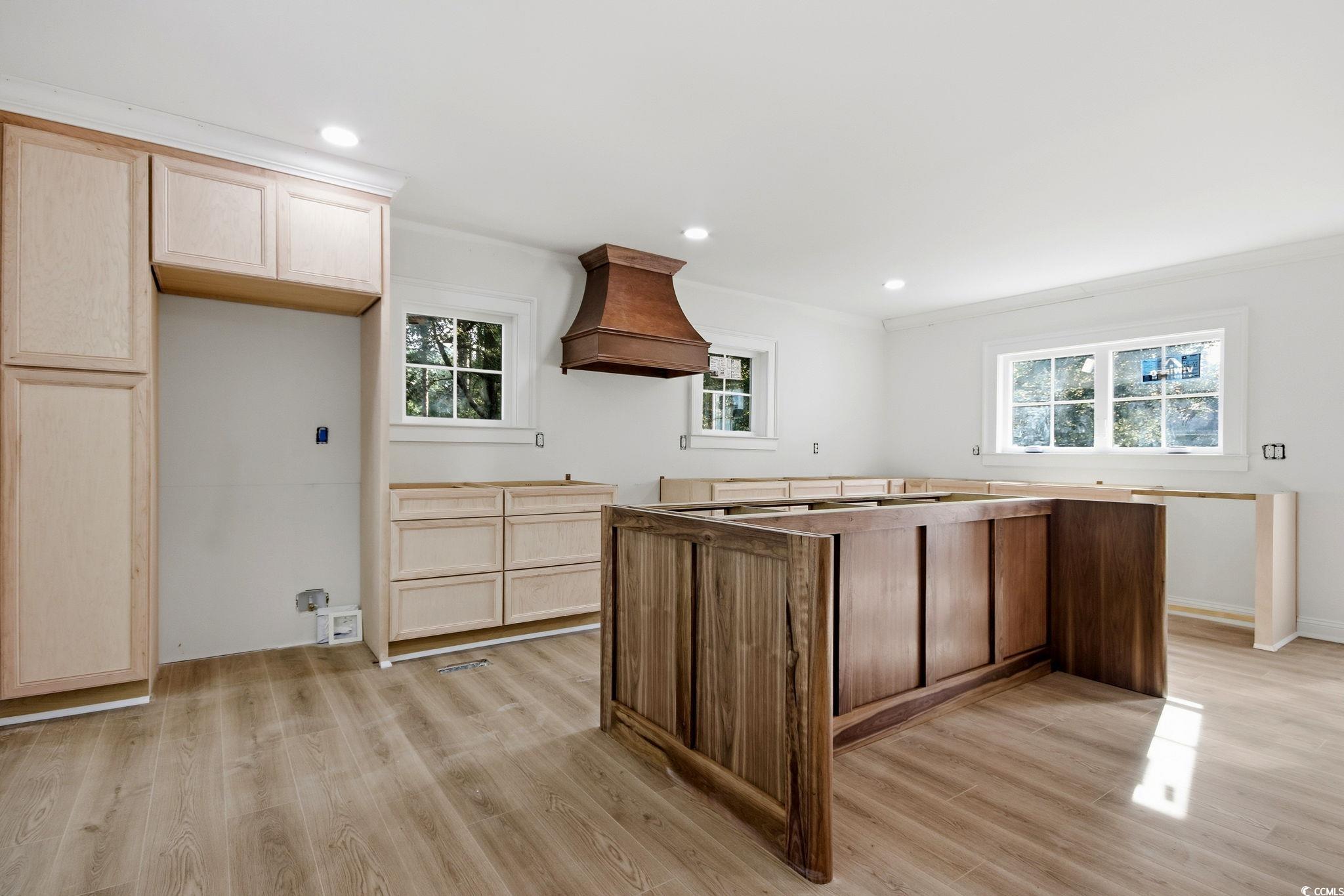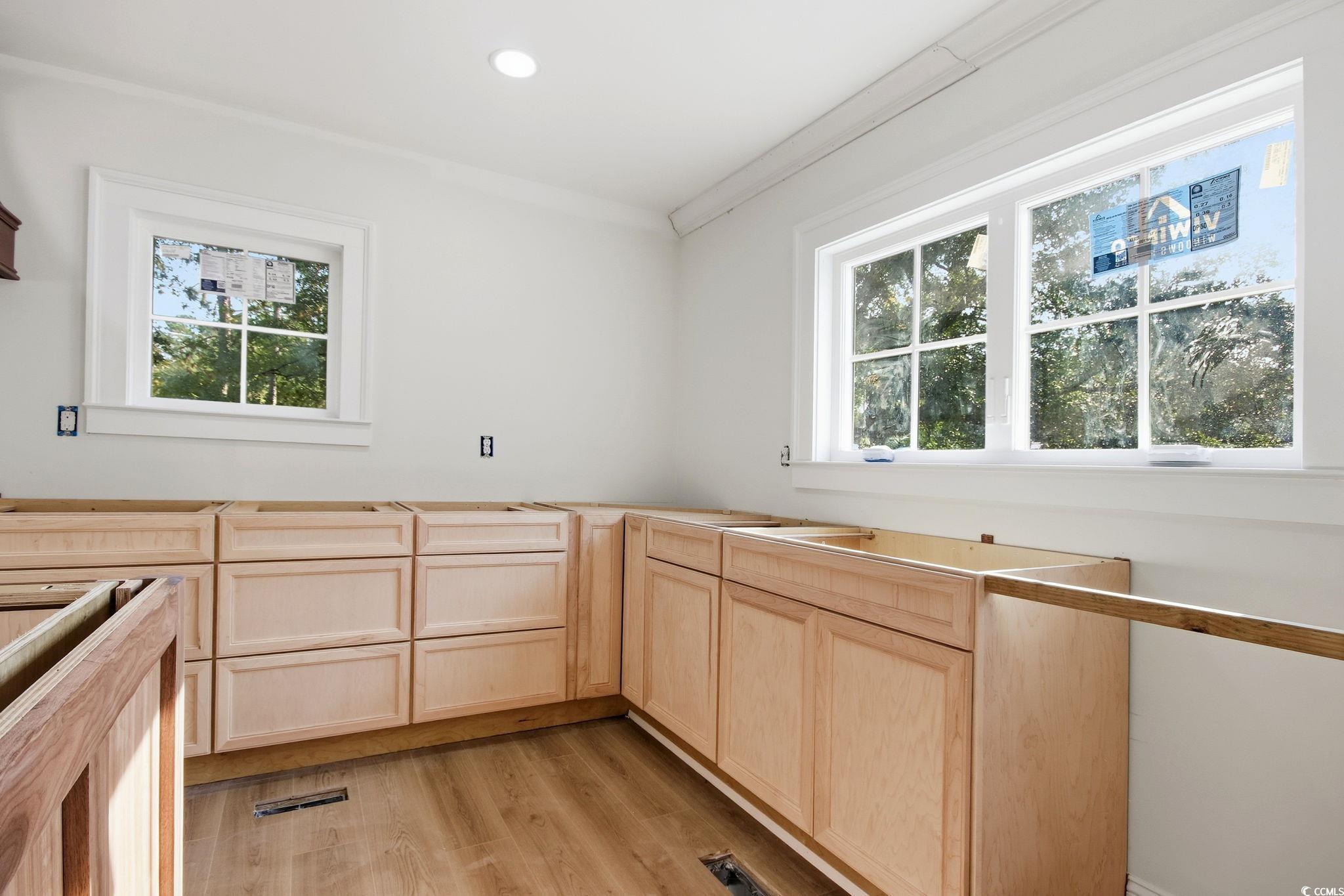 Welcome to 272 Old Ashley Loop, a completely remodeled and thoughtfully updated home in the desirable Hagley Estates community of Pawleys Island. This 3-bedroom, 2.5-bath residence has undergone an extensive renovation, featuring a new galvanized metal roof, all new windows and doors, new flooring throughout, updated foundation, new insulation, and more. All bedrooms and bathrooms are located on one level, including a private primary suite on one end of the home. The primary suite features double sinks, his-and-hers closets, and a custom-tiled walk-in shower with a built-in bench and dual shower heads. The two additional bedrooms share a beautifully updated Jack-and-Jill bathroom with custom tilework. The home also offers a spacious mudroom and laundry room, a welcoming family room with a fireplace, and a stunning custom kitchen with walnut cabinetry and a large center island. Set on over an acre of beautifully landscaped grounds, this uniquely designed all-brick home offers exceptional privacy and charm. The expansive double lot, graced with mature live oaks, overlooks the 1st hole of the Founders Club Golf Course, providing a peaceful and picturesque backdrop. The bright, open kitchen and dining area is filled with natural light, creating an ideal space for everyday living and entertaining. Just off the kitchen, a convenient grilling porch extends your living area outdoors. A second family room with custom built-ins and a cozy wood-burning fireplace offers another inviting spot to relax or gather with friends and family. For hobbyists, boaters, or those needing significant storage, the property includes a 1,280 sq. ft. metal workshop (32' deep x 40' wide) with 12' x 10' roll-up doors, offering endless possibilities. Located in the sought-after Hagley Estates—with no HOA—this home is just one mile from the Hagley Boat Landing on the Waccamaw River and just over two miles from the pristine beaches of Pawleys Island. This property blends Lowcountry charm, modern upgrades, and exceptional outdoor space, making it truly one of a kind. *This listings photos will be updated as renovations are completed.