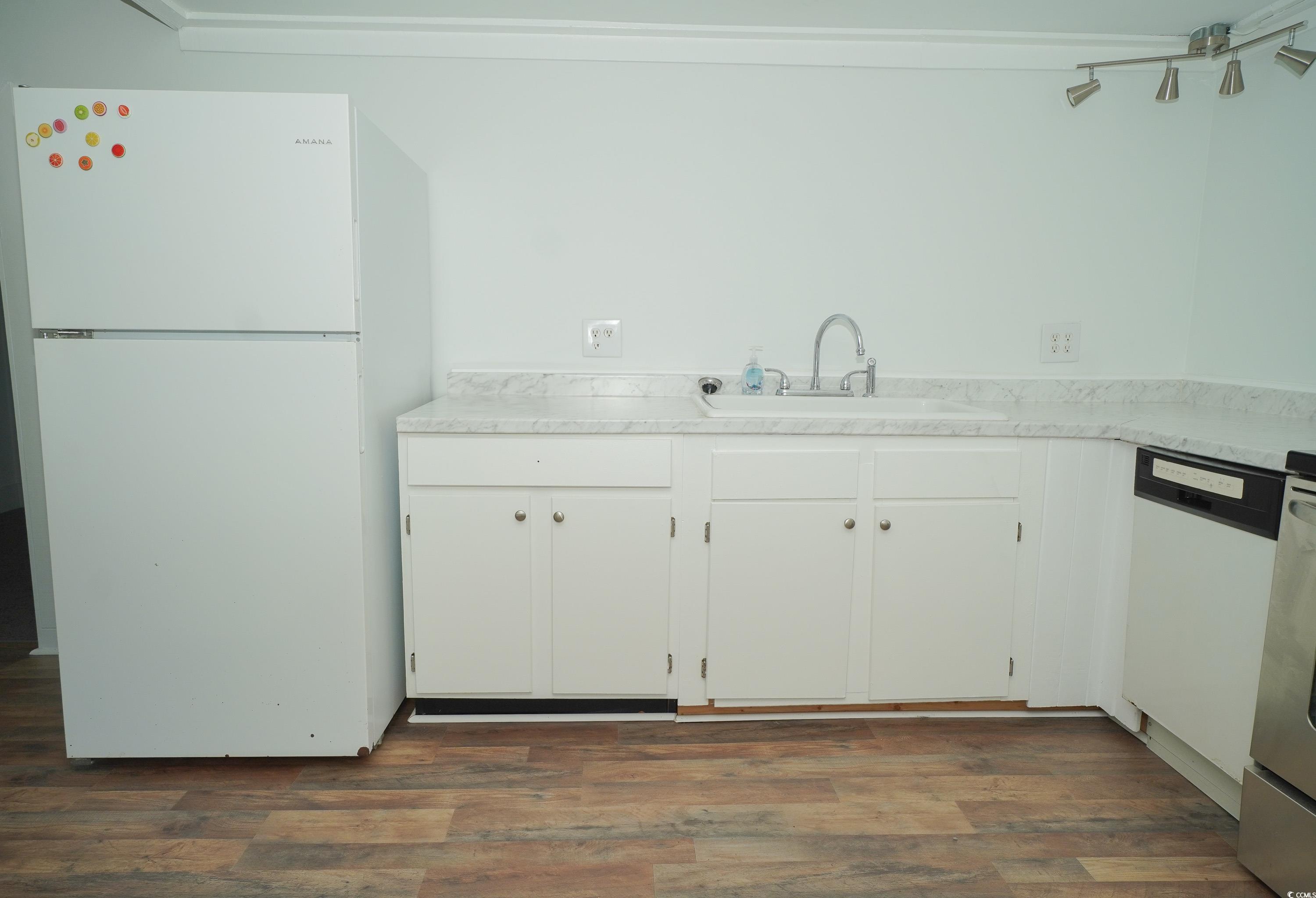 Welcome to your serene escape that is priced to sell, in the heart of Crystal Lake! This excellent starter home or vacation retreat offers a perfect blend of comfort and tranquility. Step inside to discover an inviting open floor plan that seamlessly connects the main living area that was completely rewired, to the remodeled kitchen, complete with a mobile island, making it ideal for gatherings and everyday living. Updated with an entire new subfloor, new luxury vinyl plank flooring, fresh paint, and plush new carpeting. The spacious main bedroom features an updated ensuite bath complete with a generous walk-in shower, new vanity and newly tiled for a touch of elegance. After enjoying a leisurely stroll around the picturesque lake, unwind on your newly reinforced deck—perfect for entertaining friends or savoring quiet evenings under the stars. Step out the back onto the new steps to the fenced-in backyard which offers privacy, and a convenient shed provides additional storage space. Located just a golf cart ride away from the beach and the vibrant Market Common, this home is perfectly situated in one of the Grand Strand's most desirable areas. Don't miss your chance to experience peaceful living in this must-see property! Schedule your tour today and make this tranquil retreat your own!