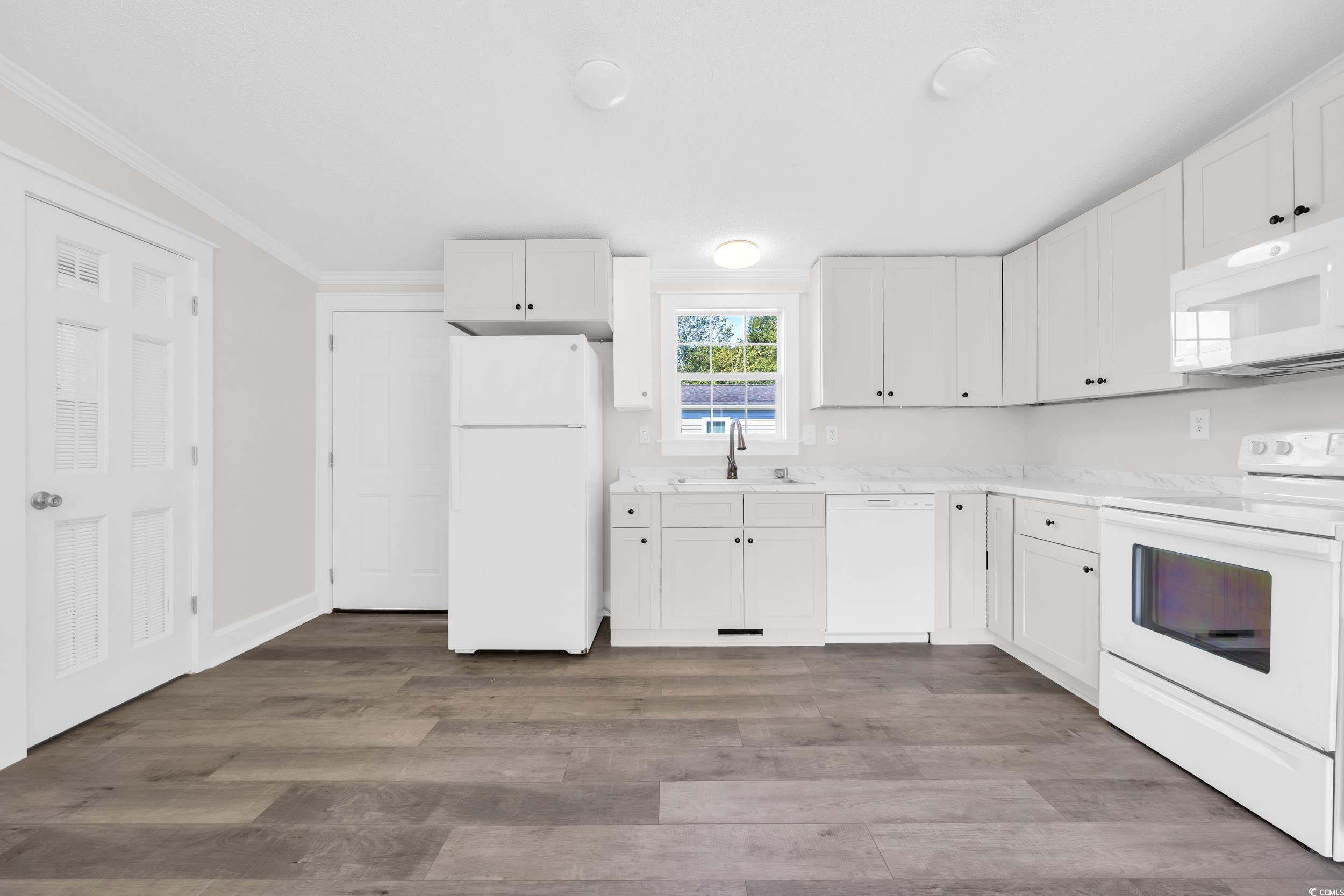 Welcome to 274 Saint Christopher Circle, a fully renovated 3-bedroom, 2-bathroom mobile home that combines modern style with beachside charm. This beautifully updated home features brand-new luxury vinyl plank flooring, a fresh coat of paint inside and out, and a completely remodeled kitchen with contemporary cabinetry, sleek countertops, and updated appliances. Both bathrooms have been stylishly redone with new vanities, fixtures, and modern finishes. The open-concept living space is flooded with natural light, creating a warm and inviting atmosphere. The spacious primary suite offers a private ensuite bath and generous closet space. Located just 2 miles from Pawleys Island Beach—an easy ride on a golf cart—you can enjoy coastal living without the high price tag. Whether you're a first-time buyer, downsizing, or looking for an investment property, this turnkey home is a perfect choice just minutes from shops, restaurants, and the ocean.