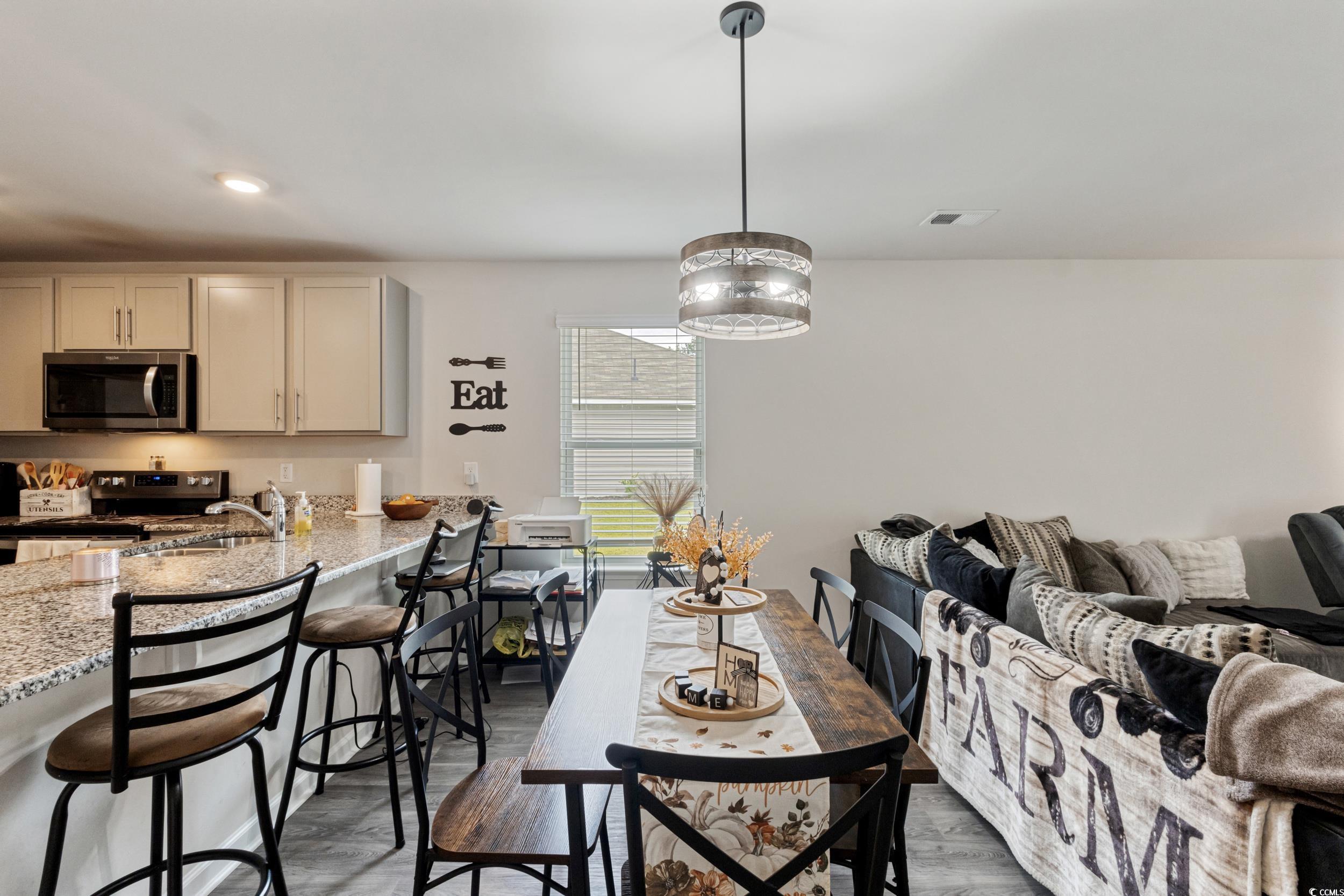 Step into this 4 bedroom, 2 bathroom home in Aynor, SC. This home features an open floor plan, dining area, vinyl flooring in your main living areas and carpeted bedrooms. The kitchen includes granite countertops and stainless steel appliances, and is offered partially furnished. This home sits on a tree lined lot with the option to add a 6 foot privacy fence. Enjoy the community pool, clubhouse with fitness area, and outdoor gathering area. Just a quick golf cart ride to downtown Aynor and local shopping, and located in the award winning Aynor School District. Country living meets city convenience in this desirable neighborhood of Jordanville Farms!