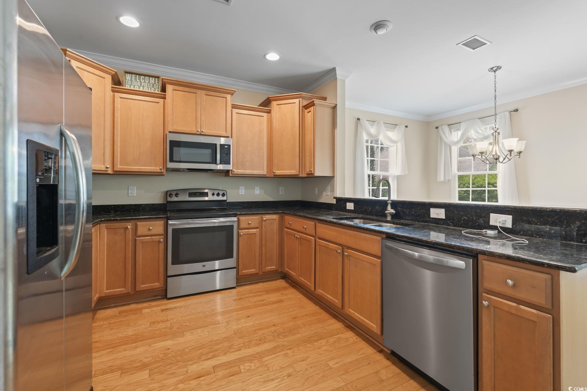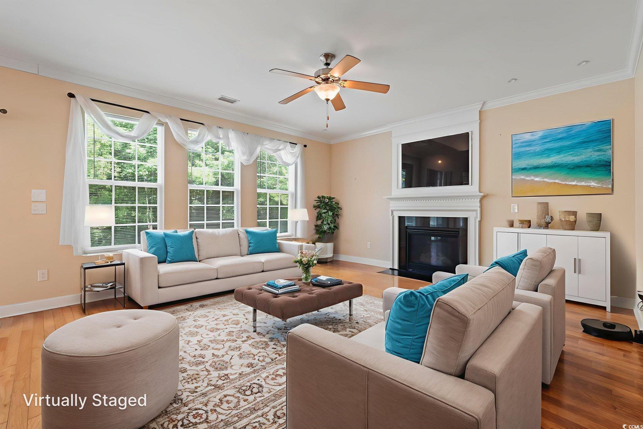 Check out this spacious two-story home in Carolina Crossing! It’s got 4 bedrooms, 2.5 baths, plus a den, and a layout that really works. The main level has hardwood floors throughout, a fireplace, and a screened porch perfect for relaxing. The kitchen’s loaded with granite countertops and stainless steel appliances, and the bathrooms have tile floors. The owner’s suite is a standout with a dual vanity, garden tub, and a separate shower. You’ve also got high-efficiency HVAC to keep things comfortable and energy efficient. Home back on market no fault of sellers. Carolina Crossing is known for its low HOA dues—and they cover a lot: lawn care, irrigation, trash pickup, and access to the community pool. Location’s a win too: you're just minutes from Highway 31, making it easy to get anywhere around the Grand Strand, and only 12 minutes to Cherry Grove Beach. Quiet, peaceful setting but close to everything.
