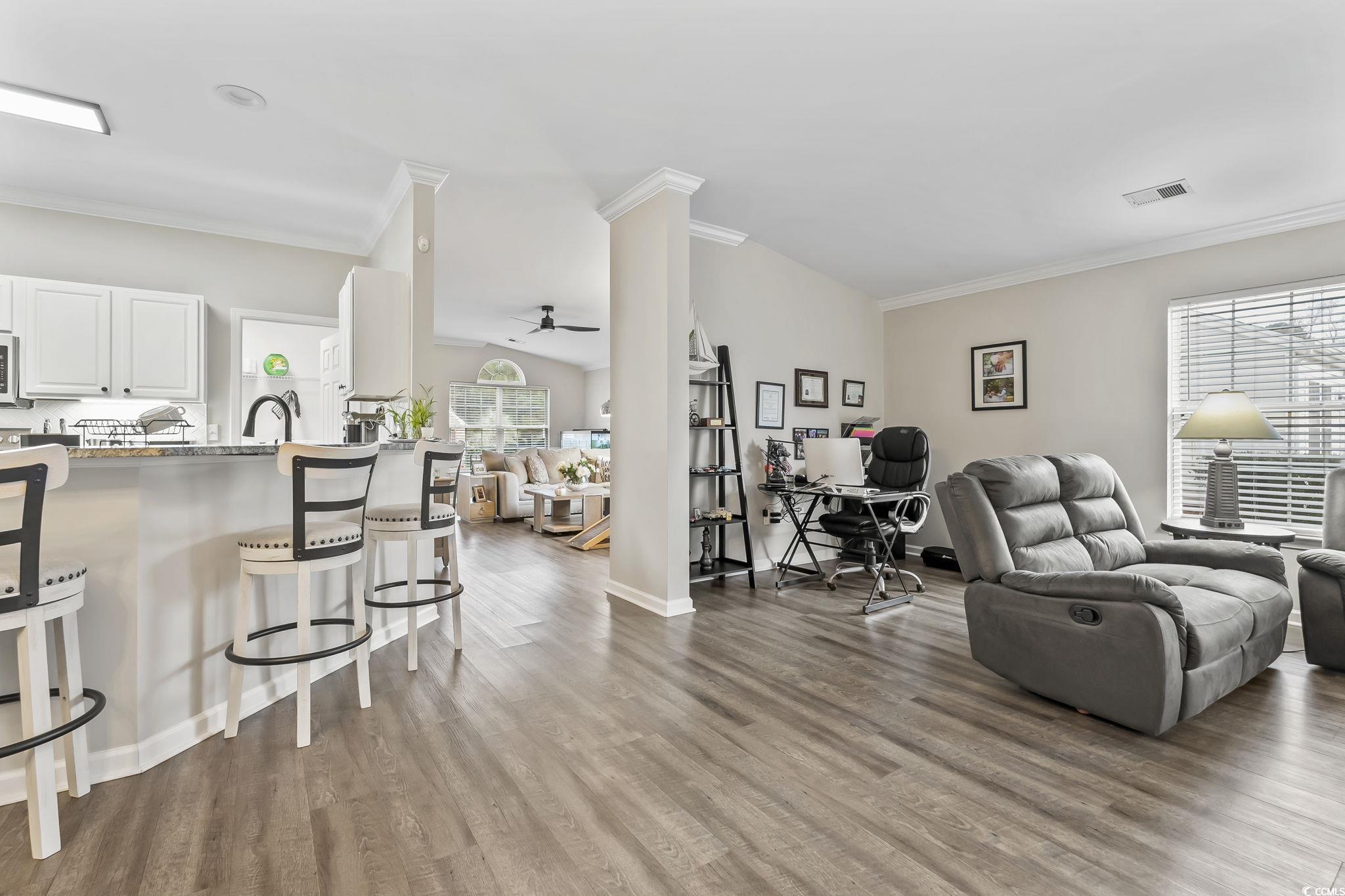 Prime Location !!! This 4 bedroom 3 full bath modern home sits center of the well sought out neighborhood The Farm in Carolina Forest . In just minutes with easy access off both International drive and Carolina Forest Blvd you have fast and easy access to the Ocean , Award winning schools, fine Dining , local Pubs , a public Library , Grocery stores , the Hulk nature trails , and prestige Golf courses !! The neighborhood is a dream boasting an 8000 sq foot beautifully designed community Pool, Fitness Center, Clubhouse, Playground, & Basketball Court. Entertaining is a breeze with double living areas , an open concept kitchen and an extended driveway for guest or large family parking .This home has been updated with stainless steel appliances, new counter tops, tile backsplash, lighting, ceiling fans and LVP flooring. The master is on the main level and includes a walk in closet and en suite complete with double vanity, garden tub and shower. The 4th bedroom upstairs could easily serve as a game room, man cave or guest room and is complete with an en suite . This home has all the costly out of pocket move in expenses PAID FOR including beautiful mature landscaping , additional concrete surrounding the home , epoxied garage , and a fence installed. Call your agent right away to book a private showing !!!