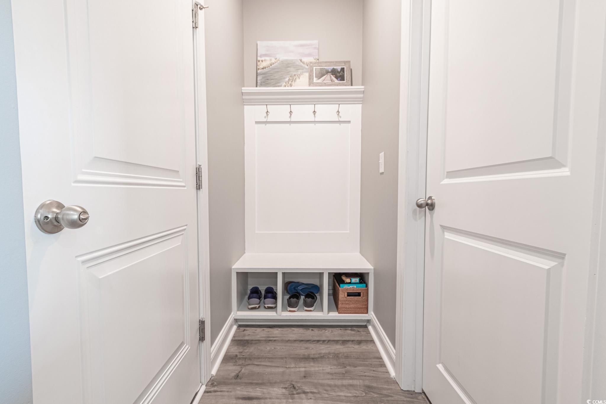 Experience refined living in this expansive two-story residence designed with both elegance and everyday comfort in mind. The thoughtfully planned main level offers a private first-floor owner’s suite and laundry, creating effortless single-level living while still providing abundant space for family and guests. A distinguished stone-accented façade, charming, covered porch, and grand 8-foot glass entry door set a sophisticated tone from the moment you arrive. Inside, the home opens to a grand, light-filled layout highlighted by a sophisticated kitchen featuring quartz countertops, oversized island seating, walk-in pantry, 36" cabinetry, and premium stainless gas appliances. Designer wide-plank flooring flows through the main living spaces, complemented by sleek tile finishes in the baths. The dining area seamlessly transitions to a screened outdoor living space, perfect for entertaining or unwinding. The upper level offers three spacious bedrooms and a large loft, providing flexibility for a media room, executive office, or additional gathering space. Smart Home technology enhances comfort, security, and efficiency. Set within Summit at Meridian, a premier master-planned community, this property enjoys an exceptional location just minutes from The Market Common—one of Myrtle Beach’s most coveted destinations for upscale dining, boutique shopping, entertainment, and outdoor recreation. Residents will enjoy future amenities designed to rival a private club experience, including an air-conditioned indoor pickleball court, resort-style pool, hot tub, fire pit, and scenic walking and biking trails. A rare opportunity to own a generously sized, luxury-inspired home in a premier Market Common-area community.
