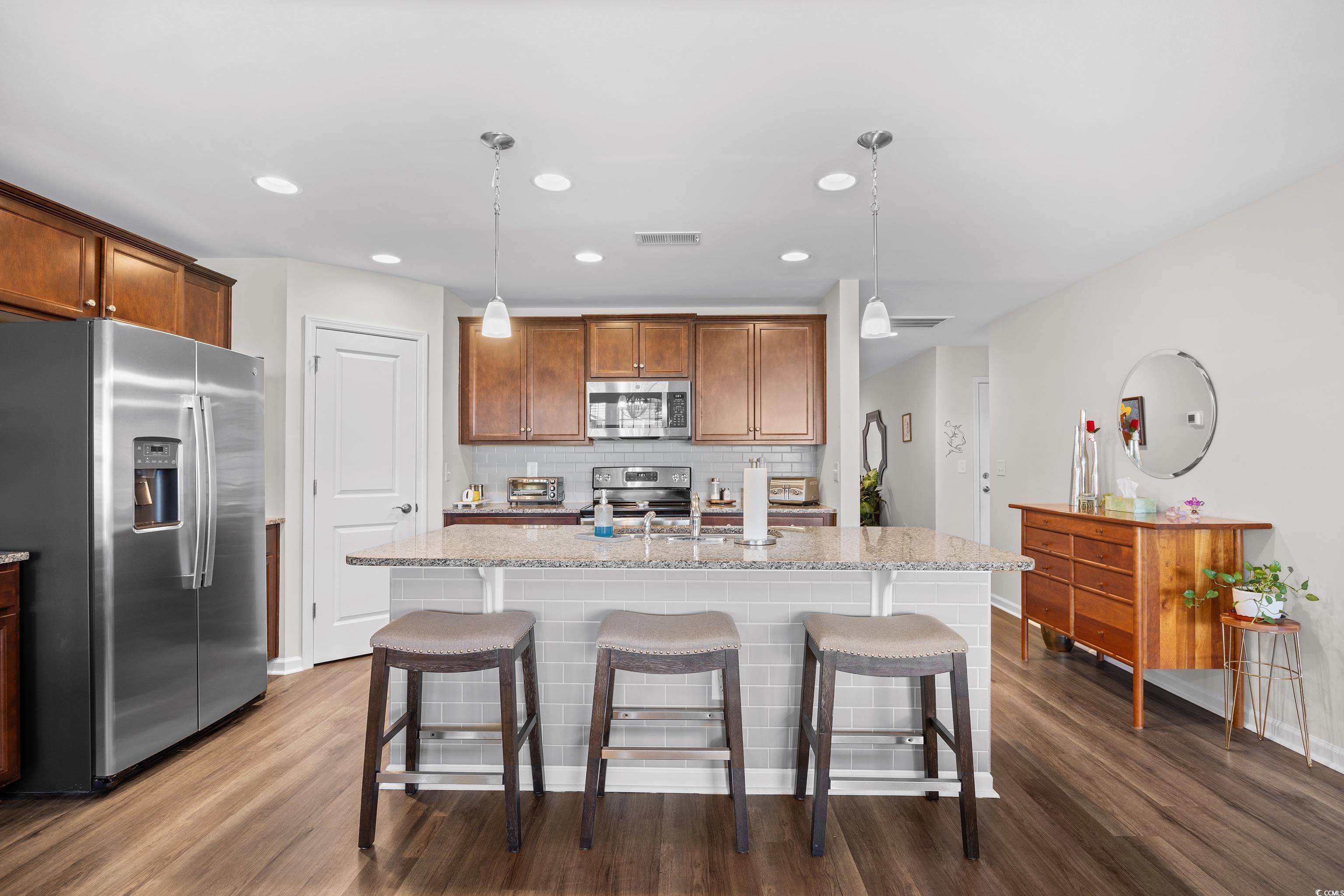 Welcome to this beautifully maintained four-bedroom, two-bath 3 year young home featuring a spacious and bright, open floor plan. The kitchen is a chef’s delight with a large center island, granite countertops, and stainless steel appliances, perfect for entertaining and everyday living. A natural gas community, this home features a tankless hot water heater and fully insulated garage. Enjoy serene views from the backyard, as the property sits right on a peaceful pond. Spend time relaxing at the community pool. Ideally located, this home is just minutes from shopping, dining, and the beach, offering both comfort and convenience.