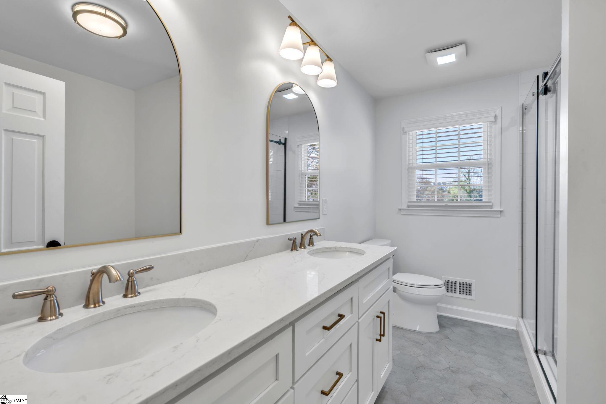 Beautifully updated in 2024, this 4-bedroom, 3-bath ranch in the sought-after E Parkins Mill neighborhood sits on a spacious half-acre lot and has the perfect blend of modern upgrades and classic charm. This stunning ranch features a circular driveway and attached two-car garage. The painted brick exterior, new windows, and updated lighting provide fresh curb appeal. Inside, the kitchen and living room ceilings have been raised to 10 feet, creating an open, airy feel. A wood burning fireplace creates a cozy comfortable space. The expanded kitchen features new cabinetry, quartz countertops, and all-new appliances. All bathrooms have been fully renovated. This home features a large recreation room with an added full bath and laundry room. New hardwoods run throughout the main living areas, with LVT in the rec room. Additional upgrades include custom closets, custom wood blinds, new HVAC and tankless water heater. Enjoy outdoor living on the screened-in back porch overlooking the large, private backyard. Conveniently located just 3.5 miles from downtown Greenville with easy access to I-85. Walking distance to Reedy Laurel Elementary School and close to J. L. Mann High School, St. Joseph’s Catholic School, and Christ Church Episcopal School. Move-in ready and thoughtfully upgraded throughout. Seller is a South Carolina Real Estate Licensee.