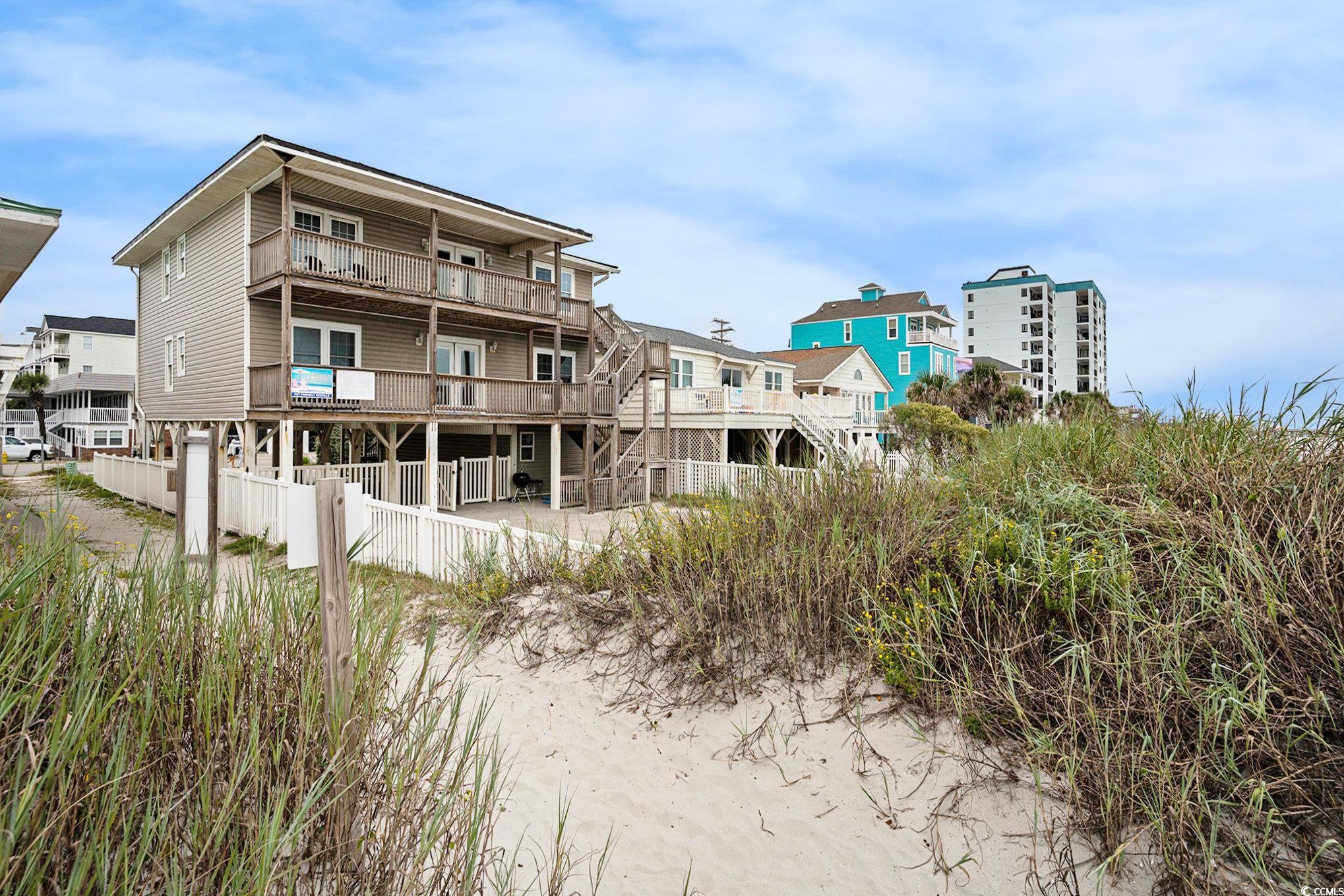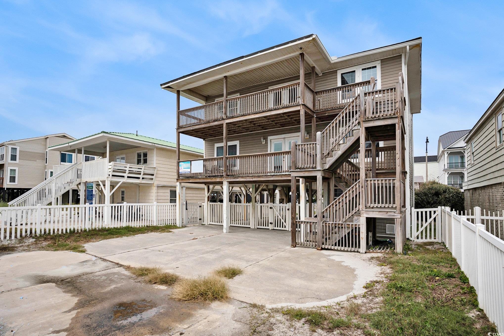 Welcome to your dream getaway! This stunning 6-bedroom, 4-bathroom oceanfront home is nestled in the highly desirable Cherry Grove section of North Myrtle Beach. Perfect an investment property, this unique abode boasts two separate living spaces, each with its own entrance, featuring 3 bedrooms and 2 bathrooms, a full kitchen, and a washer/dryer for your convenience. Maximize your rental income potential with dual living areas that mirror each other in layout and features. The kitchens are generously appointed with ample cabinet and countertop space, beautifully finished with granite countertops. These kitchens are perfect for preparing meals while on vacation, allowing you to enjoy home cooked meals while soaking in the beach atmosphere. Enjoy lovely wood floors throughout the kitchen and all three bedrooms. There is a large living and dining area ideal for entertaining friends and family, creating a welcoming space where memories are made. Each bedroom is spacious, offering plenty of space for furniture and personalization. The master bedroom, situated in its own wing, offers a private retreat featuring a en-suite bathroom complete with a walk-in shower. The guest bathroom conveniently includes a shower-tub combo. Step outside to your spacious deck, where breathtaking ocean views await. Each unit also includes its own charming front porch, perfect for savoring the coastal breeze. An additional heated ground-level area currently serves as storage and extra laundry space, adding to the home's practicality. Parking is a breeze with a large carport underneath the home, accommodating up to 6 vehicles comfortably. This oceanfront gem is not just a residence; it's a lifestyle. The home is also being sold fully furnished, making it an effortless transition for new owners. Whether you're looking for a forever home, a vacation spot, or an investment opportunity, this property is ideally situated near some of North Myrtle Beach's finest dining, shopping, golf, and entertainment options. Don't miss out on this incredible opportunity-schedule your showing today!