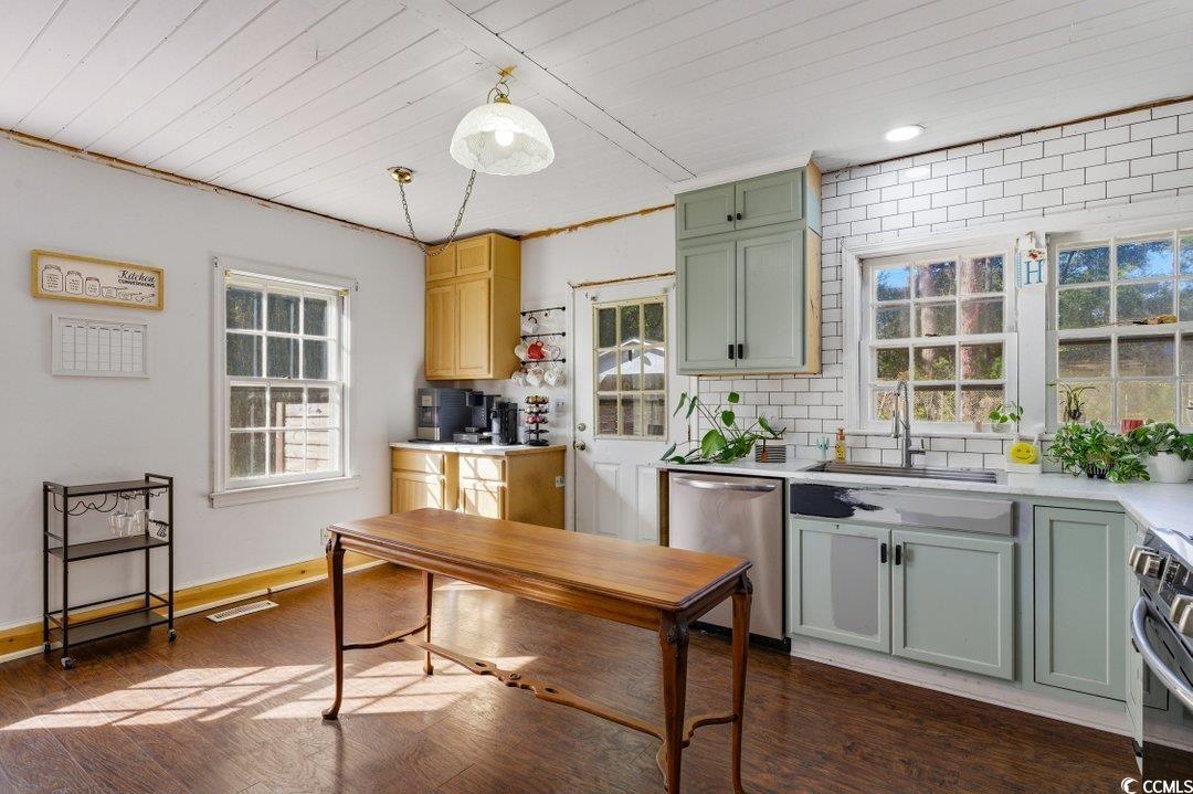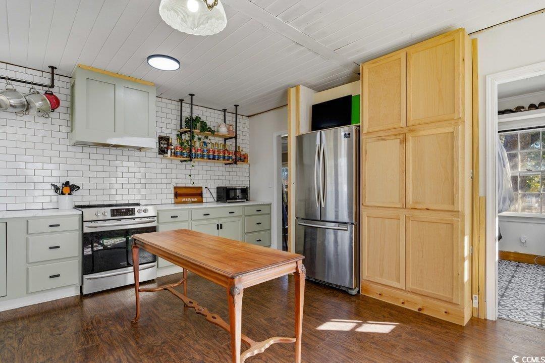 Don't miss this opportunity in the heart of the charming City of Conway with NO HOA! This cozy 3 bedroom home features a traditional architectural feel that resonates with Conway's rich historic fabric, giving you the best of both past charm and modern convenience. The spacious, light-filled living room is the perfect setting to entertain or unwind, boasting original hardwood flooring and a wood-burning fireplace to gather around. The kitchen has been updated with stainless steel appliances and counter-to-ceiling tiled backsplash, loaded with cabinetry and ready for finishing touches to make it your own. Set high and dry on a generous parcel with a massive backyard, the property allows for outdoor living, garden space, or potential expansion. Plenty of room to store your tools and toys in a one car carport with two storage rooms attached. Conveniently located less than 20 miles to the shores of Myrtle Beach or Surfside Beach, and easy access to all of the restaurants, shopping, and attractions that the Grand Strand has to offer. Schedule your private showing today!
