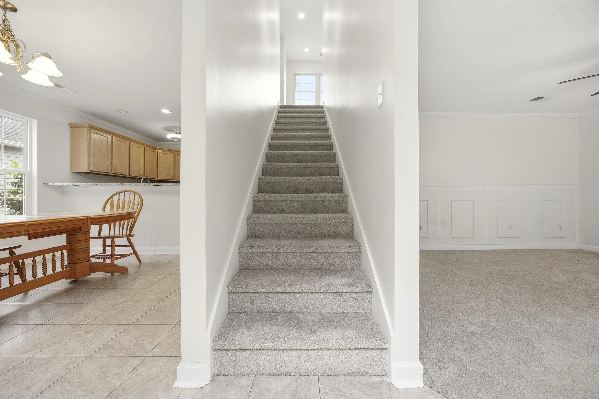 Welcome to this newly renovated home in the popular community of Stono Village at Hunters Ridge. Stepping inside, you will find the entire home has been freshly painted with Sherwin Williams Duration paint and new carpeting installed though out. For your peace of mind, a new roof and new HVAC system have also just been installed. On the first level, this home offers a generous dine in kitchen with new granite countertops, a nicely appointed living room and a convenient first floor powder room. At the top of the stairs, you will find a landing perfectly sized for a reading nook or an office. The main bedroom suite offers a walk in closet and access to a private bath, with both a standing shower and large soaking tub. There are also two additoonal bedrooms upstairs, sharing their own bathroom. Back downstairs, step out from the living room into the backyard, where you will find plenty of open, useable space. Don't forget to take in what really makes this outdoor space unique, and cross the footbridge and step into the rear portion of the property. Hidden in the privacy of the woods you will find a cleared area, complete with fire pit, picnic table and a structure that, with a little love, could be utilized for storage or gardening. Tucked in your quiet corner of the woods, you will also find access to multiple walking trails that were carved out just waiting to be explored. This home offers so much in terms of location and convenience, while still holding onto a little bit of unexpected privacy. Be sure to come see all it has to offer.