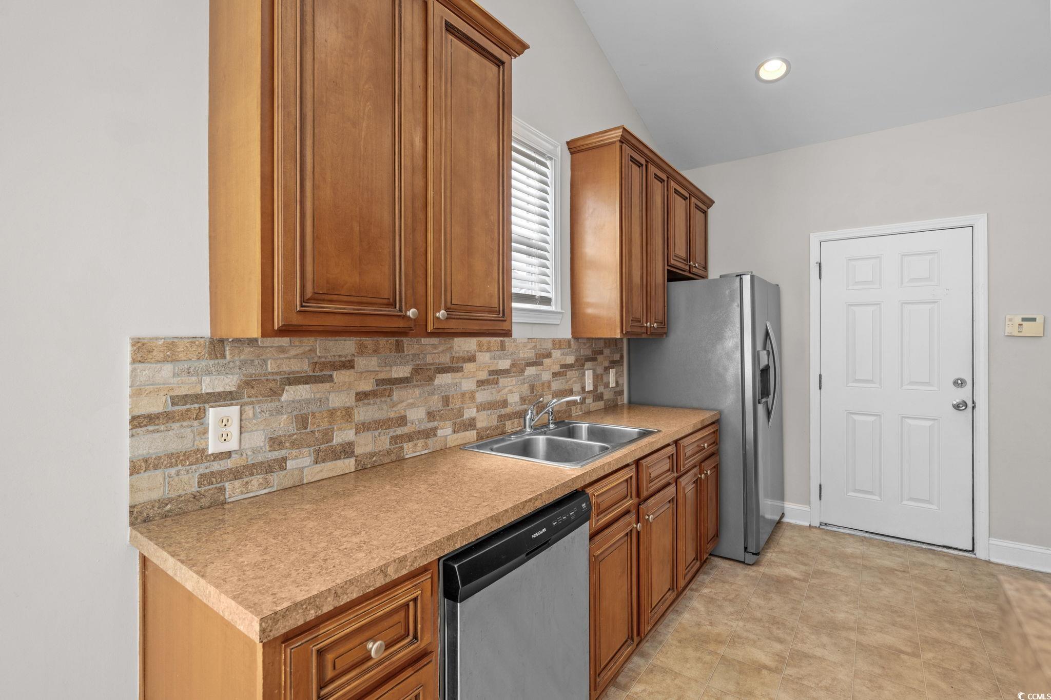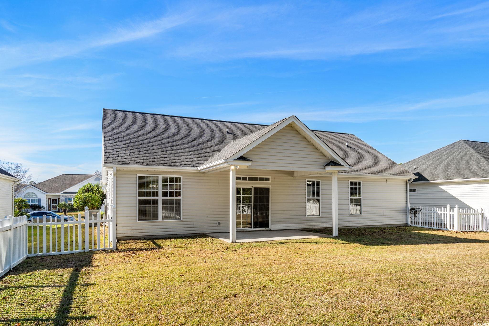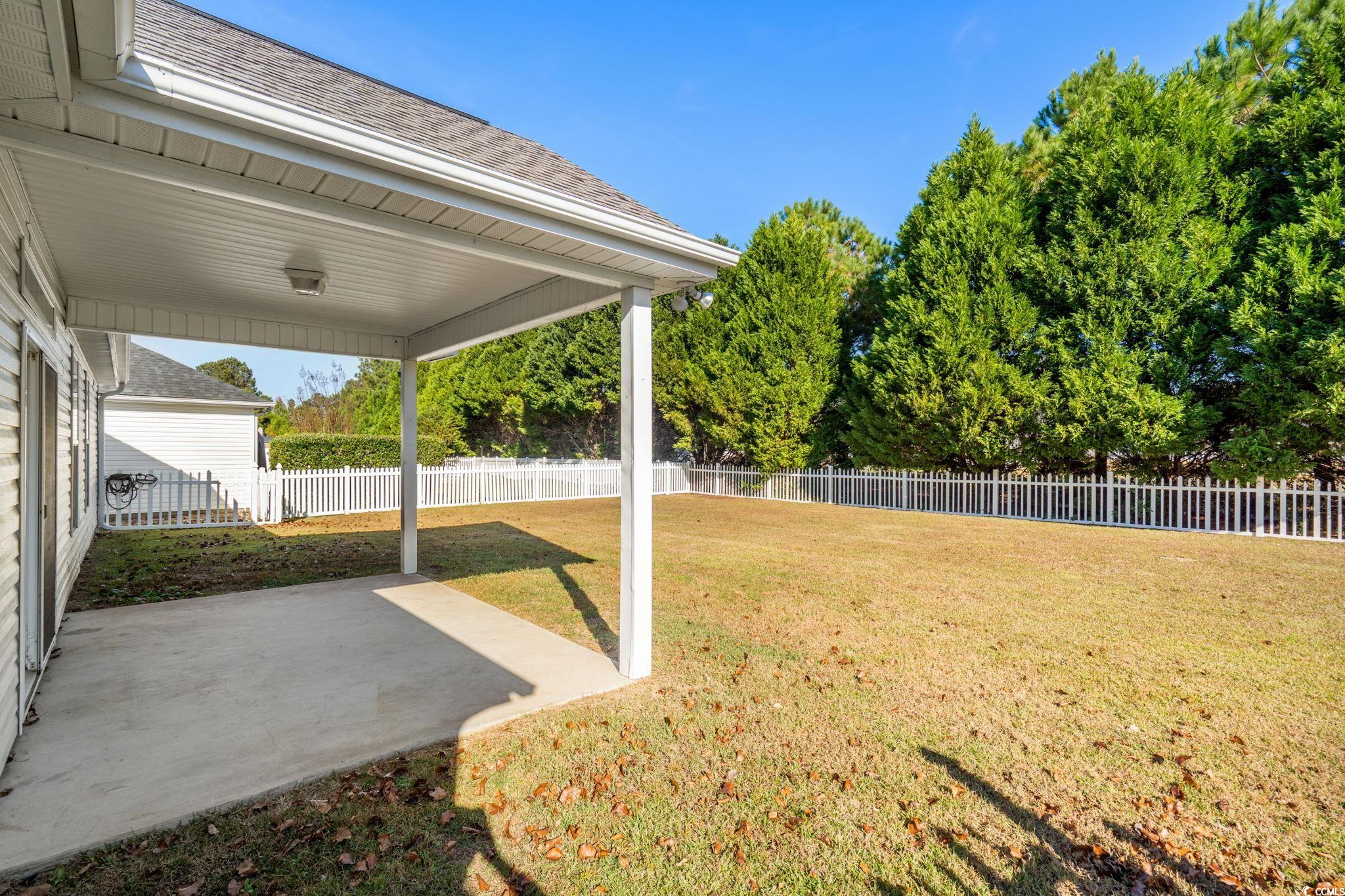 Priced to sell! Located in the quaint and welcoming community of River Country, this charming one-level home offers convenience, comfort, and an incredible backyard. Enjoy a large, fully fenced private yard that backs up to a peaceful wooded tree line perfect for relaxing, entertaining, or letting pets and/or children to play freely. A covered back patio creates the ideal spot for morning coffee or evening gatherings. Inside, you’ll find three bedrooms and two bathrooms, including a spacious primary suite featuring a generous walk-in closet and a private bathroom with double sinks, a soaking tub, and a walk-in shower. The open-concept living area offers vaulted ceilings that enhance the bright, airy feel, and the kitchen is beautifully appointed with modern countertops and an adjoining dining area—perfect for everyday living and entertaining.This home is all on one level=no stairs! Making it a great starter home or an excellent fit for anyone seeking easy living. The quiet neighborhood offers a low HOA fee that includes access to a community pool, clubhouse and on-site boat and RV storage—a rare perk! Conveniently located less than 20 minutes to Downtown Conway, less than 30 minutes to the beach and positioned just minutes to Hwys 90 and 22 for effortless commuting.