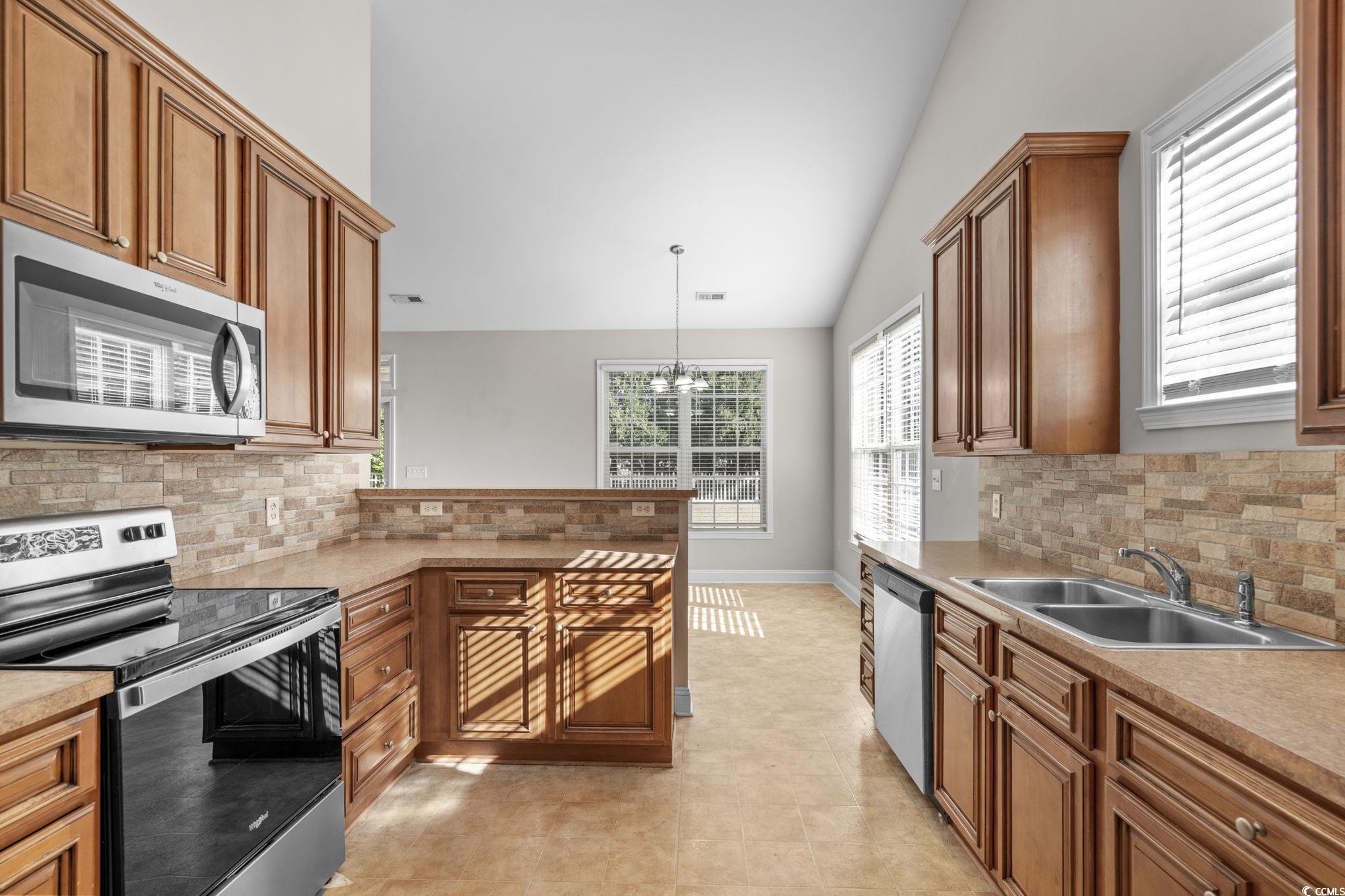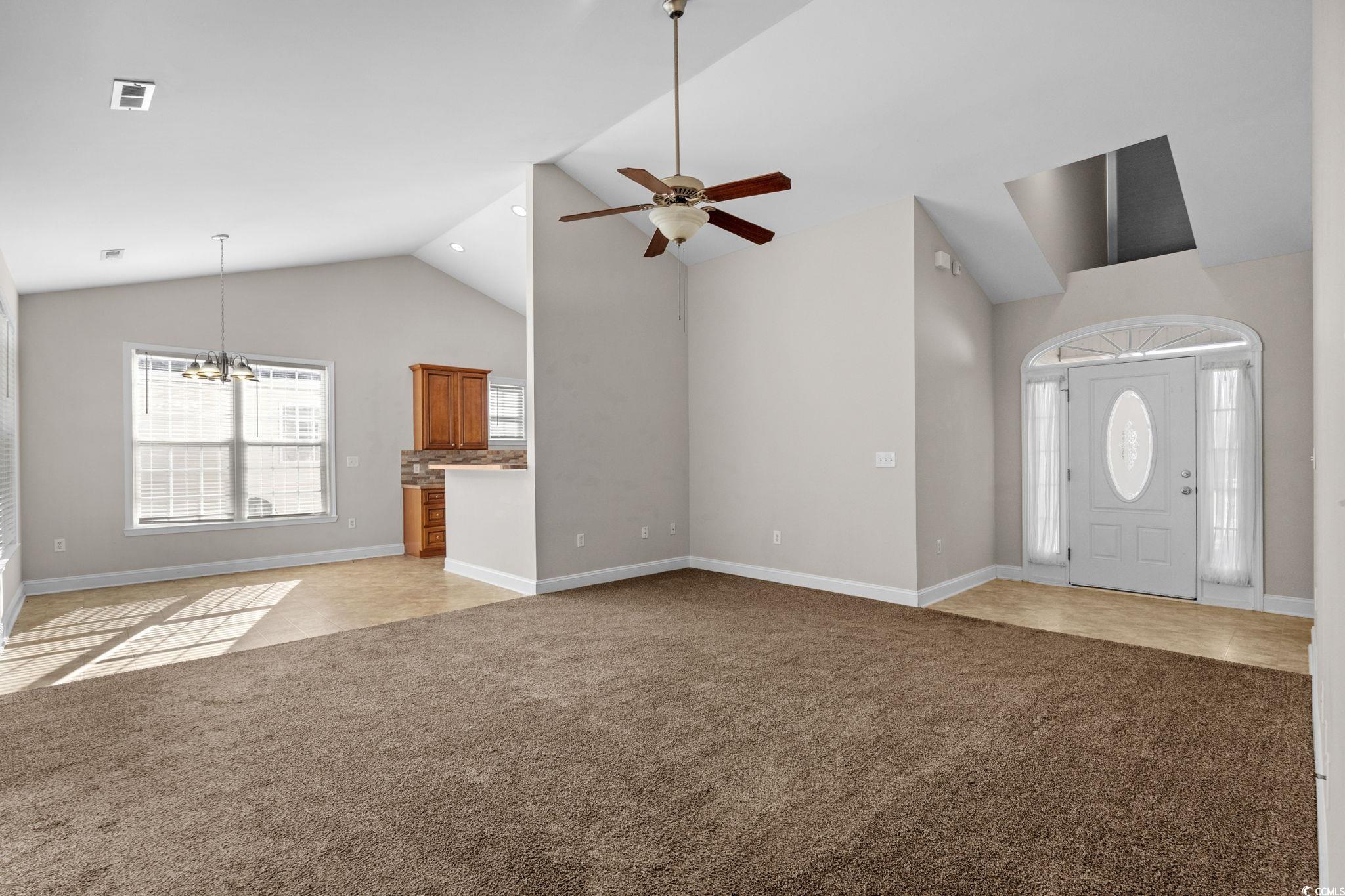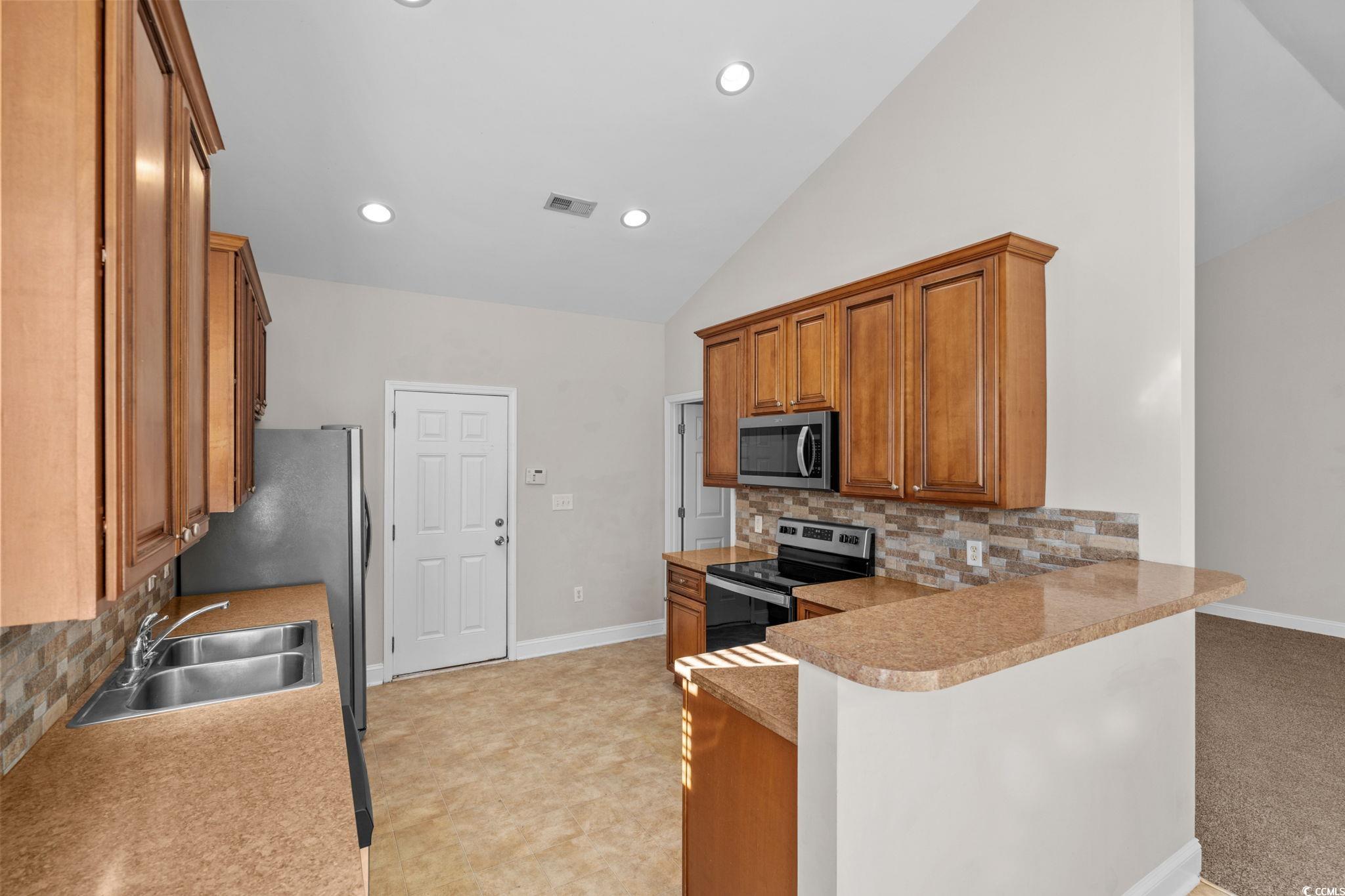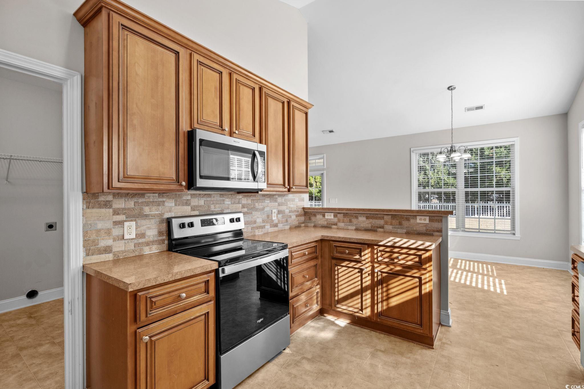 Priced to sell! Located in the quaint and welcoming community of River Country, this charming one-level home offers convenience, comfort, and an incredible backyard. Enjoy a large, fully fenced private yard that backs up to a peaceful wooded tree line perfect for relaxing, entertaining, or letting pets and/or children to play freely. A covered back patio creates the ideal spot for morning coffee or evening gatherings. Inside, you’ll find three bedrooms and two bathrooms, including a spacious primary suite featuring a generous walk-in closet and a private bathroom with double sinks, a soaking tub, and a walk-in shower. The open-concept living area offers vaulted ceilings that enhance the bright, airy feel, and the kitchen is beautifully appointed with modern countertops and an adjoining dining area—perfect for everyday living and entertaining.This home is all on one level=no stairs! Making it a great starter home or an excellent fit for anyone seeking easy living. The quiet neighborhood offers a low HOA fee that includes access to a community pool, clubhouse and on-site boat and RV storage—a rare perk! Conveniently located less than 20 minutes to Downtown Conway, less than 30 minutes to the beach and positioned just minutes to Hwys 90 and 22 for effortless commuting.