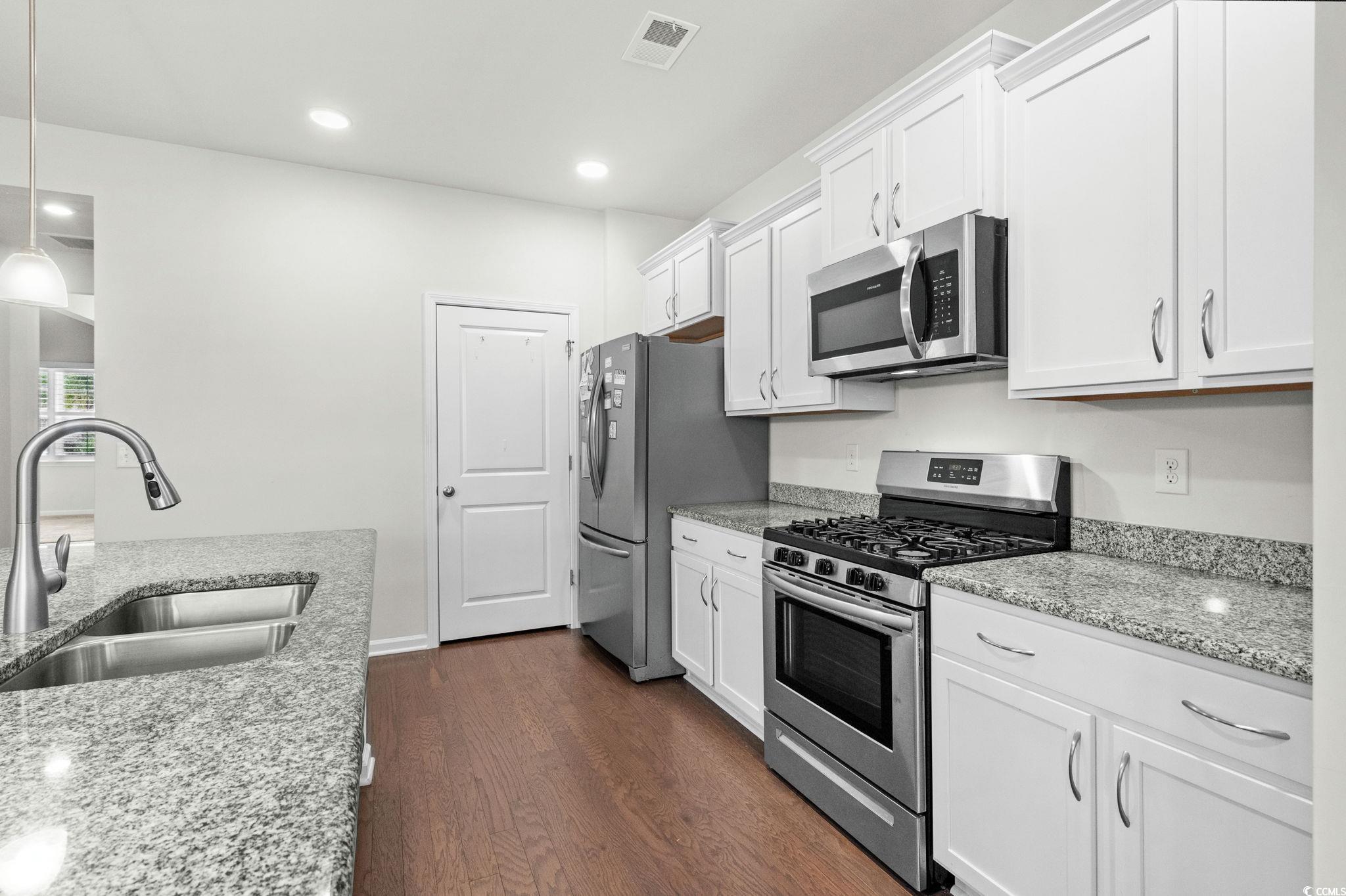Welcome to this beautifully maintained coastal home located in The Retreat at Ocean Commons, just minutes from the sandy shores of Surfside Beach! This spacious 3-bedroom, 2-bath residence offers an open-concept floor plan with plenty of natural light, stylish finishes, and modern upgrades throughout. The kitchen features granite countertops, stainless steel appliances, and a large island perfect for entertaining. The primary suite includes a walk-in closet and a luxurious ensuite bath with a double vanity and walk-in shower. Enjoy relaxing mornings or evening breezes on the covered patio overlooking the private backyard. Conveniently located near shopping, dining, golf, and all the attractions of the Grand Strand—this home combines comfort, convenience, and coastal living at its best! *Owners are licensed SC Realtors