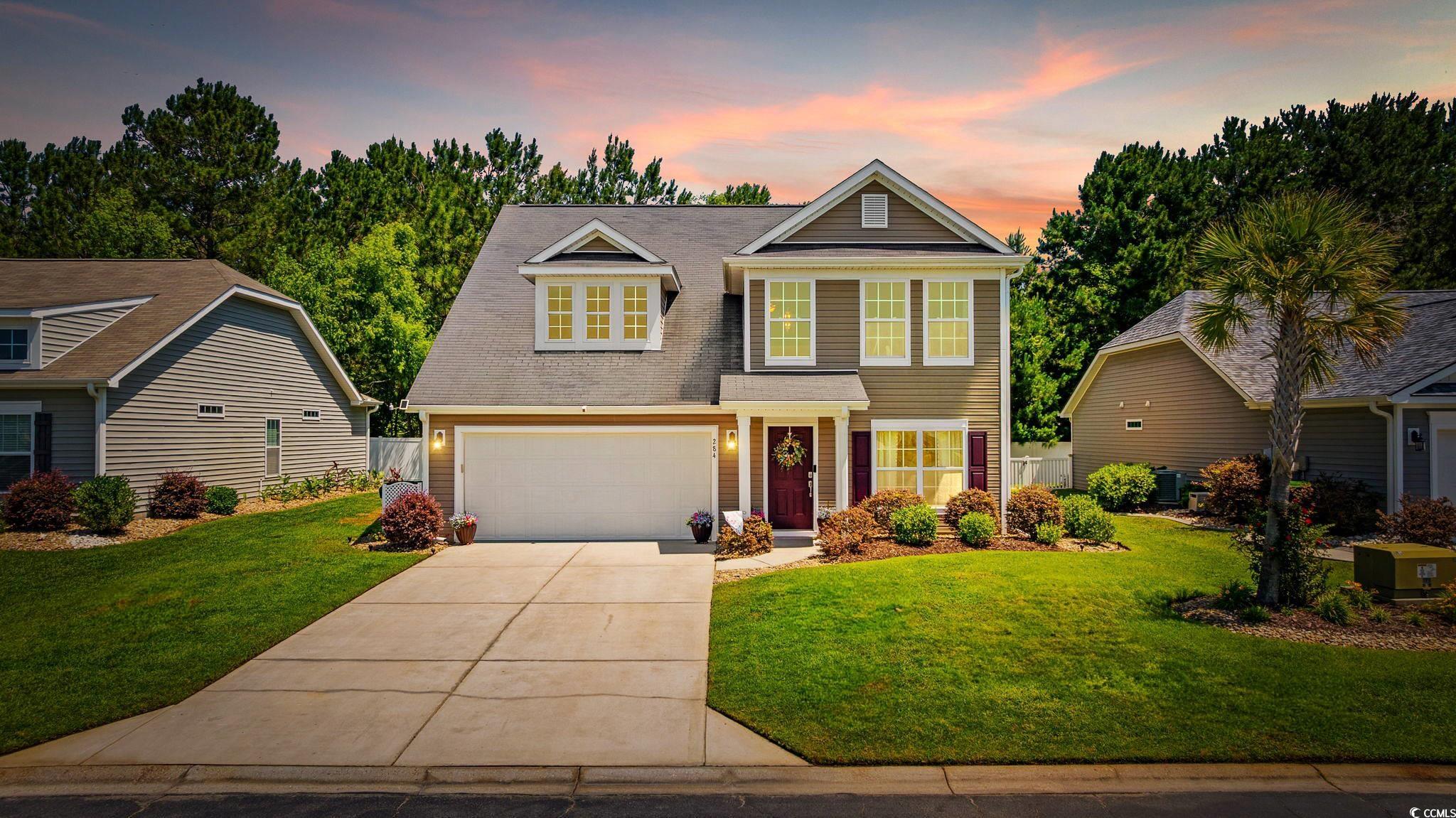 Welcome to 284 Whipple Run, a beautifully designed five-bedroom home in the desirable Charleston Lakes community, located within the acclaimed St. James School District. Step inside to discover a spacious and inviting open layout, perfect for entertaining or relaxed day-to-day living. Just off the entry, to the right, is a versatile formal dining room that could also be used as a formal living area or home office. The kitchen is a chef’s dream, featuring sleek stainless steel appliances, granite countertops, a stylish tile backsplash, a large center island with breakfast bar seating, and a cozy dining nook. The main living area offers a vaulted ceiling and a view of the backyard, seamlessly connected to the kitchen for easy entertaining. From this family room, step out onto a 16' x 9.5' screened porch with a ceiling fan—ideal for enjoying the outdoors year-round. The primary suite is conveniently located on the FIRST FLOOR and features a tray ceiling, generous walk-in closet, double vanity, and a spacious shower. Also on the main level is a versatile bedroom with French doors, perfect for use as a home office, nursery, or additional sleeping space. A half bath and laundry room add to the convenience of the first-floor. Upstairs, you’ll find three additional bedrooms, each with ceiling fans and ample closet space. A full bathroom with a tub/shower combo serves this level, along with a central loft area that offers a great play space, media room, or study area. Additional features of the home include an extended two-car garage, a sliding garage screen door that adds an extra living space, an electric vehicle charging-compatible outlet, a whole-house generator, irrigation system, gutters, and low-maintenance landscaping with attractive curbscaping. Charleston Lakes is a boutique community that offers residents a sparkling saltwater pool and peaceful water features—perfect for evening strolls and outdoor relaxation. This home offers the perfect blend of casual elegance and everyday comfort, just minutes from the beach, premier shopping, top-tier medical facilities, and the Myrtle Beach International Airport. 284 Whipple Run isn’t just a home—it’s a lifestyle. Come experience the perfect fusion of coastal luxury, smart design, and effortless living.