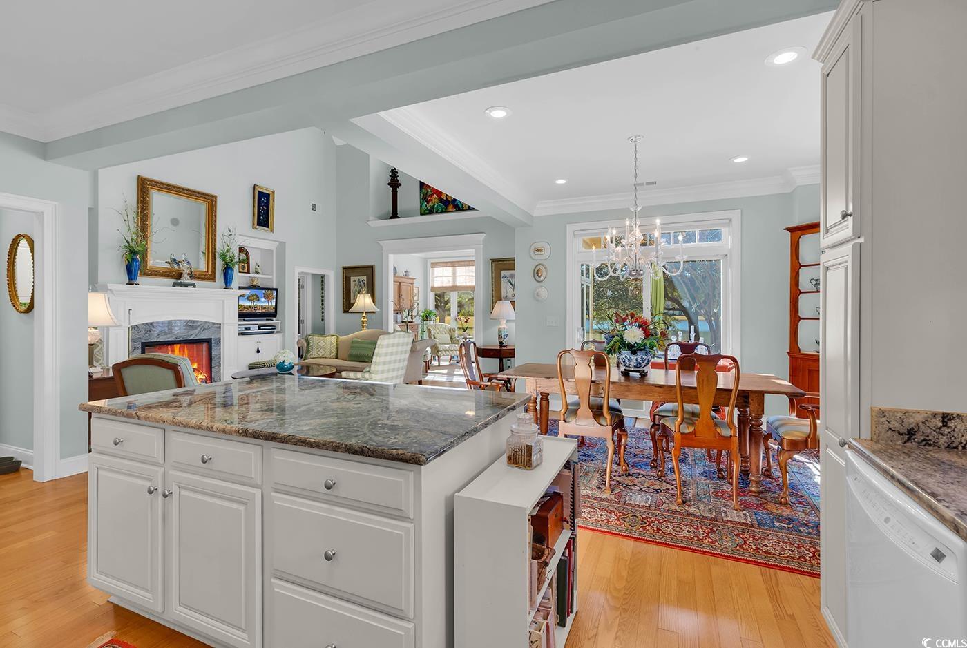 Welcome to 285 Huntington Lake Villa - the most sought-after address in The Reserve. This home offers one of the community's most desirable settings, with beautiful lake views and the peaceful backdrop of Brookgreen Gardens just beyond your front yard. Enjoy Lowcountry living at its finest with an enclosed sunroom and a charming courtyard perfect for grilling, both overlooking the lake. The first-floor master suite features a stunning walk-in shower, while the main living area showcases a gas fireplace, custom built-ins and hardwood floors throughout. A dedicated study/den provides the perfect flexible space on the main level. Upstairs includes a cozy sitting area and two conditioned storage rooms, one of which has been used as a sewing or craft room. Both upstairs bedrooms offer the convenience of en-suite bathrooms and wonderful natural light. This community also has its own dedicated pool and owners clubhouse with a work out room. It is a favorite place for gathering for the Huntington Lake's residents. If they choose, residents of The Reserve may join amenities which include a private Greg Norman-designed golf course, a marina with Intracoastal Waterway access. The tranquility of The Reserve makes this community so special. This home offers privacy, peaceful surroundings, and the perfect blend of comfort and Lowcountry charm - right in the heart of Pawleys Island.
