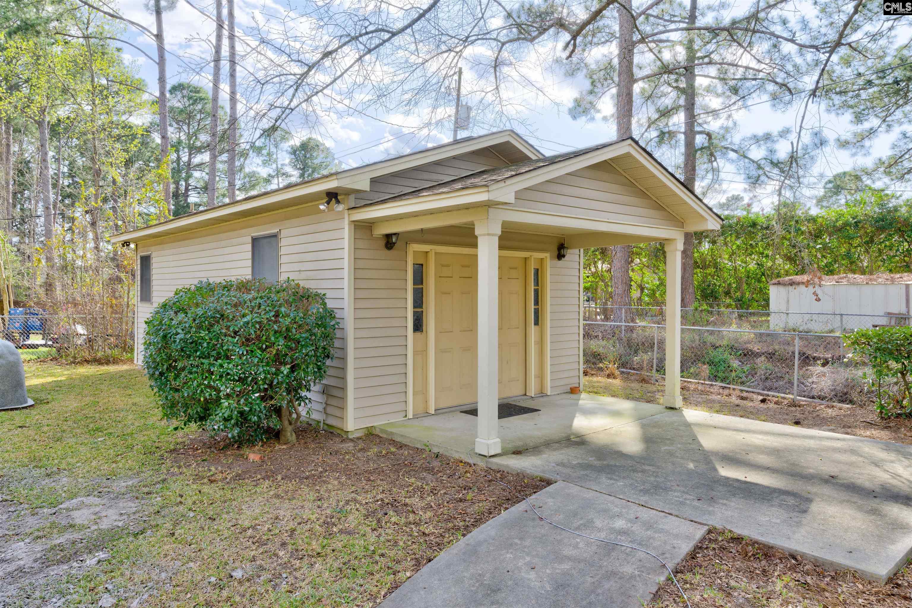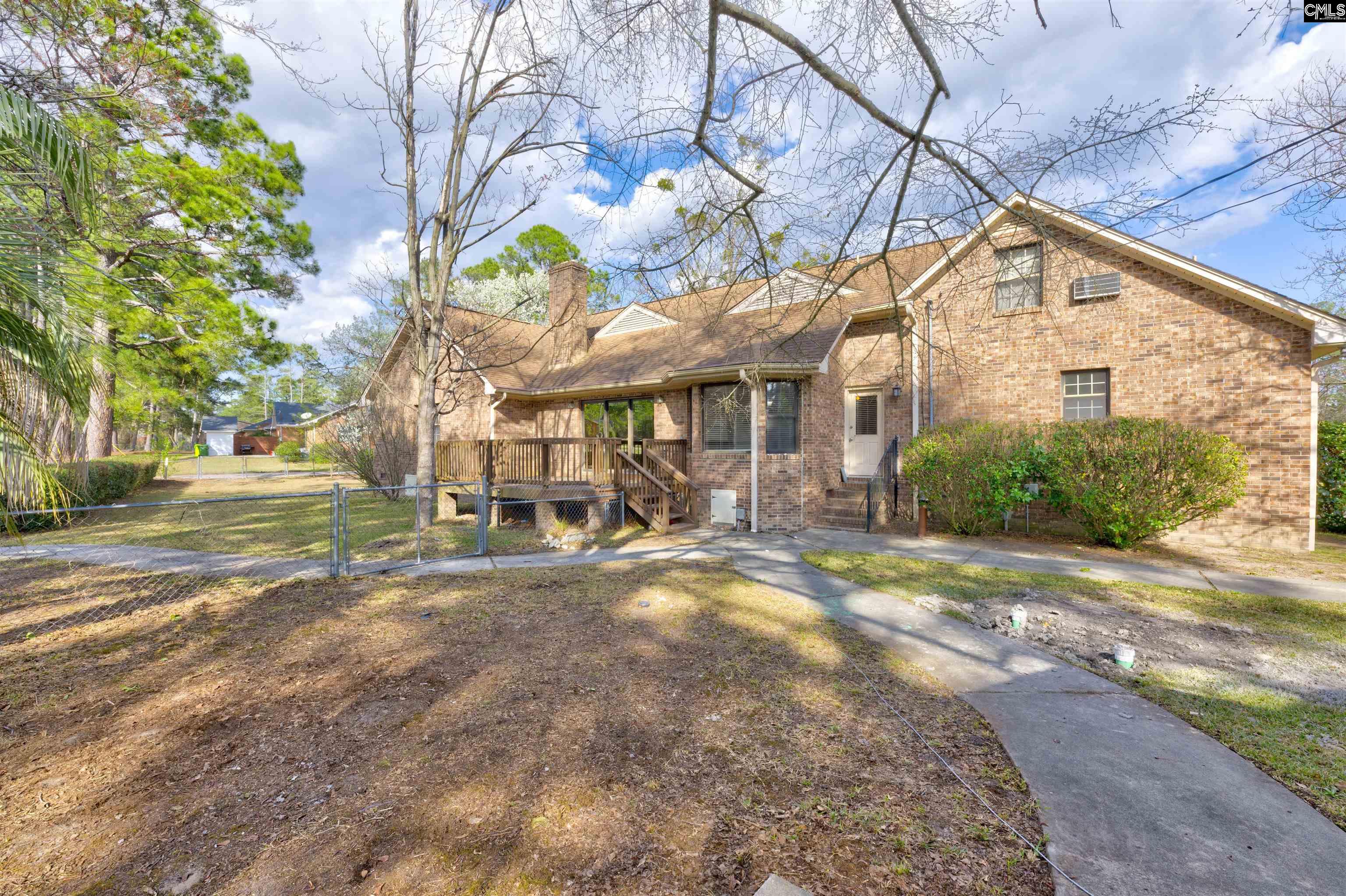 Situated on a spacious corner lot shaded by mature trees, this all-brick 1.5-story home offers flexible living with the rare bonus of a separate guest house or studio (approx. 400 sq ft) complete with its own kitchen and full bath. Ideal for guests, extended stays, a home office, or creative space. The main home welcomes you with a covered front porch and a great room featuring vaulted ceilings and a masonry fireplace. A formal dining room provides a dedicated space for hosting, while the kitchen offers solid surface countertops, bar seating, and a bright eat-in area with bay window overlooking the backyard. The main-level owner's suite includes a walk-in closet and private bath with dual vanities. Two additional bedrooms are located on the main level, while the upstairs fourth bedroom with full bath offers excellent flexibility for guests, a private retreat, or workspace. Outdoor living is easy to enjoy with a deck overlooking the fenced backyard and mature shade trees. Conveniently located with easy access to I-77, I-20, Fort Jackson, Forest Acres, and nearby shopping and dining, this property combines space, versatility, and location in one unique opportunity—all with the added benefit of no HOA. Disclaimer: CMLS has not reviewed and, therefore, does not endorse vendors who may appear in listings.