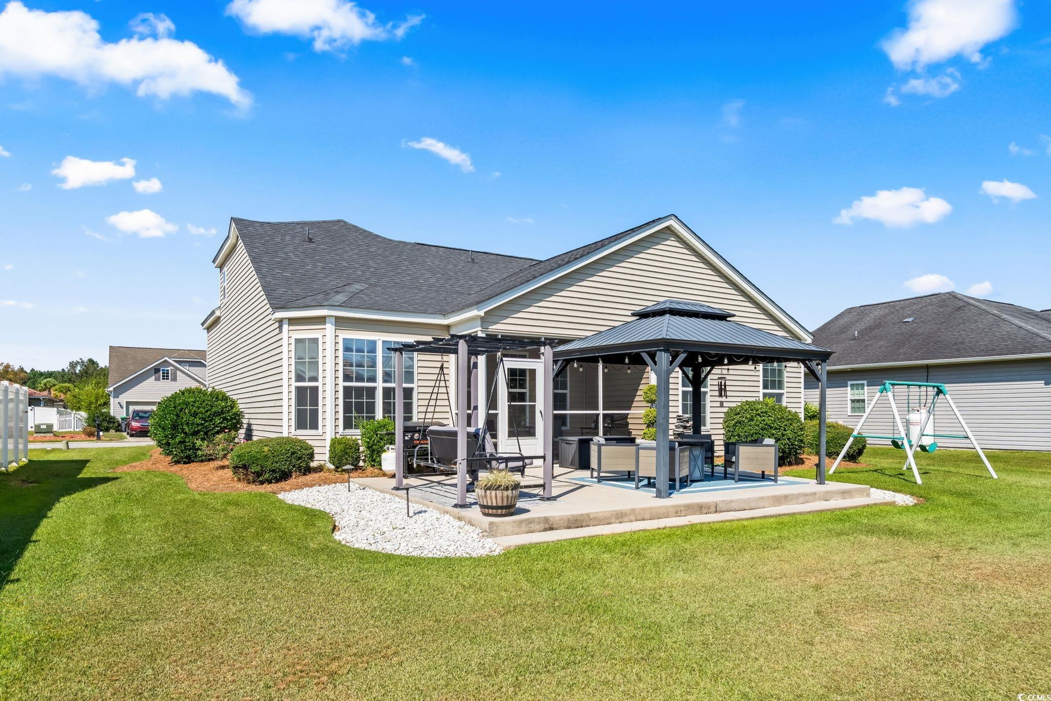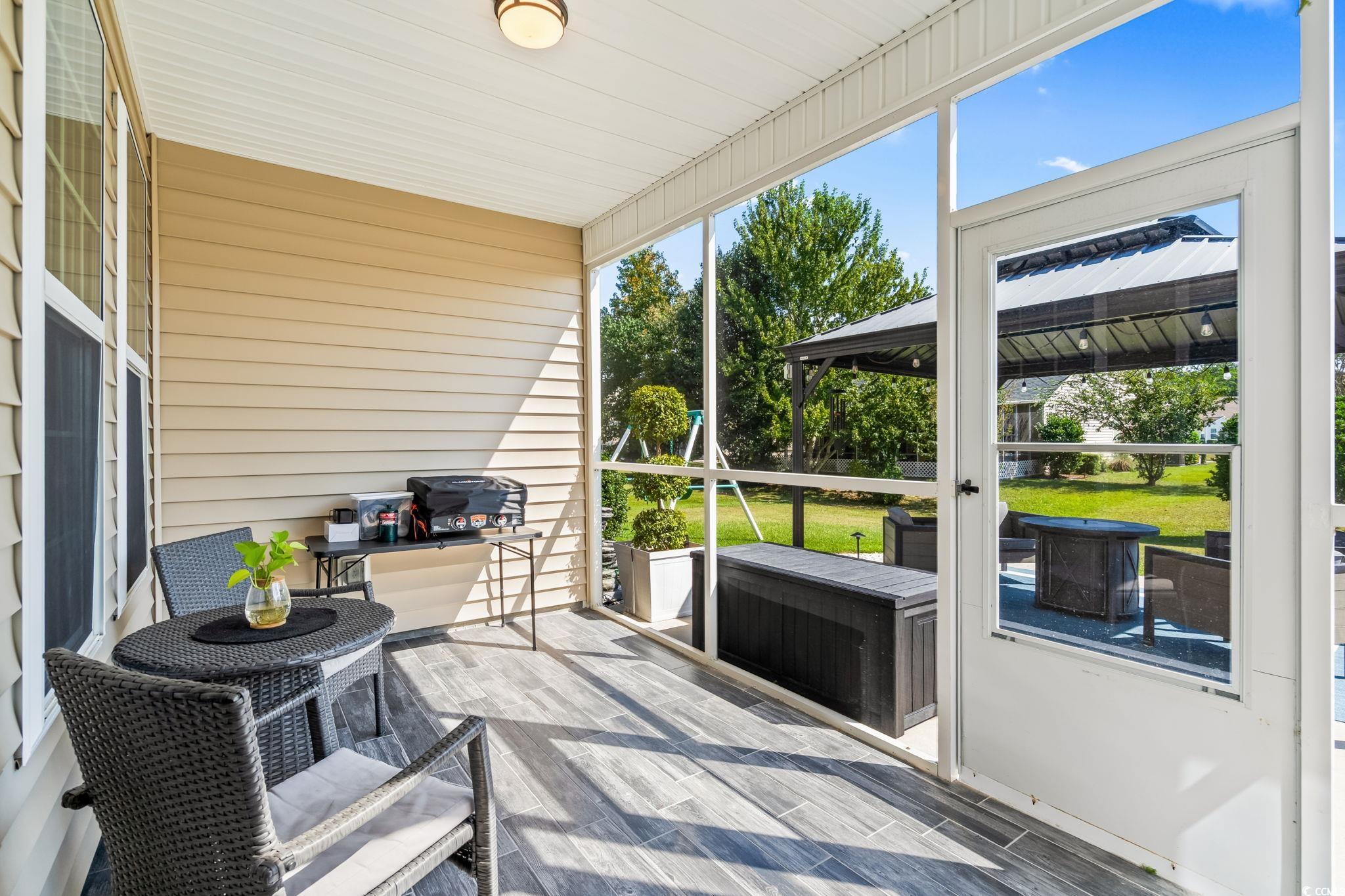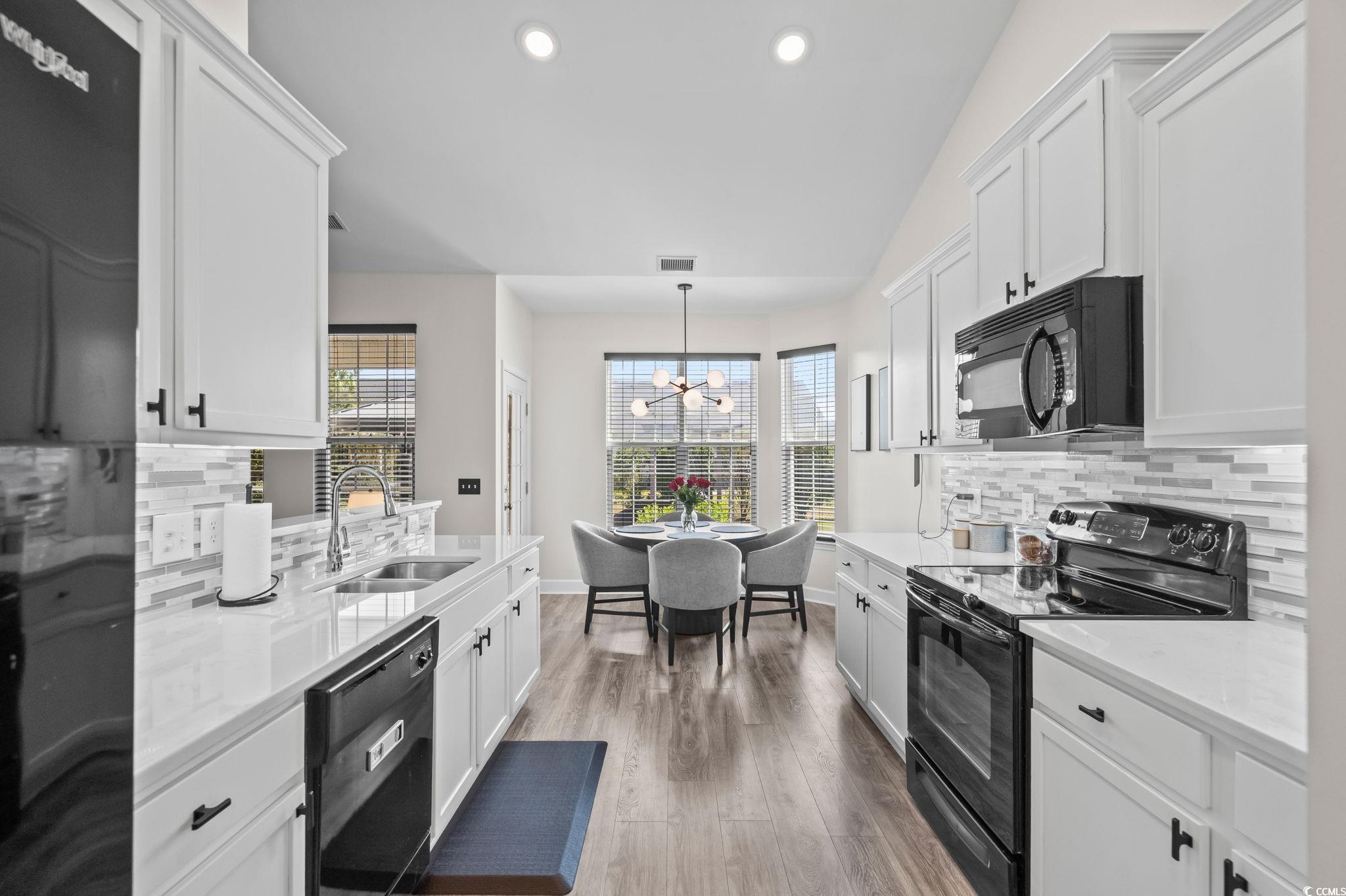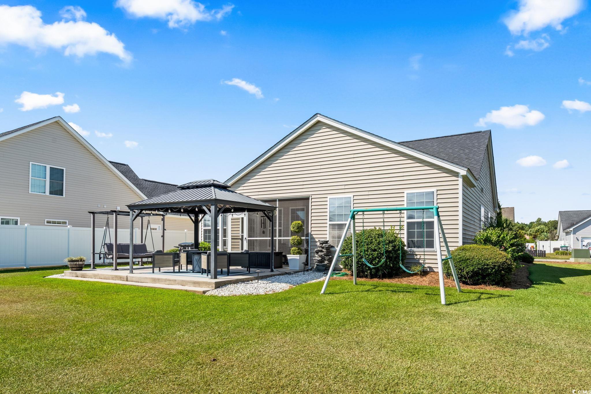 FULLY UPDATED, MODERN FLARE, CUL-DE-SAC LOT, PERFECT LOCATION! Welcome to 2881 Desert Rose Street in the highly desirable North Village community of Little River! This stunning 4-bedroom, 3-bathroom home combines modern style with thoughtful upgrades and a functional layout, making it perfect for everyday living and entertaining. Step inside to an inviting open floor plan with soaring ceilings, abundant natural light, and beautiful wood-look flooring throughout the main living areas. The spacious great room flows seamlessly into the dining area and kitchen, where you’ll find sleek white cabinetry, beautiful countertops, a stylish tile backsplash, and black appliances that add a touch of contrast and modern sophistication. The private owner’s suite is a true retreat, featuring a vaulted ceiling with a ceiling fan, large windows, and a spa-like ensuite with dual vessel sink vanity, a walk-in shower, and a soaking tub. Additional bedrooms provide comfort and flexibility for family, guests, or a home office, while the upstairs bedroom with a full bath adds even more living space and could be used as a bedroom or bonus room. Enjoy the outdoors year-round with a screened porch overlooking the expansive backyard, complete with a custom patio, gazebo, and plenty of room for play or gardening. Mature landscaping enhances the home’s curb appeal, while the two-car garage and long driveway provide ample parking. Location is always key and this showstopper puts you mere minutes from the beach, dining, golf, entertainment, and shopping that the Grand Strand is famous for! This home offers the perfect blend of convenience and coastal lifestyle. Buyer is responsible for verification.