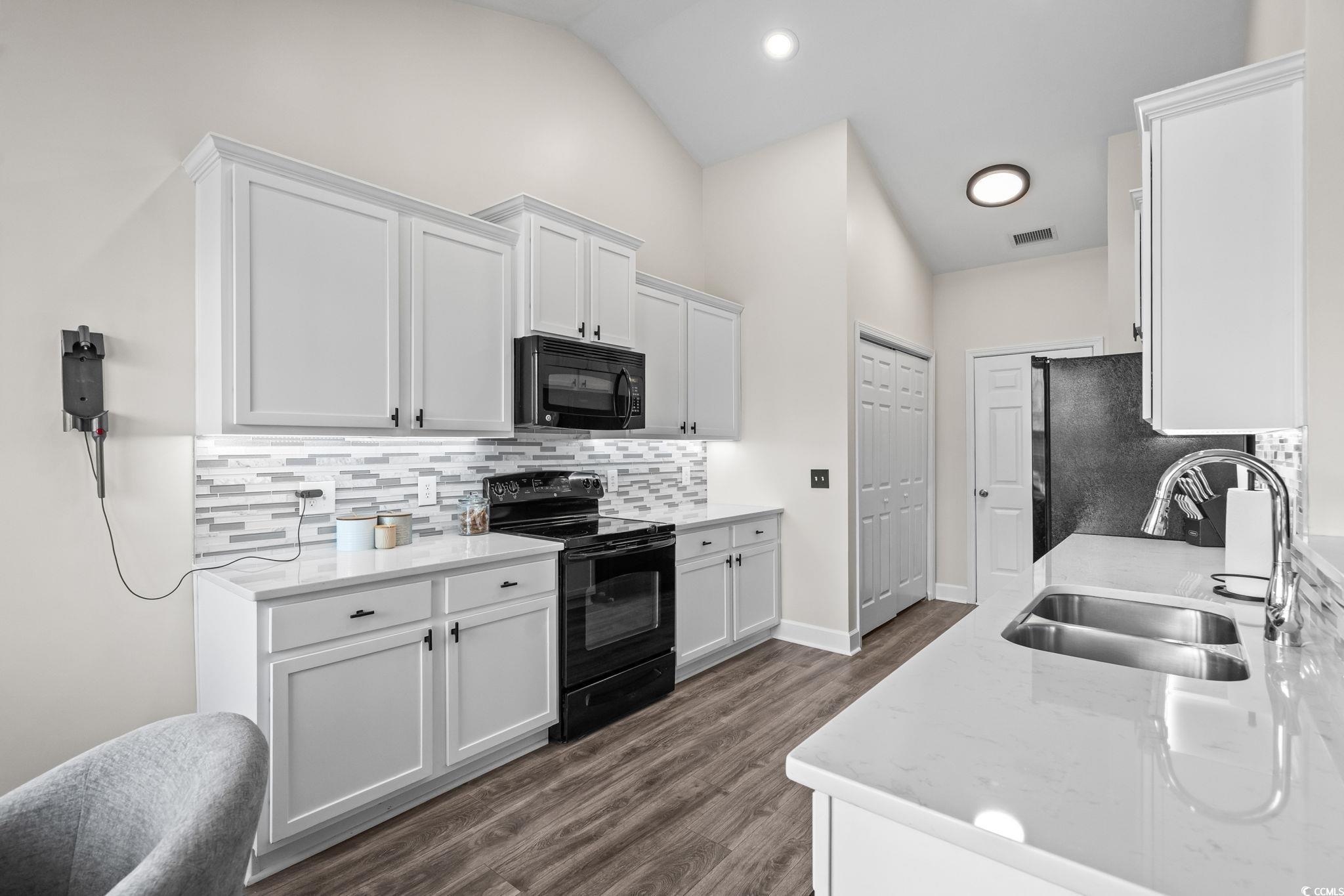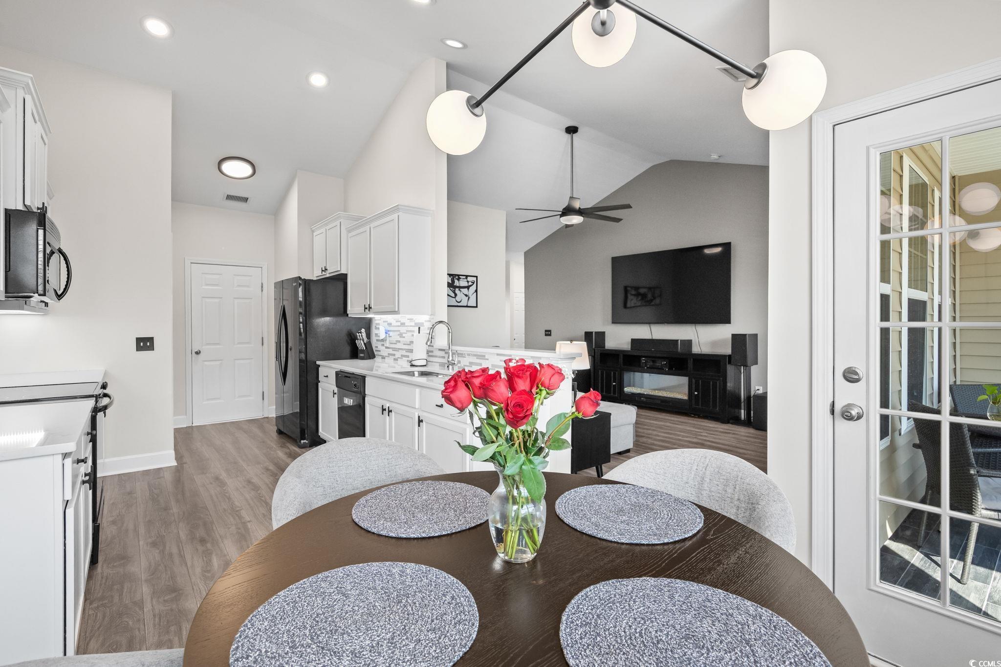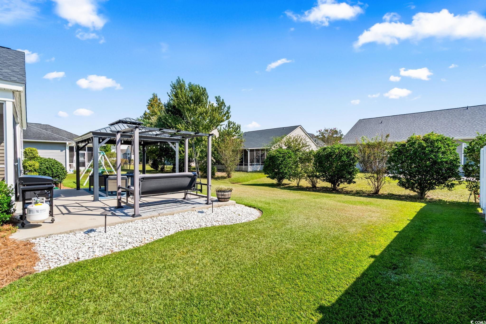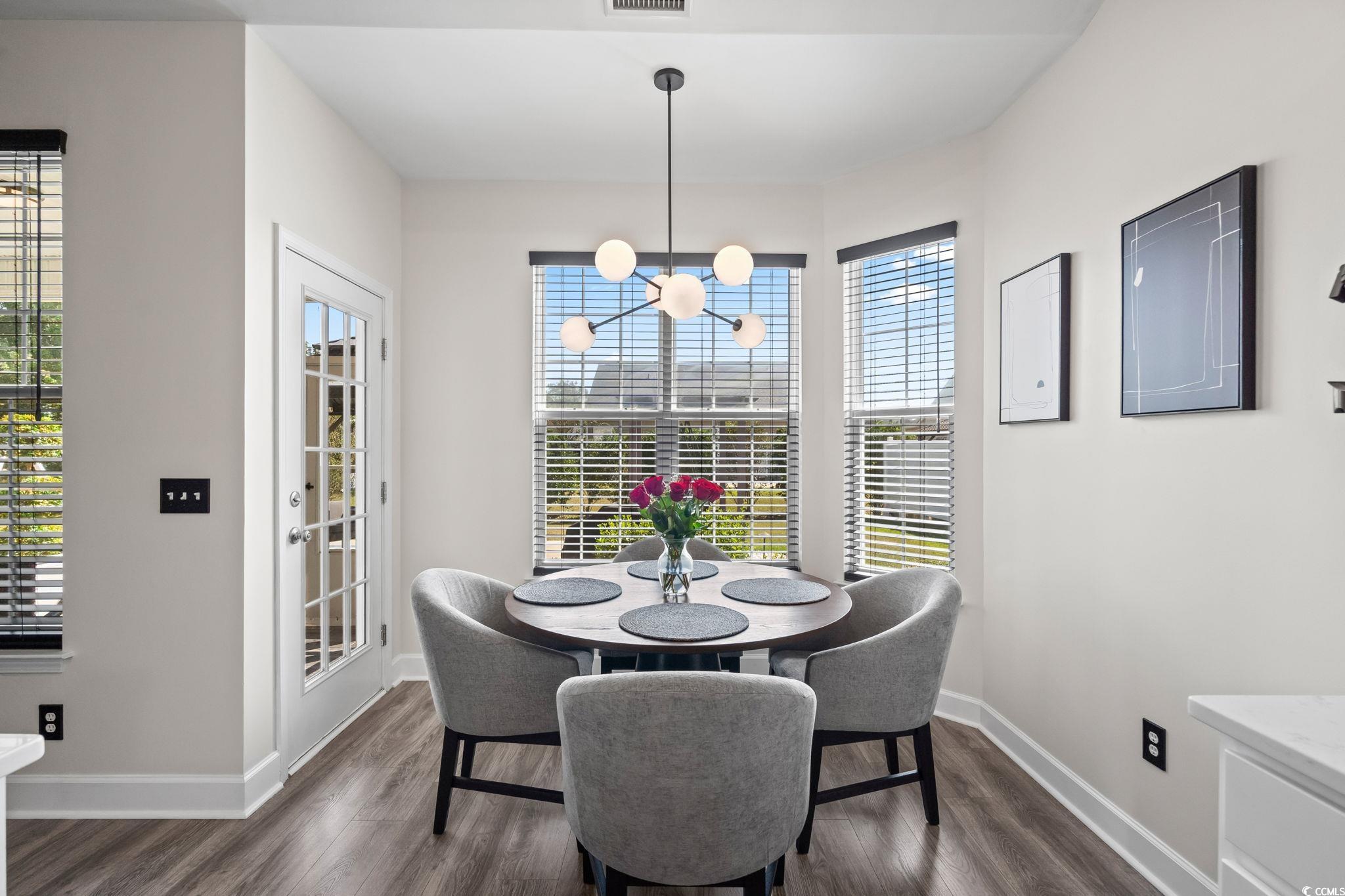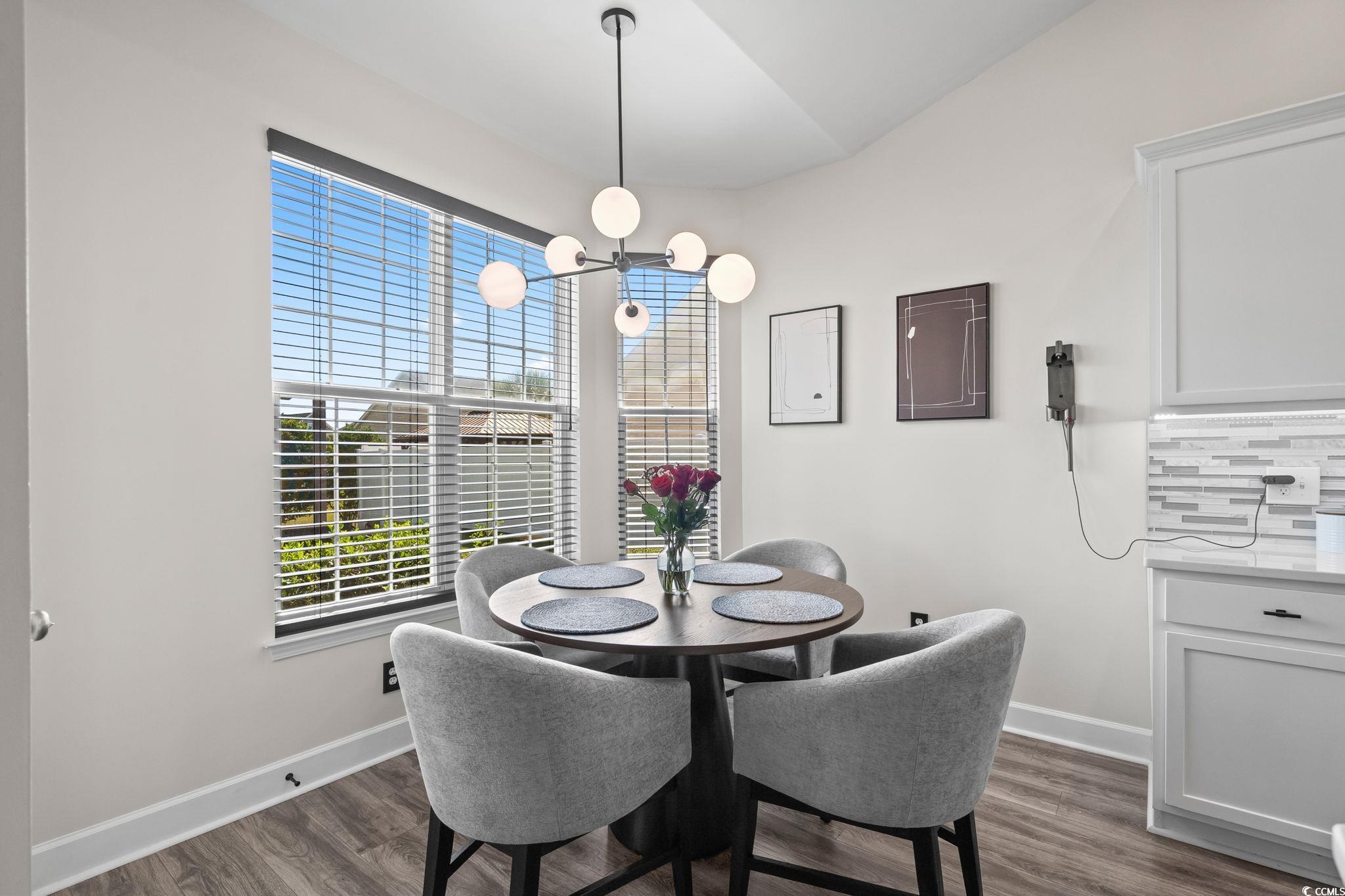 FULLY UPDATED, MODERN FLARE, CUL-DE-SAC LOT, PERFECT LOCATION! Welcome to 2881 Desert Rose Street in the highly desirable North Village community of Little River! This stunning 4-bedroom, 3-bathroom home combines modern style with thoughtful upgrades and a functional layout, making it perfect for everyday living and entertaining. Step inside to an inviting open floor plan with soaring ceilings, abundant natural light, and beautiful wood-look flooring throughout the main living areas. The spacious great room flows seamlessly into the dining area and kitchen, where you’ll find sleek white cabinetry, beautiful countertops, a stylish tile backsplash, and black appliances that add a touch of contrast and modern sophistication. The private owner’s suite is a true retreat, featuring a vaulted ceiling with a ceiling fan, large windows, and a spa-like ensuite with dual vessel sink vanity, a walk-in shower, and a soaking tub. Additional bedrooms provide comfort and flexibility for family, guests, or a home office, while the upstairs bedroom with a full bath adds even more living space and could be used as a bedroom or bonus room. Enjoy the outdoors year-round with a screened porch overlooking the expansive backyard, complete with a custom patio, gazebo, and plenty of room for play or gardening. Mature landscaping enhances the home’s curb appeal, while the two-car garage and long driveway provide ample parking. Location is always key and this showstopper puts you mere minutes from the beach, dining, golf, entertainment, and shopping that the Grand Strand is famous for! This home offers the perfect blend of convenience and coastal lifestyle. Buyer is responsible for verification.