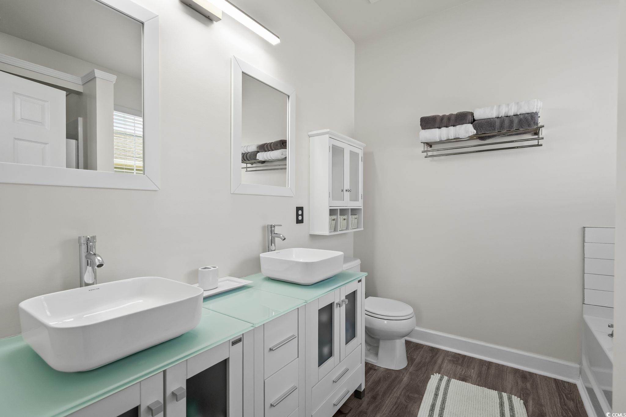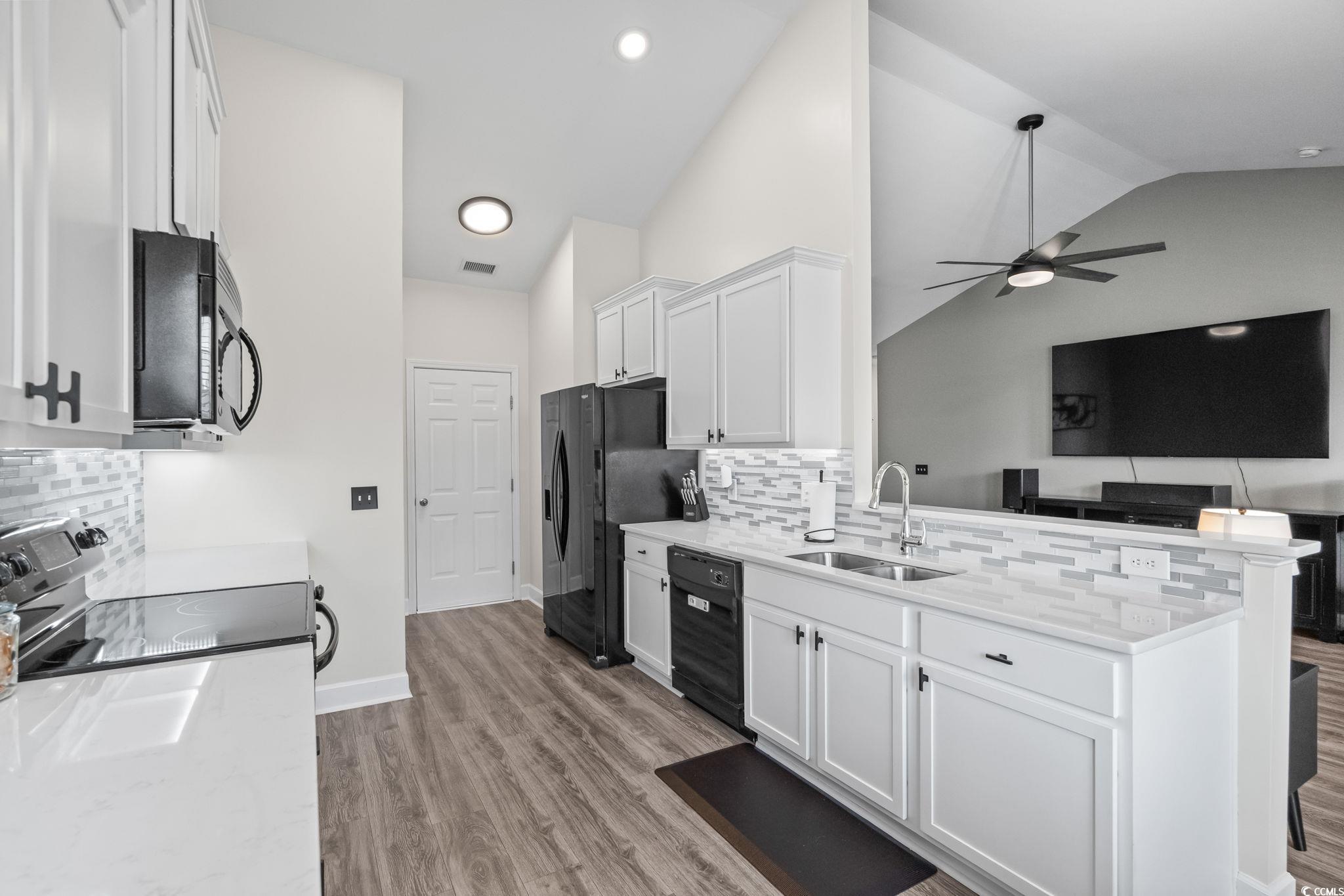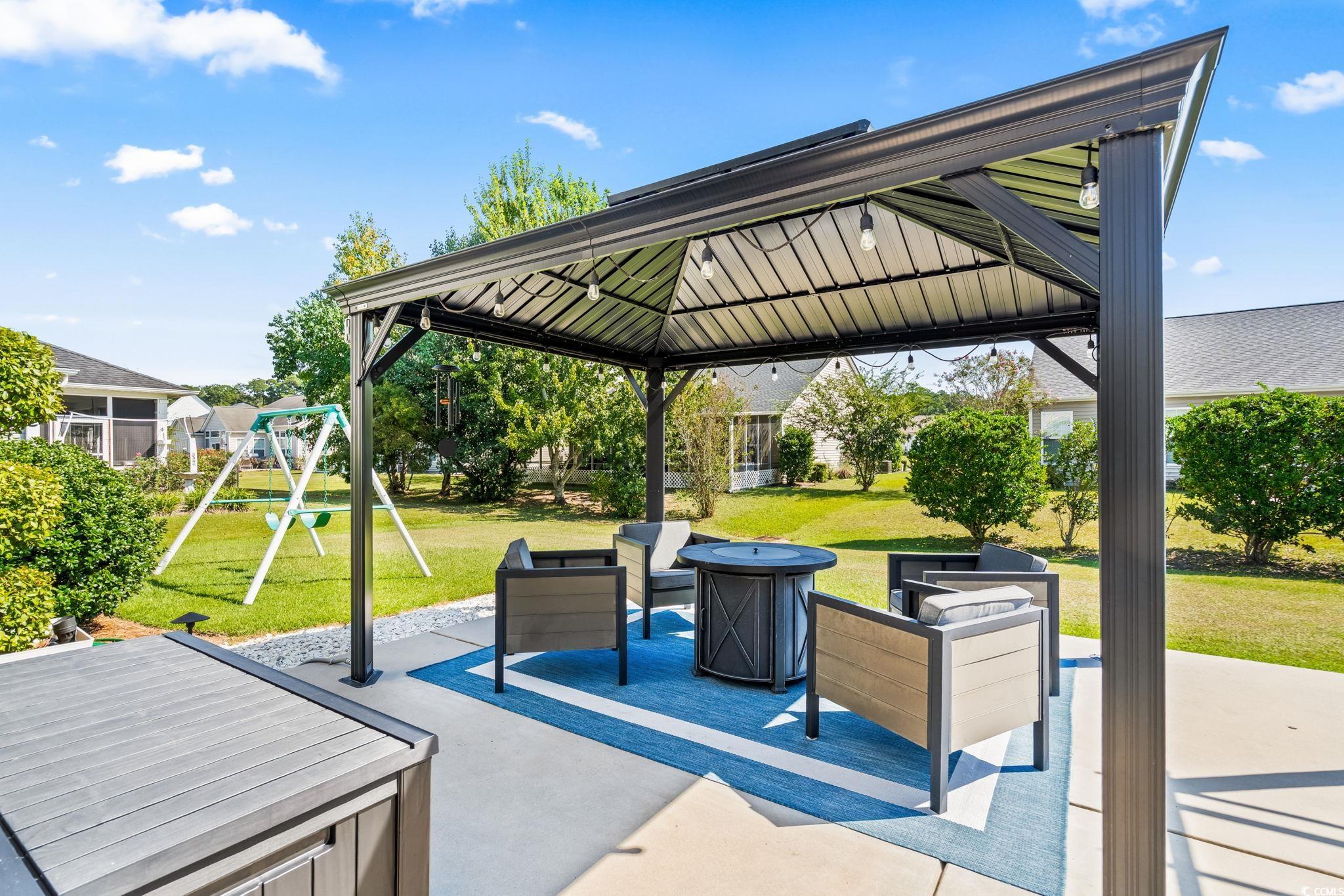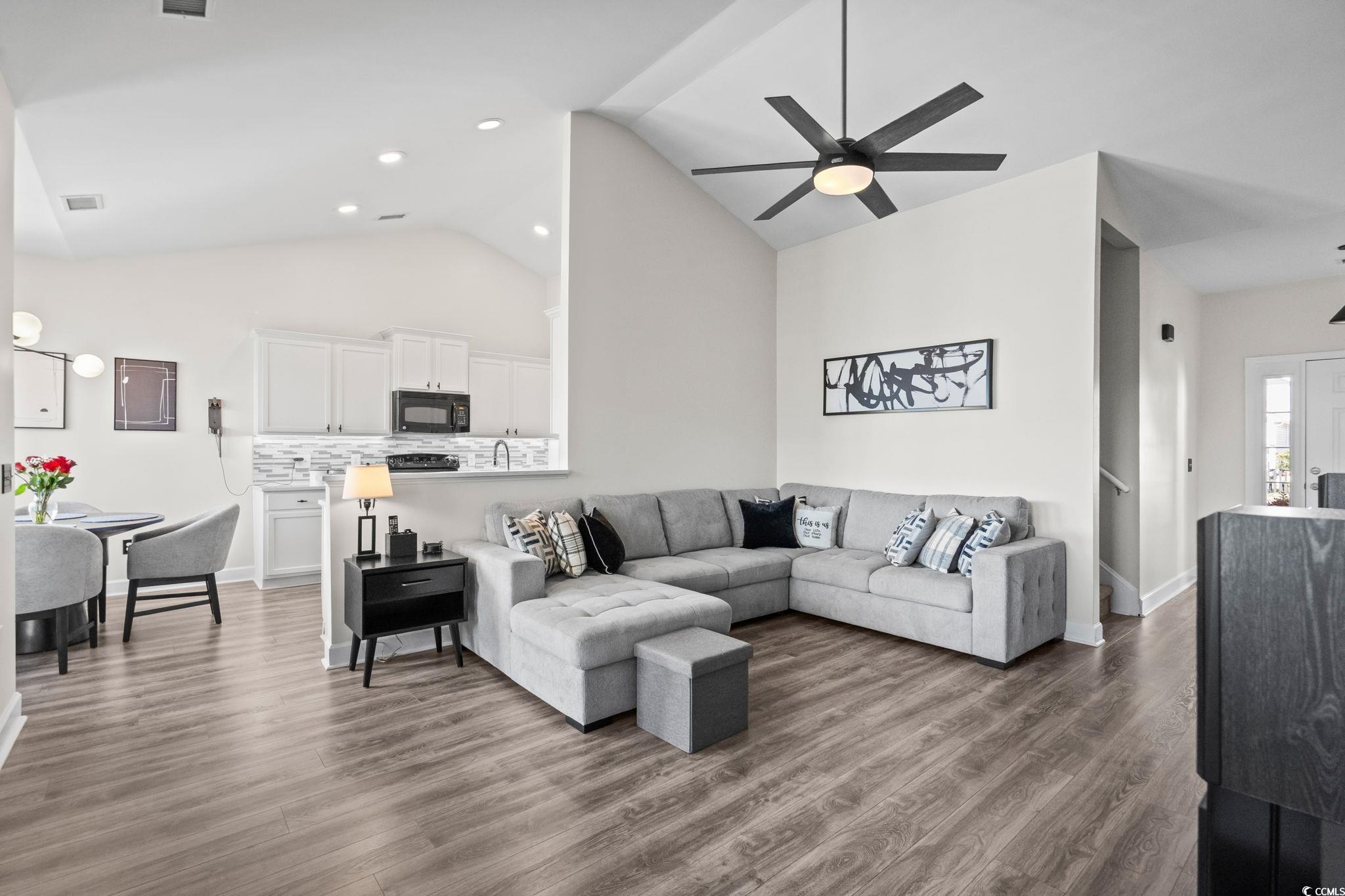 FULLY UPDATED, MODERN FLARE, CUL-DE-SAC LOT, PERFECT LOCATION! Welcome to 2881 Desert Rose Street in the highly desirable North Village community of Little River! This stunning 4-bedroom, 3-bathroom home combines modern style with thoughtful upgrades and a functional layout, making it perfect for everyday living and entertaining. Step inside to an inviting open floor plan with soaring ceilings, abundant natural light, and beautiful wood-look flooring throughout the main living areas. The spacious great room flows seamlessly into the dining area and kitchen, where you’ll find sleek white cabinetry, beautiful countertops, a stylish tile backsplash, and black appliances that add a touch of contrast and modern sophistication. The private owner’s suite is a true retreat, featuring a vaulted ceiling with a ceiling fan, large windows, and a spa-like ensuite with dual vessel sink vanity, a walk-in shower, and a soaking tub. Additional bedrooms provide comfort and flexibility for family, guests, or a home office, while the upstairs bedroom with a full bath adds even more living space and could be used as a bedroom or bonus room. Enjoy the outdoors year-round with a screened porch overlooking the expansive backyard, complete with a custom patio, gazebo, and plenty of room for play or gardening. Mature landscaping enhances the home’s curb appeal, while the two-car garage and long driveway provide ample parking. Location is always key and this showstopper puts you mere minutes from the beach, dining, golf, entertainment, and shopping that the Grand Strand is famous for! This home offers the perfect blend of convenience and coastal lifestyle. Buyer is responsible for verification.