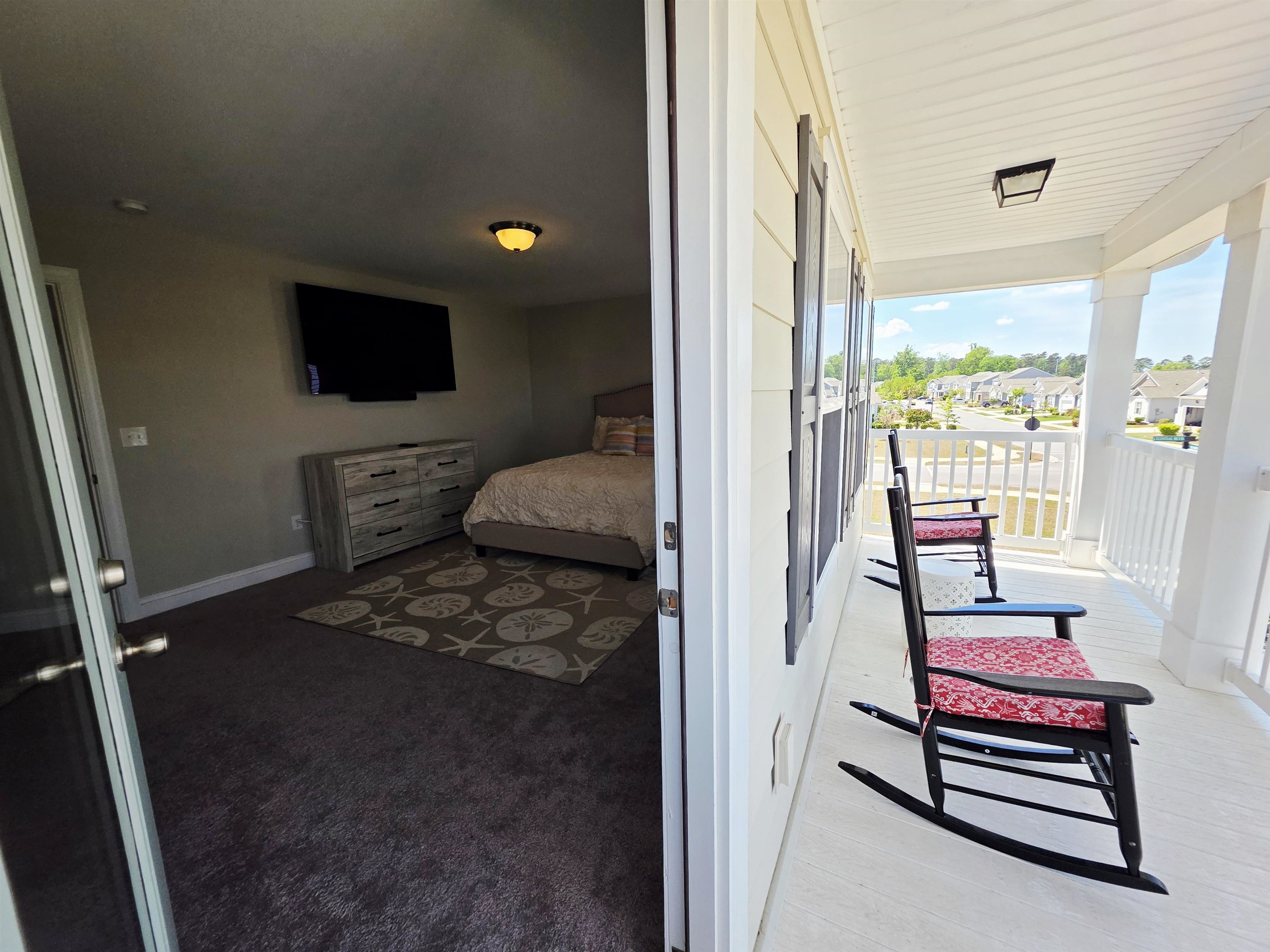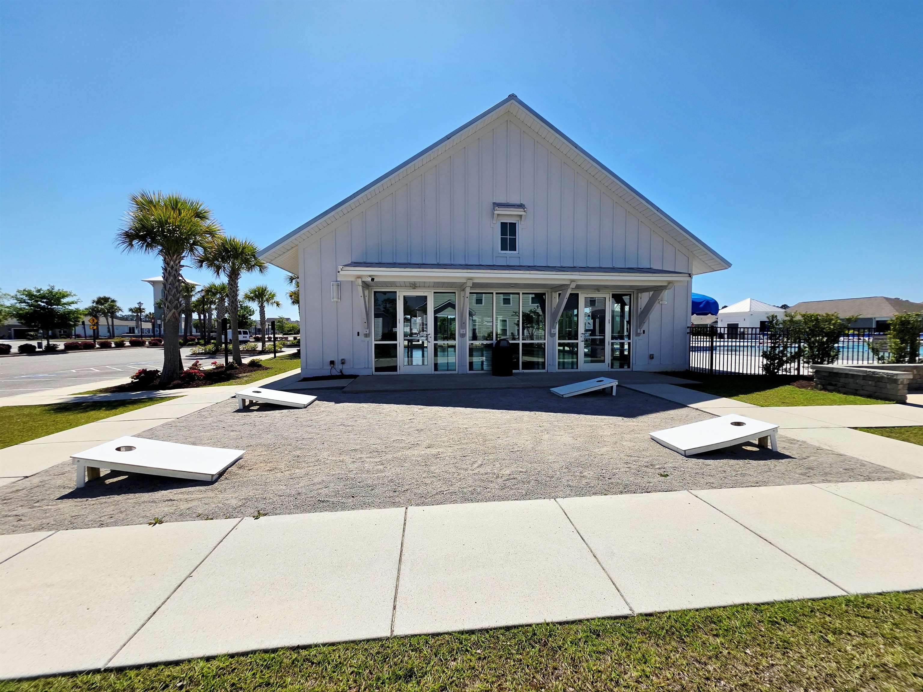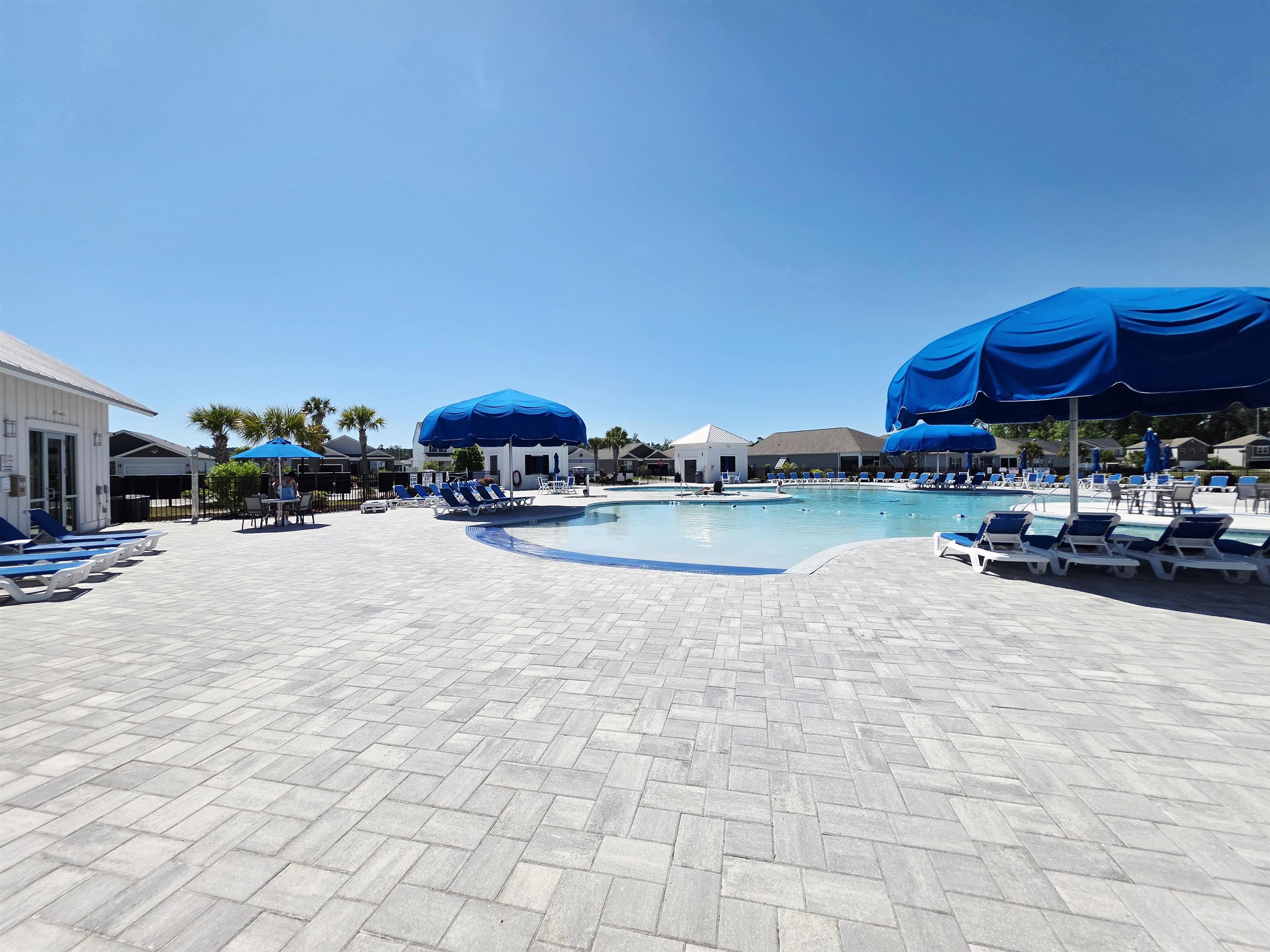 Beautiful two-story home with Hardie board siding and a charming double front porch, located on a desirable corner lot in a resort-style community. This open floor plan features a spacious great room and hardwood-look tile throughout the main living areas on the first floor. The kitchen is beautifully appointed with custom cabinetry, quartz countertops, tiled backsplash, stainless steel appliances including a gas stove, and a butler’s pantry. A formal dining room or office adds flexibility, and a guest bedroom with a full bath is conveniently located on the first floor. Upstairs, you’ll find a huge loft with ample closet space, two guest bedrooms, a laundry room, and a grand owner’s suite complete with a separate sitting area, walk-in closet, dual vanity areas, and an oversized tiled spa-style shower. This home was built in 2019 and is in excellent condition, as it was only used a few months each year as a second home. Outdoor features include a screened-in back porch, an additional side patio perfect for grilling, and a beautifully painted and stamped driveway featuring an eye-catching design of two palm trees that adds incredible curb appeal. Enjoy living like you’re on vacation with community amenities that include a resort-style pool and hot tub, air-conditioned pickleball court and meeting space, walking trails, and a short golf cart ride to the shops, dining, and attractions of The Market Common, as well as the beach. This is a must-see property that combines style, comfort, and coastal lifestyle.
