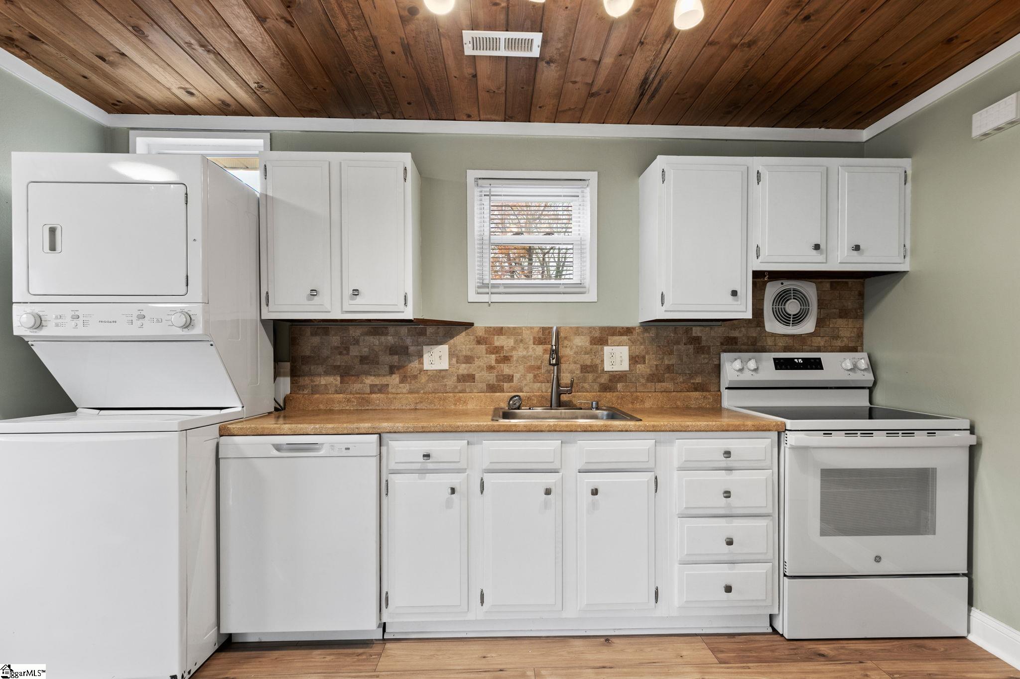 Discover the charm of Oak Grove Village in this cozy 2-bedroom, 1-bath cottage-style condo offering just under 800 sq ft of easy, low-maintenance living — less than 5 miles from the heart of Downtown Greenville and just 5 minutes from Furman University! Whether you’re looking for a comfortable place to call home or a smart investment property in a highly desirable location, this one checks the boxes. Inside, you’ll find warm tongue-and-groove ceilings and a host of recent updates: new flooring, stove, dishwasher, updated fixtures, a refreshed bathroom vanity, new window treatments, and fresh paint throughout. A washer and dryer are included, making move-in effortless. Outside, a paver patio surrounded by simple, low-key landscaping offers the perfect spot to unwind, grill out, or enjoy your morning coffee. As a quiet rear unit, it provides added privacy and a peaceful, tucked-away feel. The surrounding area offers plenty of room to enjoy longer walks, jogs, or bike rides right from your front door. The HOA covers exterior and lawn maintenance plus garbage service for only $215/month, making this an easy-care option for owners and investors alike.