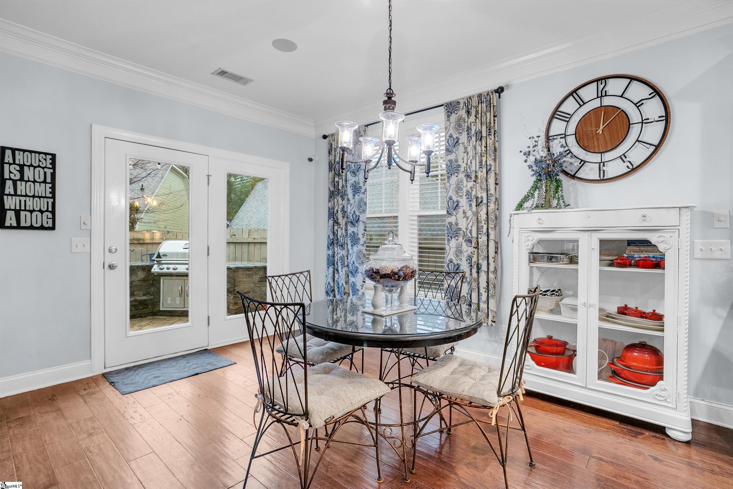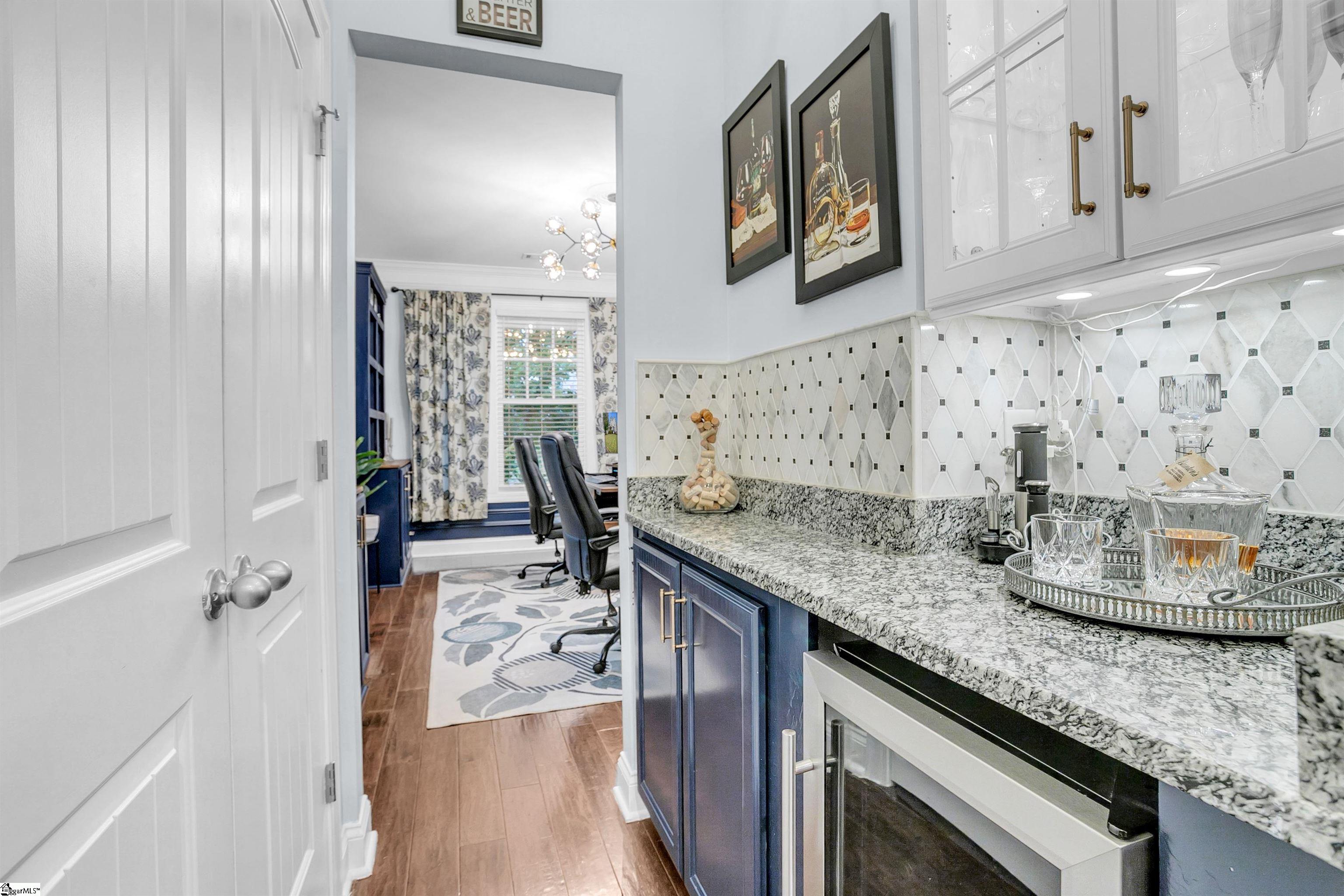 Location, location, location! Welcome to your dream home in The Cove at Butler Springs, a quiet neighborhood with direct access to Butler Springs Park—offering tennis, pickleball, walking trails, and multiple playgrounds and baseball fields (walkable to your child's Wade Hampton Little League games or practice)—all just minutes from downtown Greenville, Patewood Medical Complex, I-385, and much more. This spacious 4-bedroom, 3½-bathroom southern classic with craftsman flair boasts over 2,800 square feet, a new roof (2024), and a large second living area upstairs that qualifies as a legal fifth bedroom—perfect for entertaining with a pool table and media setup. The two-car garage provides ample storage, and the home has been meticulously maintained with extensive custom enhancements: a spa-like marble-tiled shower and bath in the primary en suite, custom closets in both the primary and upstairs en suite bedrooms, designer lighting throughout, built-ins in the office/flex space and living areas, a custom Murphy bookcase door on the upstairs smaller bedroom (ideal for a child’s room, office, or in-home speakeasy), and a fully updated kitchen and butler’s pantry featuring a marble mosaic backsplash, two-toned cabinets, and upgraded hardware. The great room showcases custom media cabinetry and a dual-zone speaker system with hidden wiring for a sleek, modern look. Step outside to a backyard oasis with a bespoke Belgard paver patio, a natural gas-plumbed stone grill island and fire pit topped with granite that matches the rest of the home, surrounded by beautiful, mature cherry trees, a full privacy fence, in-ground sprinklers, and coordinated flagstone flower beds—perfect for relaxing or entertaining. Come see 29 Kittery Drive today and experience luxury, convenience, and lifestyle all in one unbeatable package.