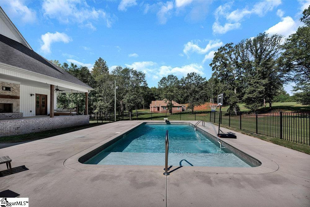 Farmhouse-Inspired Home on 1.93 Acres with Saltwater Pool. Beautiful farmhouse-inspired home on 1.93 acres featuring an open floor plan, soaring ceilings, and oversized windows that fill the home with natural light. Triple-terraced saltwater pool includes a diving board and sun deck, overlooking a fenced backyard and farmland. The gourmet kitchen offers custom inset cabinets with brushed gold pulls, large island, quartz countertops, pot filler, ZLINE Autograph Edition dual-fuel oven with 6 burners, griddle, and double ovens, plus a commercial vent hood. Spacious living room with slate-hearth fireplace and wide wood mantel includes a flex space ideal for office, music, or sitting area. A warming room behind the kitchen provides additional versatility. Primary suite on the main opens to the back porch and features a tiled walk-in shower, dual vanities, and large walk-in closet. Two additional main-level bedrooms share a Jack-and-Jill bath. Upstairs includes a large bedroom/bonus room with a walk-in closet. Additional features: Oversized L-shaped front porch and large back porch with brick fireplace. High-end wide plank scratch- and dent-resistant flooring, Energy-efficient wood double-pane windows, Tankless gas water heater, Large laundry room with sink on main level. Convenient location next to Easley schools and JB Owens baseball field. Easy commute, just 20 minutes to Clemson and downtown Greenville. Enjoy the Easley lifestyle in this fabulous 4 bedroom, 3 bath home. Built in 2019 with a clean and well-planned 3131 sqft floorplan. This isn't just a house, it's the lifestyle you've been waiting for. Come see it today before someone else call it home.