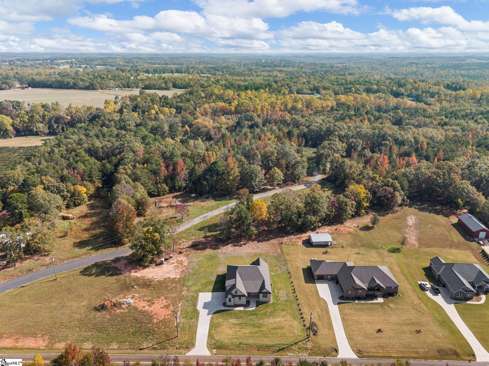This thoughtfully designed all-brick new construction home offers the ideal balance of privacy, space, and everyday convenience. Situated on approximately 0.71 acres in a quiet rural setting, the property is surrounded by mature landscaping, open pastures, and nearby peach orchards—creating a peaceful environment without true isolation. A small collection of newer homes along the road provides a sense of neighborhood while preserving privacy and breathing room. The home features over 3,000 square feet of well-planned living space, with a primary suite and two additional bedrooms conveniently located on the main level. Upstairs, a large flex room with a full bathroom and closet offers versatility as a fourth bedroom, guest suite, home office, or media space. Inside, custom hardwood flooring, a beautifully detailed fireplace, and a custom-built staircase reflect quality craftsmanship throughout. The kitchen is designed for both daily living and entertaining, featuring a large granite island, ample cabinetry, and a dedicated pantry. A generously sized laundry room with built-in cabinets and a sink adds everyday functionality. The covered back porch—accessible from both the living area and the primary bedroom—extends the living space outdoors and is ideal for enjoying the quiet surroundings. An oversized two-car garage completes the home. While the setting feels private and serene, shopping and dining are approximately five miles away, and major highways are within a reasonable drive, making this home well-suited for buyers seeking country living without sacrificing accessibility. This property is ideal for buyers who value space, privacy, and craftsmanship, but still want connection to modern conveniences—a true example of privacy without isolation.