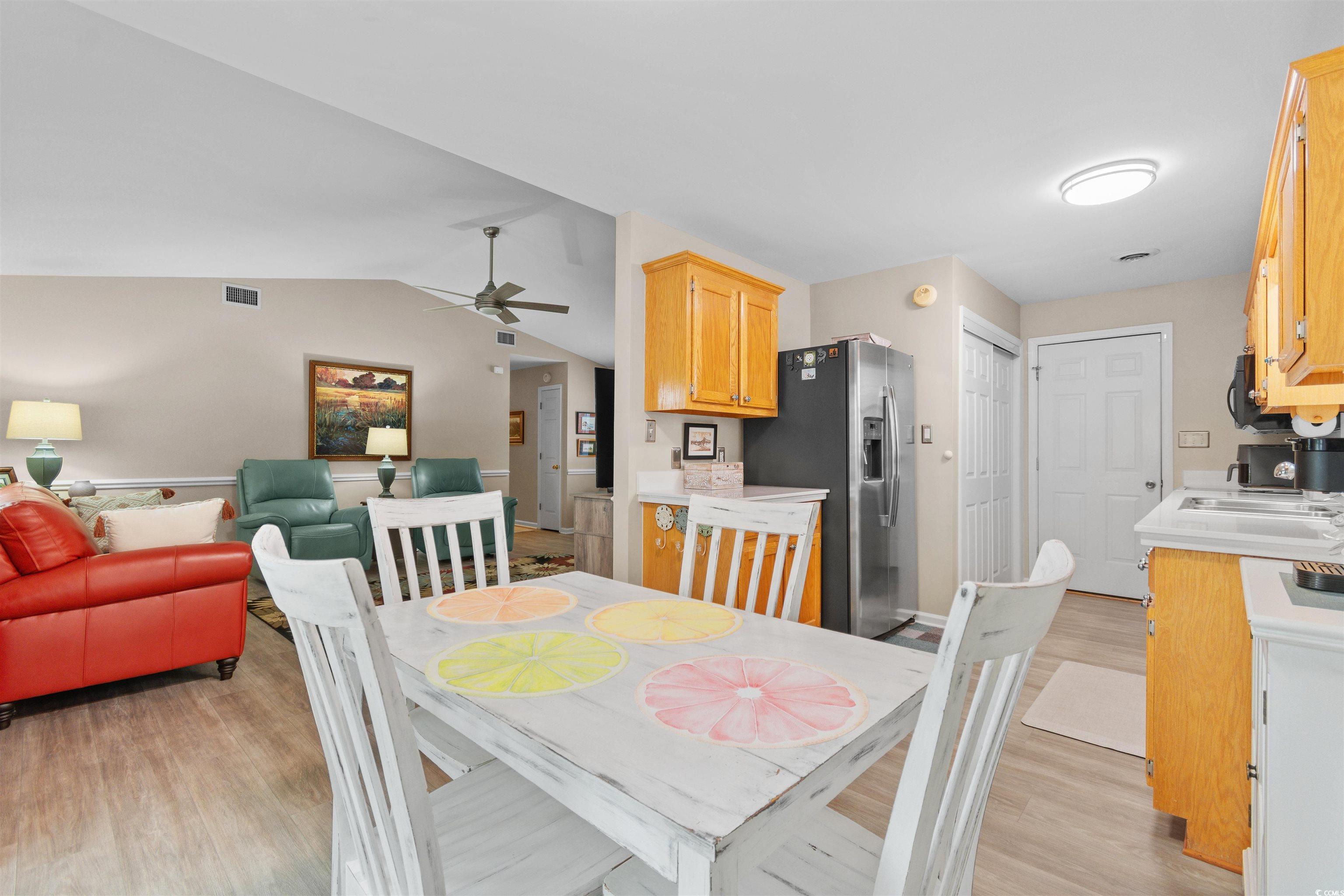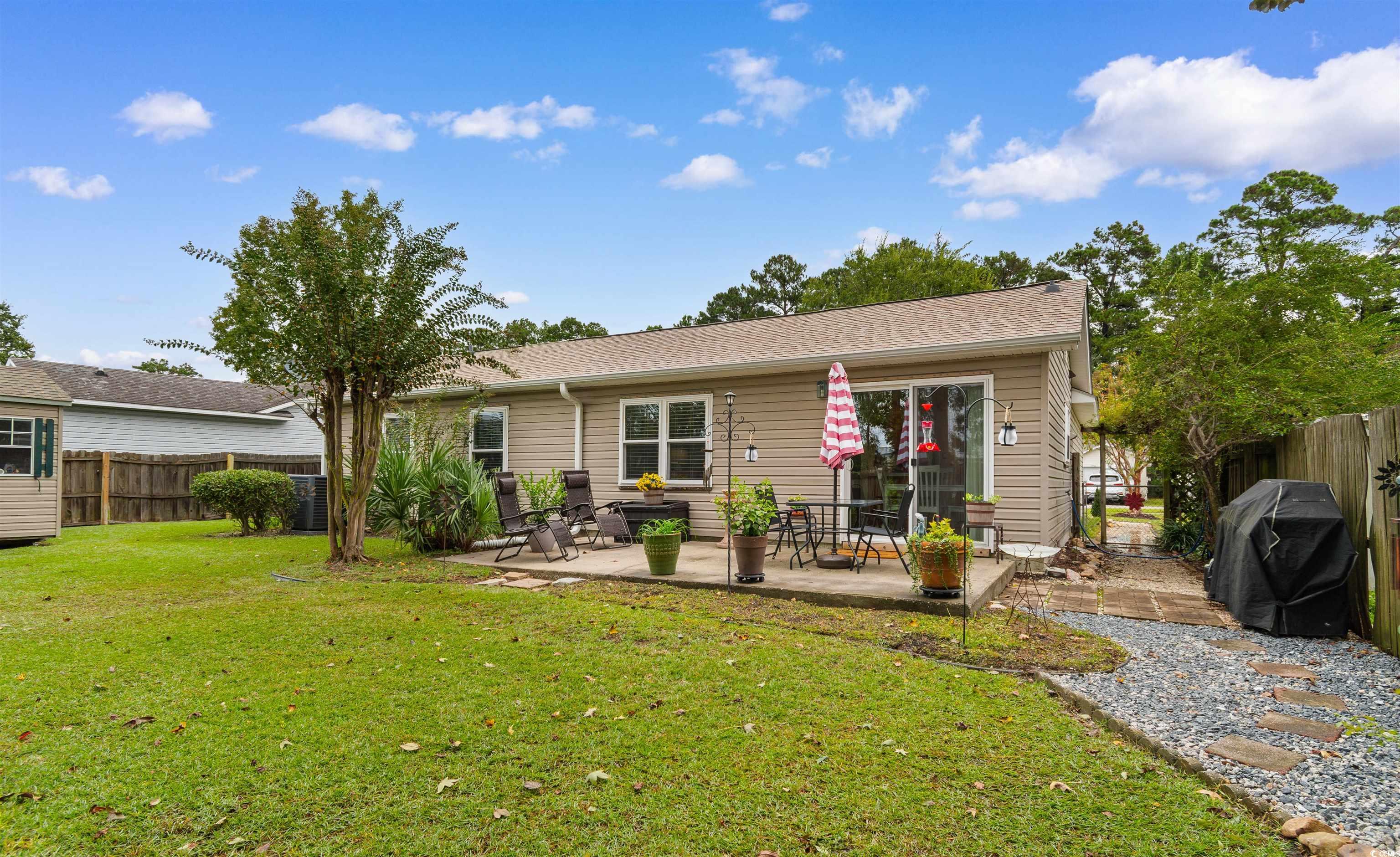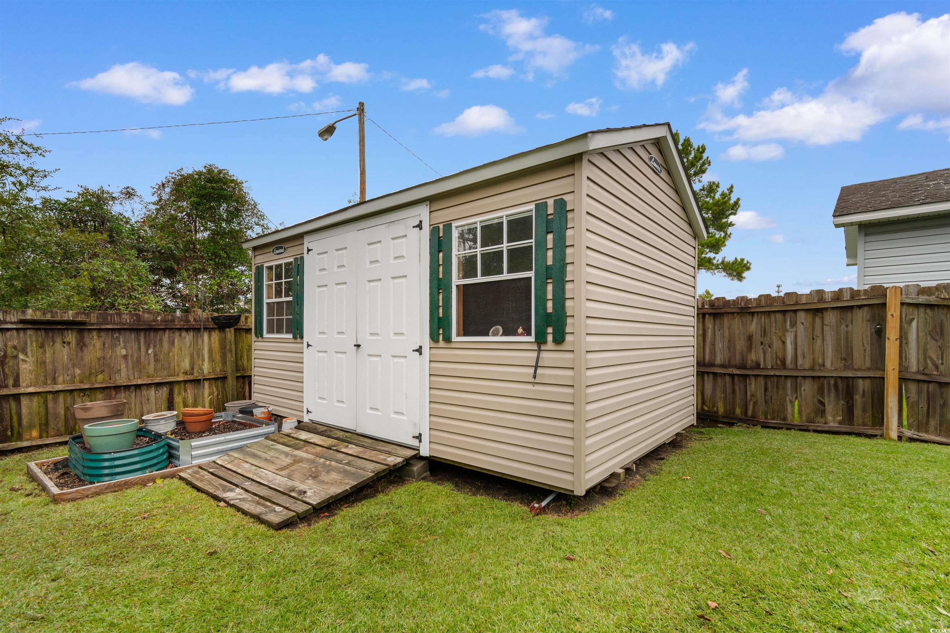 YOU FOUND IT !! THIS FABULOUS 3 BEDROOM 2 BATH HOME , is just minutes for the Airport, minutes for pharmacies, minutes from gas , grocery and dining , including the wonderful places to eat and shop at and around Market Commons. You are also just minutes from Myrtle Beach State park, oh and let's not forget the beautiful Beaches of the Atlantic Ocean !! This Amazing home has so many upgrades that all you need to do is move in and enjoy. Some of the upgrades include ; 2017 10x16workshop / outbuilding. In 2018 all windows replaced, double hung 130 mph hurricane proof windows, Sliding glass doors , warranty transfers to buyer. Also in 2018 new hot water tank. In 2019 New HVAC system installed by One Hour Heating and Air, 24,000 BTU 18 Seer split heat pump system, New owners can purchase a club plan with monthly payments , has a twice a year inspection . Also in 2019 Bedroom carpets from Lowes. In 2020 Walk in shower by West Shore in guest bath. In 2021 New roof, stain resistant , limited Lifetime warranty transfers to new owner, must call Up and Over to get contact info for manufacturer (Atlas). In 2023 Cultured Marble countertops in kitchen . In 2025 New Flooring: kitchen, living room and hallway, hall closets , waterproof floating laminate with moisture barrier under laminate. Also in 2025 New vanity top and faucet primary bath, and lastly in 2025 a Genie garage door opener. This property has a private locked storage area ,that can be used for a very nominal monthly fee, so park your boat , RV, or what ever in the locked storage are right around the corner . Also there is a free over flow parking that is available for use as well. This place has it all, a move in ready home, with tons of upgrades, close to all the fine dining shops and grocery stores, near Myrtle Beach State park, and easy access to the Atlantic Ocean, the Myrtle Beach International Airport and easy access to route 17. all just minutes from the door step All the hard work has been done on this home all you have to do is move in and enjoy !!