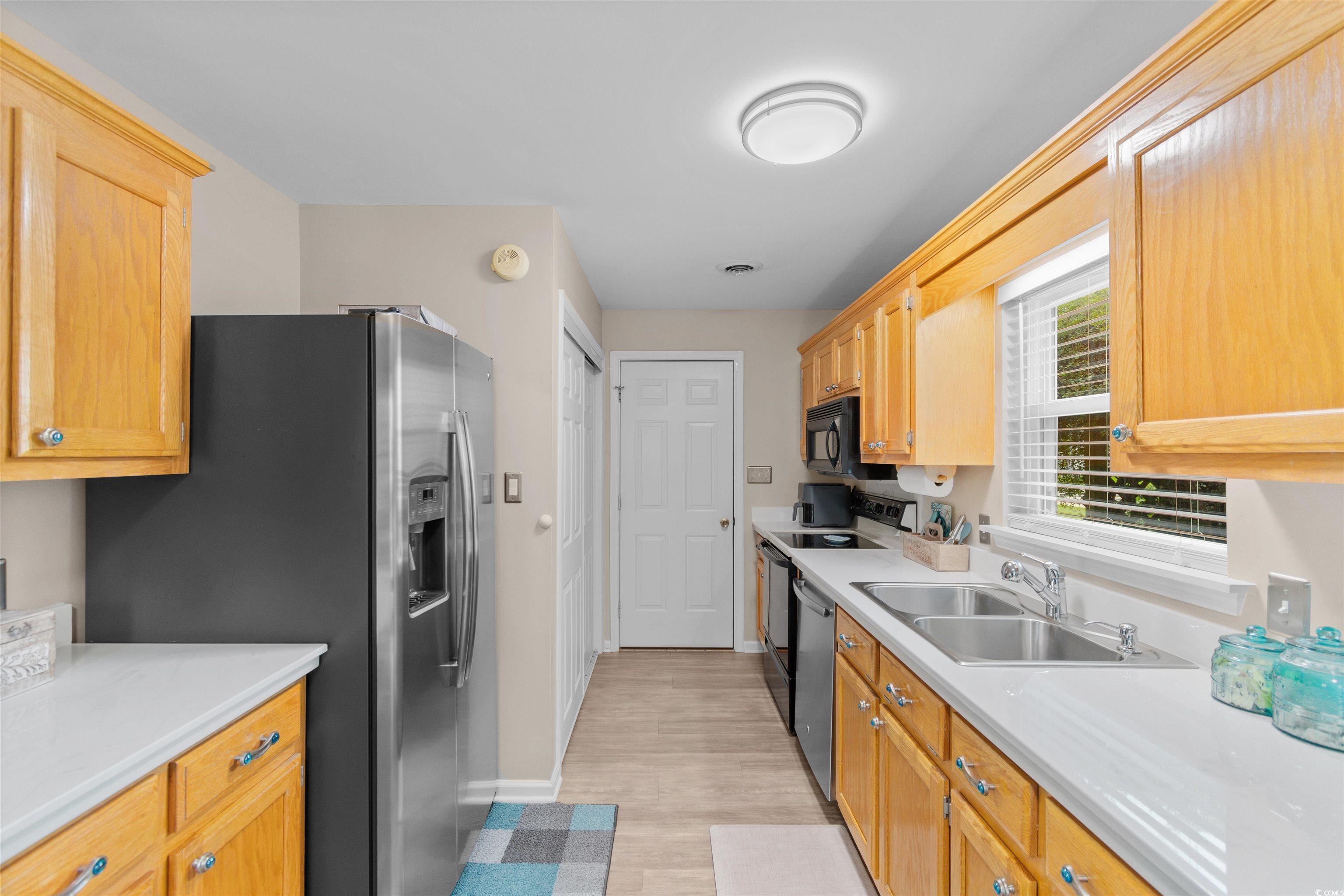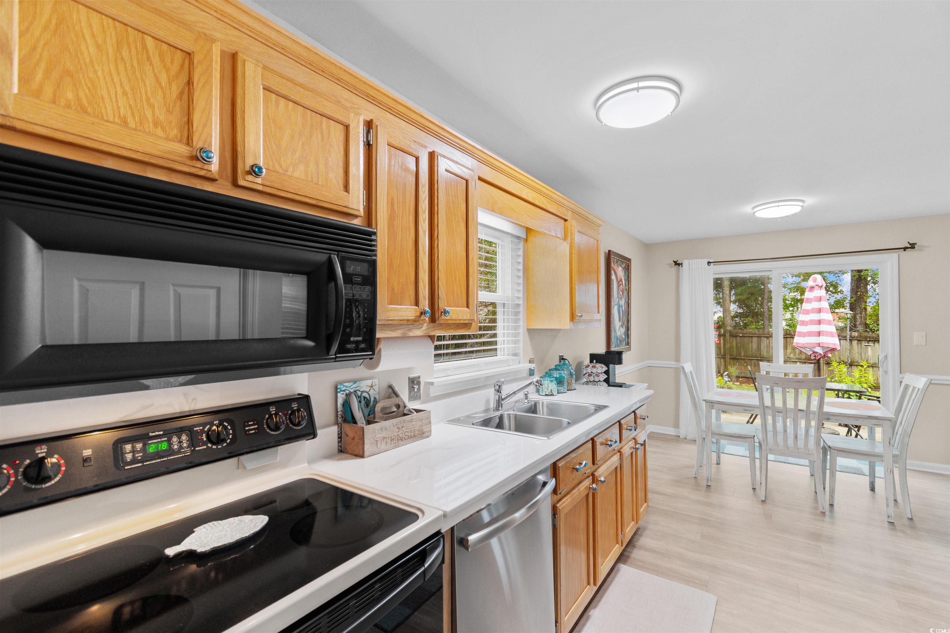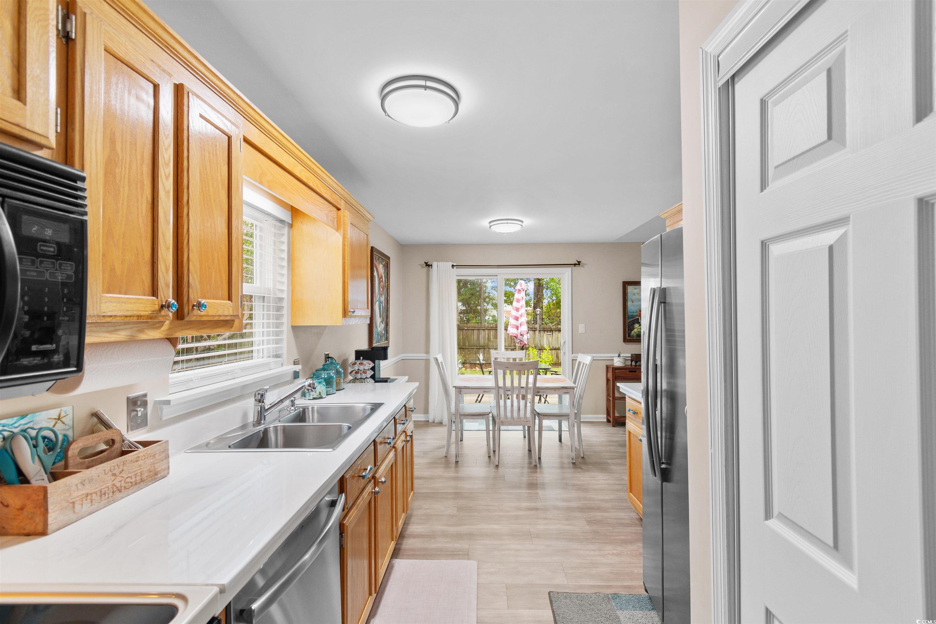 YOU FOUND IT !! THIS FABULOUS 3 BEDROOM 2 BATH HOME , is just minutes for the Airport, minutes for pharmacies, minutes from gas , grocery and dining , including the wonderful places to eat and shop at and around Market Commons. You are also just minutes from Myrtle Beach State park, oh and let's not forget the beautiful Beaches of the Atlantic Ocean !! This Amazing home has so many upgrades that all you need to do is move in and enjoy. Some of the upgrades include ; 2017 10x16workshop / outbuilding. In 2018 all windows replaced, double hung 130 mph hurricane proof windows, Sliding glass doors , warranty transfers to buyer. Also in 2018 new hot water tank. In 2019 New HVAC system installed by One Hour Heating and Air, 24,000 BTU 18 Seer split heat pump system, New owners can purchase a club plan with monthly payments , has a twice a year inspection . Also in 2019 Bedroom carpets from Lowes. In 2020 Walk in shower by West Shore in guest bath. In 2021 New roof, stain resistant , limited Lifetime warranty transfers to new owner, must call Up and Over to get contact info for manufacturer (Atlas). In 2023 Cultured Marble countertops in kitchen . In 2025 New Flooring: kitchen, living room and hallway, hall closets , waterproof floating laminate with moisture barrier under laminate. Also in 2025 New vanity top and faucet primary bath, and lastly in 2025 a Genie garage door opener. This property has a private locked storage area ,that can be used for a very nominal monthly fee, so park your boat , RV, or what ever in the locked storage are right around the corner . Also there is a free over flow parking that is available for use as well. This place has it all, a move in ready home, with tons of upgrades, close to all the fine dining shops and grocery stores, near Myrtle Beach State park, and easy access to the Atlantic Ocean, the Myrtle Beach International Airport and easy access to route 17. all just minutes from the door step All the hard work has been done on this home all you have to do is move in and enjoy !!