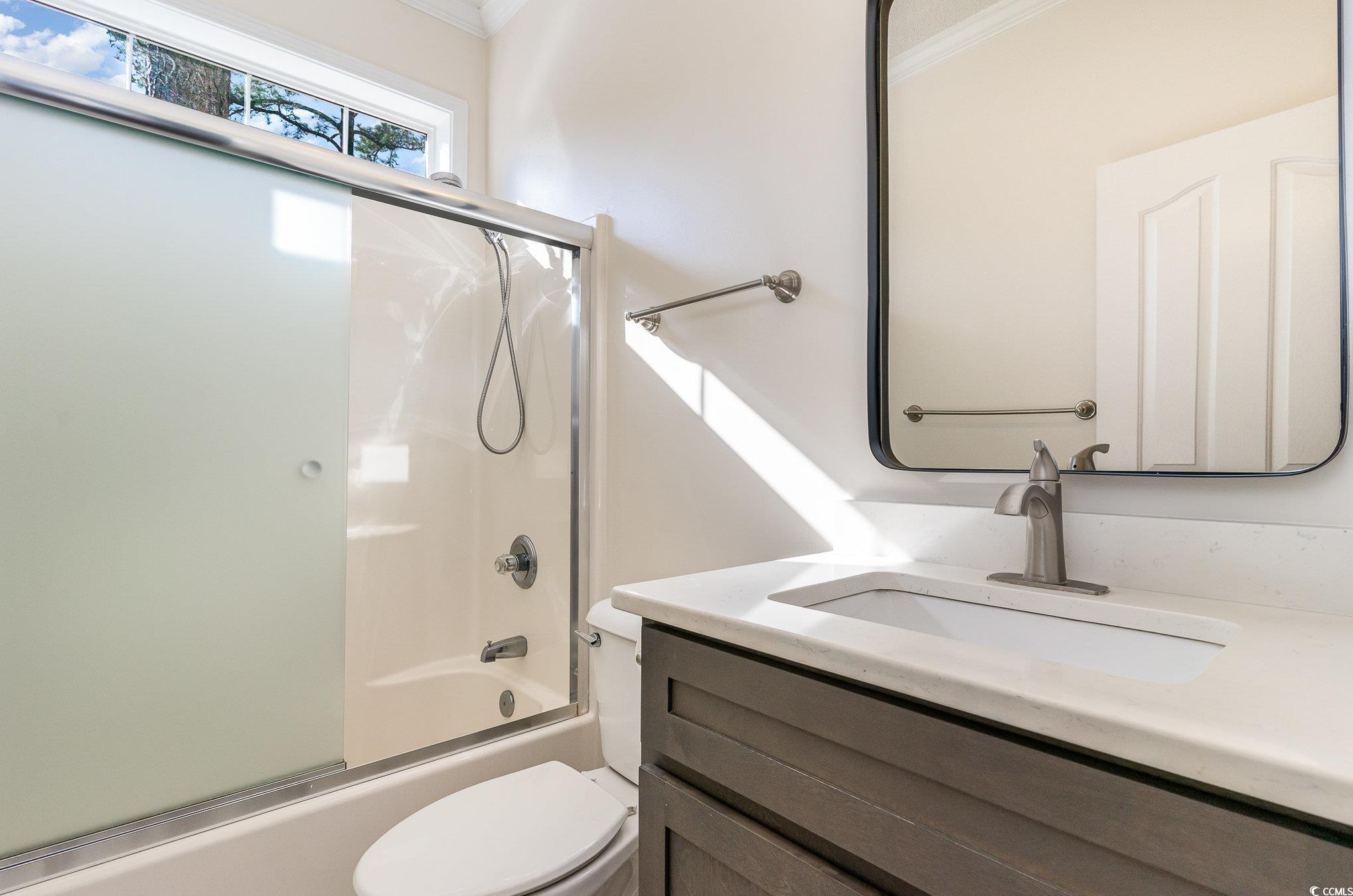 This is a beautifully upgraded 3-bedroom, 2-bath home set on one of the largest lots in Palmetto Greens, boasting 0.63 acres and picturesque pond and golf course views. The home offers a spacious open-concept layout with abundant natural light, beautiful hardwood flooring and a stately fireplace. The kitchen shines with brand-new cabinetry, granite countertops, and sleek stainless steel appliances. The primary suite is a true retreat, complete with a double vanity, a luxurious jetted soaking tub, and a separate shower. A portion of the garage has been thoughtfully finished, offering versatile flex space perfect for a home office, bonus room, or additional bedroom. Step outside to an expansive screened porch and an additional large deck overlooking a backyard that is ideal for relaxing or entertaining guests. This beautiful home would make a terrific residence, vacation home, or investment property. Residents of Palmetto Greens enjoy access to fantastic community amenities, including a sparkling pool, scenic lake fountain, and a welcoming clubhouse. Located in the heart of Myrtle Beach, you're just minutes from the beach and all the excitement that the Grand Strand has to offer.